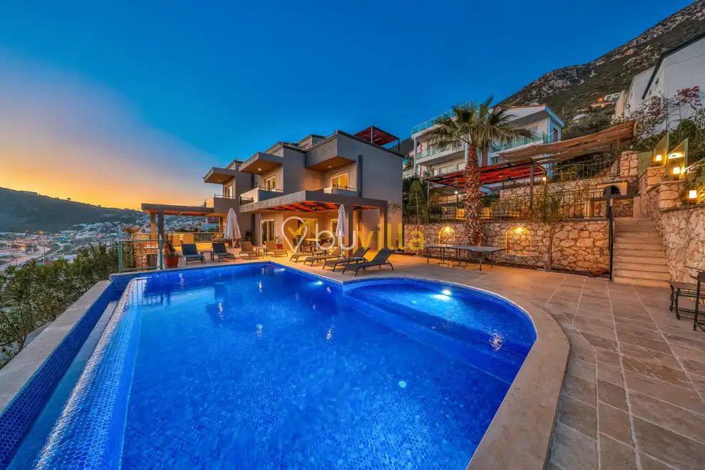 Deniz Manzarali Kiralik Villa Kiralik Villa Cecili , Kalkan Kiziltas mevkiinde 5 yatak odali 9 kisi konaklama kapasitesine sahiptir. Deniz manzarali kiralik villamiz kalabalik aile ve arkadas gruplari için uygun bir seçenektir. Genis havuz terasi bulunan kiralik villamizin havuz terasinda barbekü yapabileceginiz alan bulunmaktadir. Keyifli tatil firsati sunan villamiz misafirleriniz agirlamayi beklemektedir.