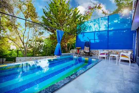 Villa Cerenimo, İslamlar bölgesinde konumlanan, lüks detayları ve konforlu yapısıyla öne çıkan kiralık balayı villalarından biridir. Doğa ile iç içe sakin konumu sayesinde huzurlu bir tatil deneyimi sunan villamız, özellikle balayı çiftleri için ideal bir seçenek oluşturmaktadır. 2 kişilik konaklama kapasitesine sahip olan Villa Cerenimo, modern ve şık tasarımıyla dikkat çekerken; sauna, hamam, jakuzi ve ısıtmalı havuz gibi ayrıcalıklı özellikleriyle tatilinize konfor katmaktadır. Özel olarak tasarlanmış yaşam alanları sayesinde, yılın her döneminde keyifli bir konaklama imkânı sunar.