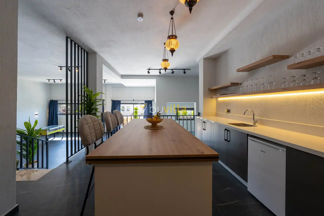 Tam donanımlı mutfak, açık hava barbekü alanı ve şık yaşam alanları ile hem keyifli yemekler hem de dinlendirici anlar sizleri bekliyor. Ayrıca villa, sinema odası ve çevresindeki doğa yürüyüşü imkanlarıyla tatilinizi daha eğlenceli kılacak aktiviteler sunuyor.