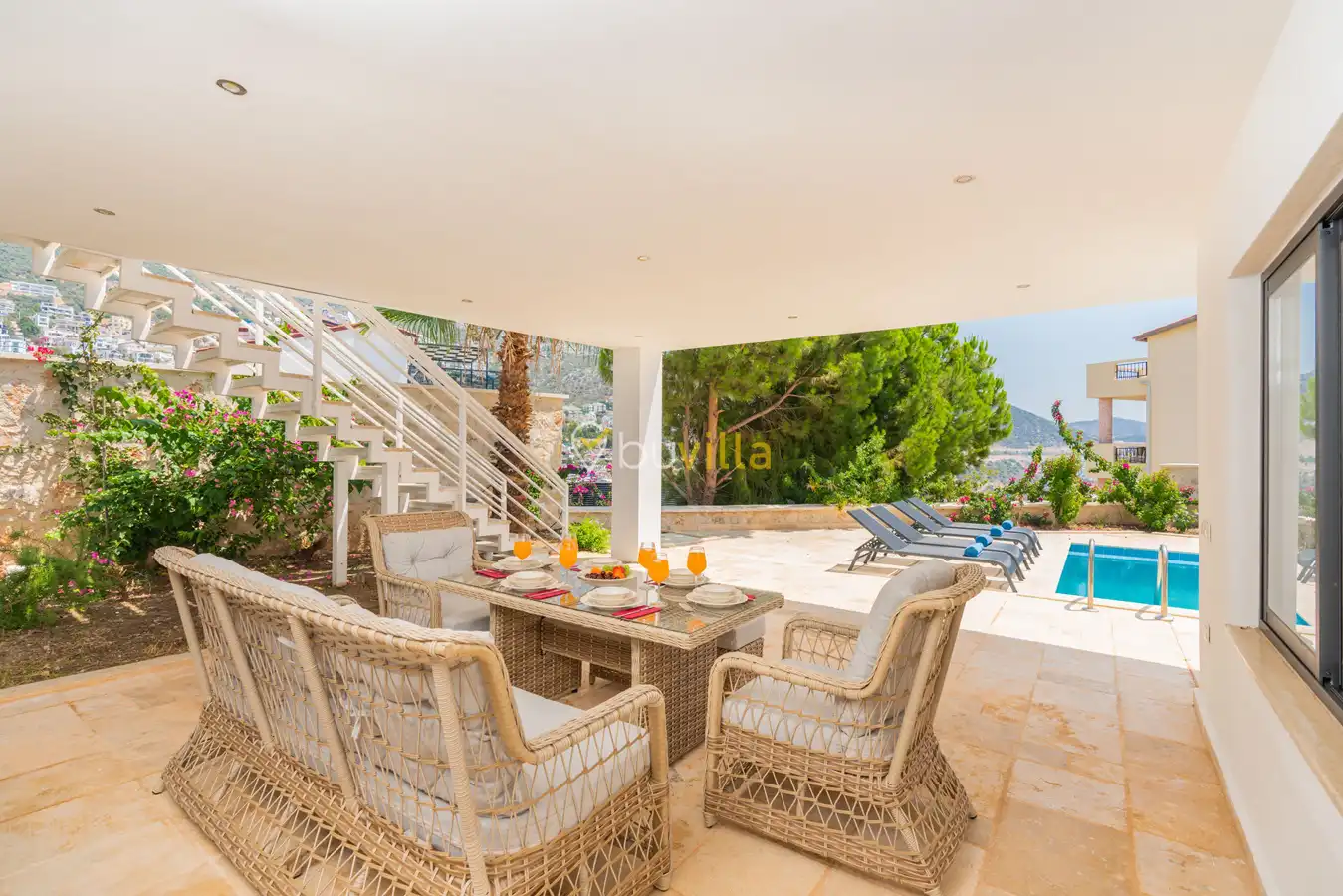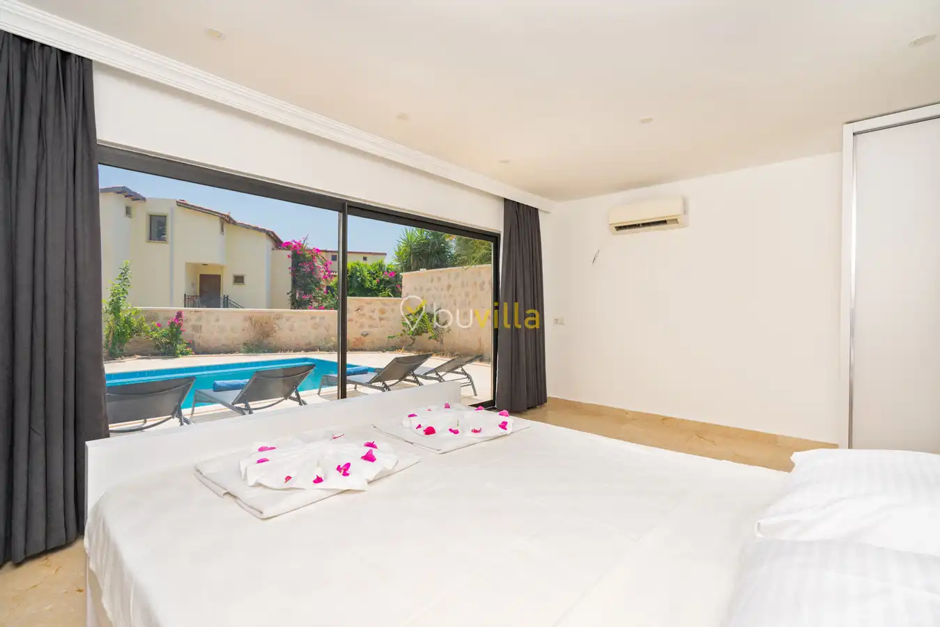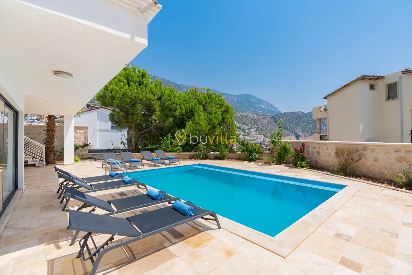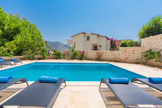 Kaş Kalkan bölgesinde yer alan bu kiralık tatil villası, 4 yatak odasıyla 8 kişiye kadar konaklama imkanı sunmaktadır. Villamızda 3 yatak odası çift kişilik yatak, özel banyo, tuvalet ve klima ile donatılmış olup, diğer yatak odasında 2 adet tek kişilik yatak ve klima bulunmaktadır.