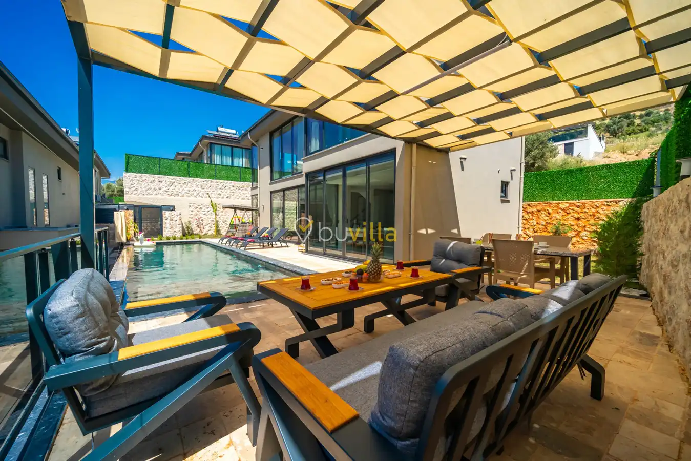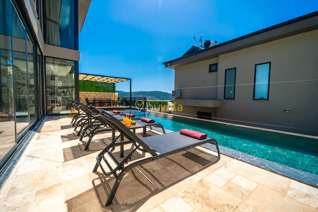 Kalkan Yeşilköy bölgesinde konumlanan Villa Colosseum, doğa içerisinde huzurlu ve konforlu bir tatil arayan misafirler için tasarlanmış lüks kiralık villa seçeneklerinden biridir. 2 yatak odası ile 4 kişi konaklama kapasitesine sahip olan villamız, balayı çiftleri ve çekirdek aileler için ideal bir tatil imkânı sunmaktadır.