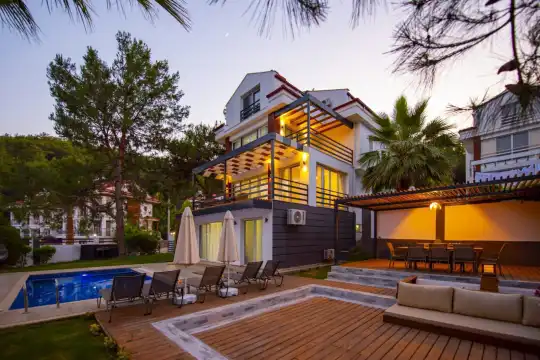 Fethiye’nin en çok tercih edilen bölgelerinden biri olan Ölüdeniz Hisarönü mevkiinde konumlanan Villa Deep Sea VIP, doğa ile iç içe huzurlu atmosferi ve modern donanımıyla ayrıcalıklı bir tatil sunmaktadır. Babadağ eteklerinde yer alan villamız, 4 yatak odası ve 8 kişilik konaklama kapasitesiyle geniş aileler ve arkadaş grupları için ideal bir seçenektir. Şehir merkezine ve sosyal yaşam alanlarına yakın konumu sayesinde hem sakin hem de hareketli bir tatil planı yapmak mümkündür.