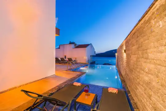 Kalkan'in Kalamar bölgesinde yer almaktadir. 3 yatak odali 6 kisiye kadar konaklama kapasitesine sahip olan villamiz deniz manzarasina hakimdir. Kiralik villamiz merkeze yakin konumdadir. Amerikan mutfaginda ihtiyaç duyabileceginiz ekipmanlar mevcut olup konforlu mobilyalarla dizayn edilmis salonu hizmetinizdedir.