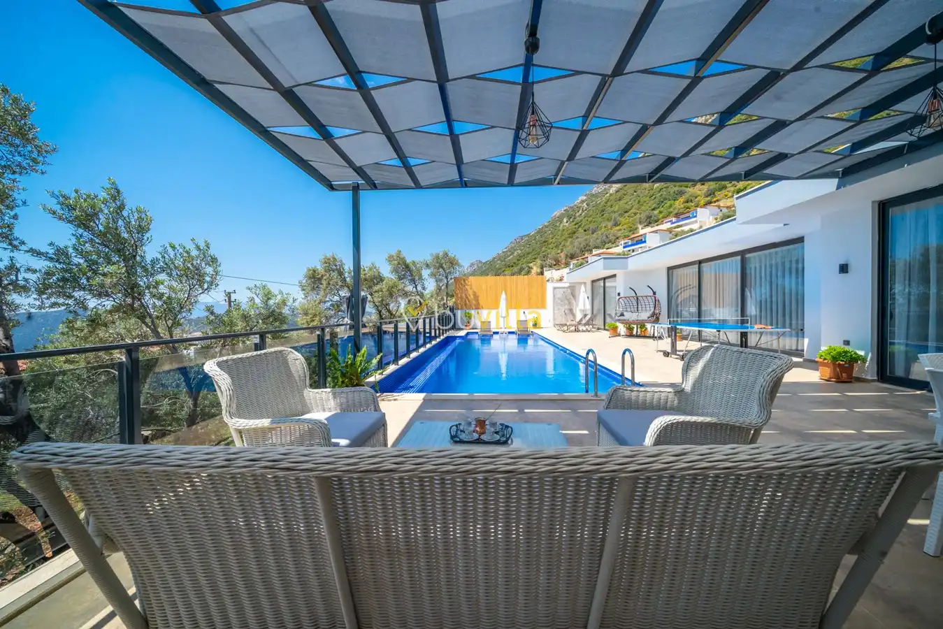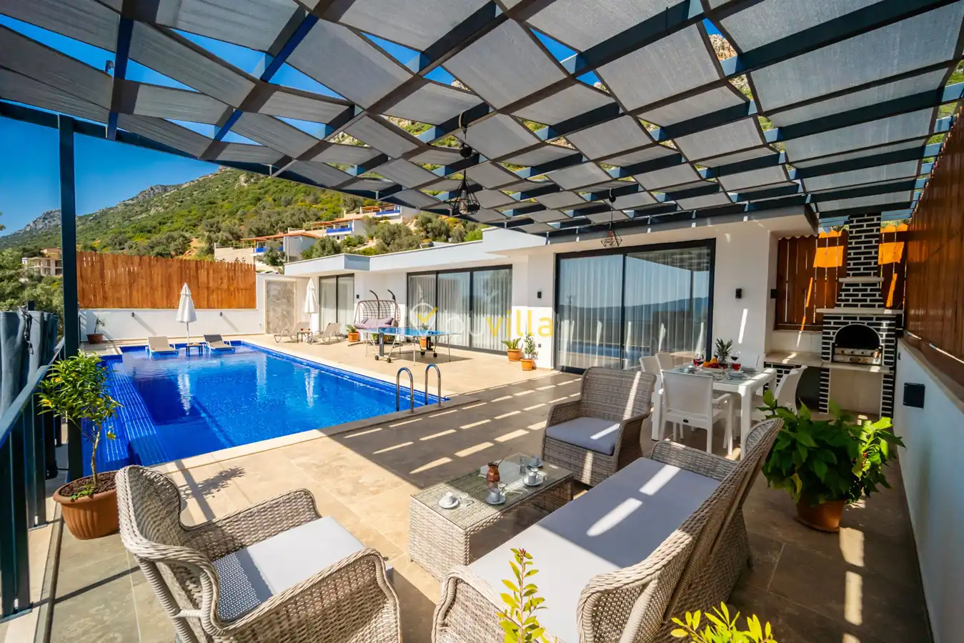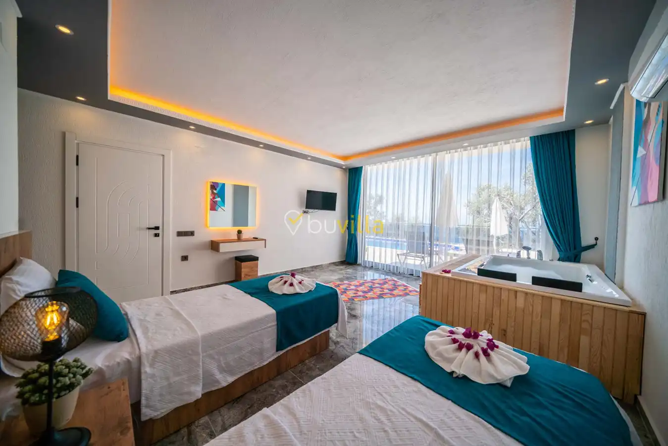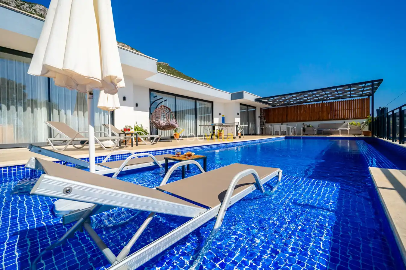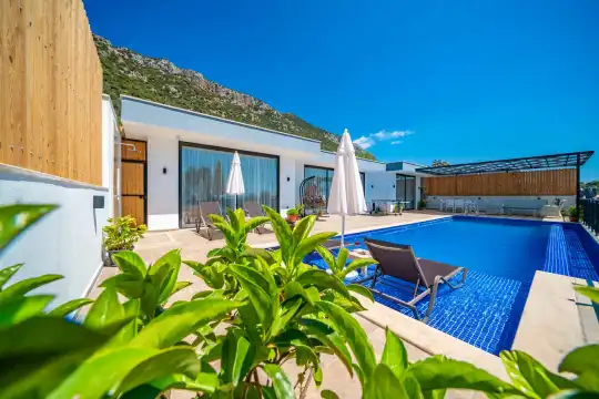 Villa Desde Duo, Kalkan Kördere bölgesinde doğa ile iç içe ve deniz manzaralı bir konumda yer alan, 2 yatak odalı ve 4 kişilik konaklama kapasitesine sahip bir tatil villasıdır. Modern ve konforlu bir şekilde dizayn edilen villamız, misafirlerimiz için özenle hazırlanmıştır. Havuz terası korunaklı olup, arka bahçesinde çocuklu aileler için mini oyun parkı, langırt ve masa tenisi bulunmaktadır. Hem aileler hem de balayı çiftleri için ideal bir seçenek olan Villa Desde Duo’nun her iki yatak odasında da jakuzi mevcuttur. Huzurlu ve keyifli bir tatil için sizleri bekliyor.