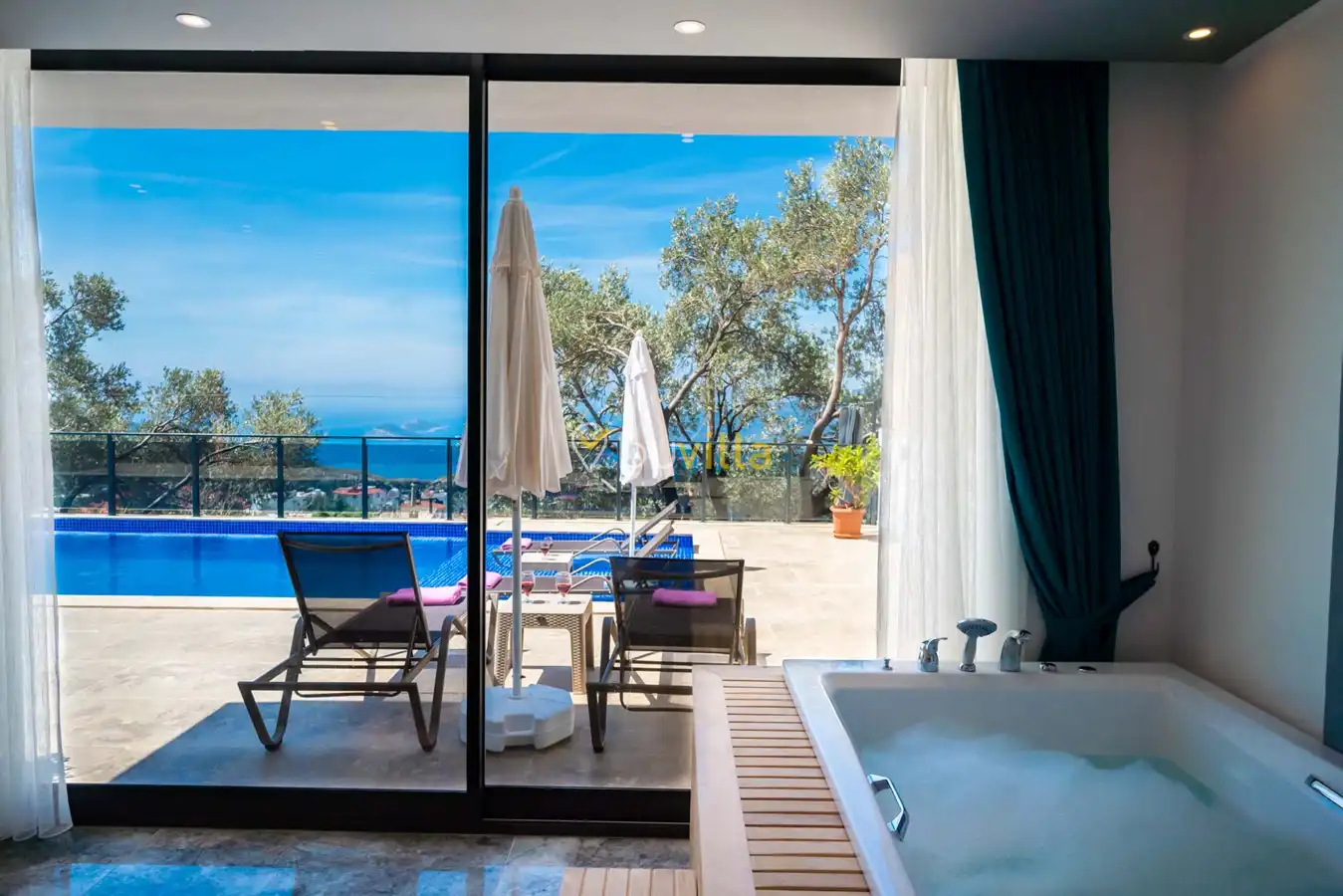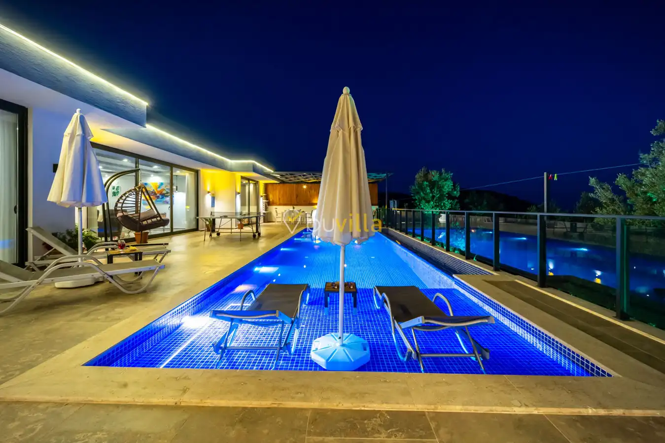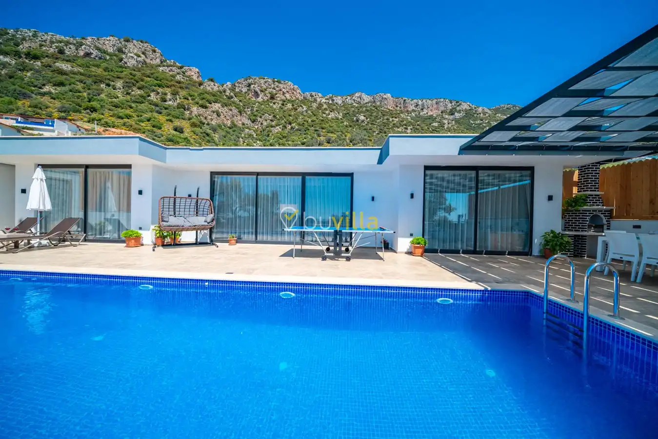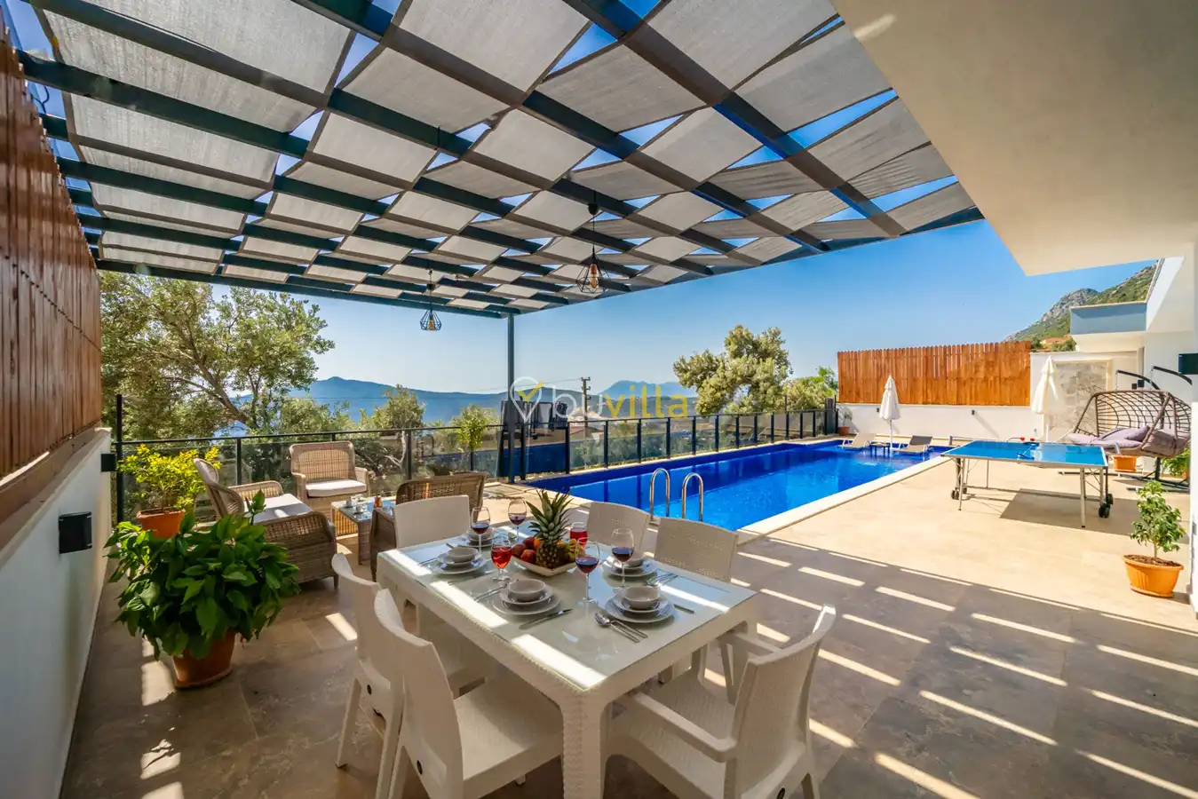 Villa Desde Duo, Kalkan Kördere bölgesinde doğa ile iç içe ve deniz manzaralı bir konumda yer alan, 2 yatak odalı ve 4 kişilik konaklama kapasitesine sahip bir tatil villasıdır. Modern ve konforlu bir şekilde dizayn edilen villamız, misafirlerimiz için özenle hazırlanmıştır. Havuz terası korunaklı olup, arka bahçesinde çocuklu aileler için mini oyun parkı, langırt ve masa tenisi bulunmaktadır. Hem aileler hem de balayı çiftleri için ideal bir seçenek olan Villa Desde Duo’nun her iki yatak odasında da jakuzi mevcuttur. Huzurlu ve keyifli bir tatil için sizleri bekliyor.