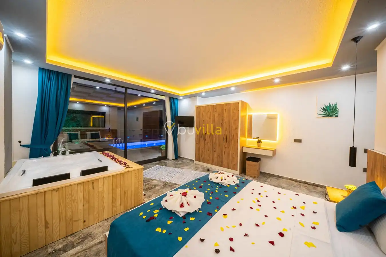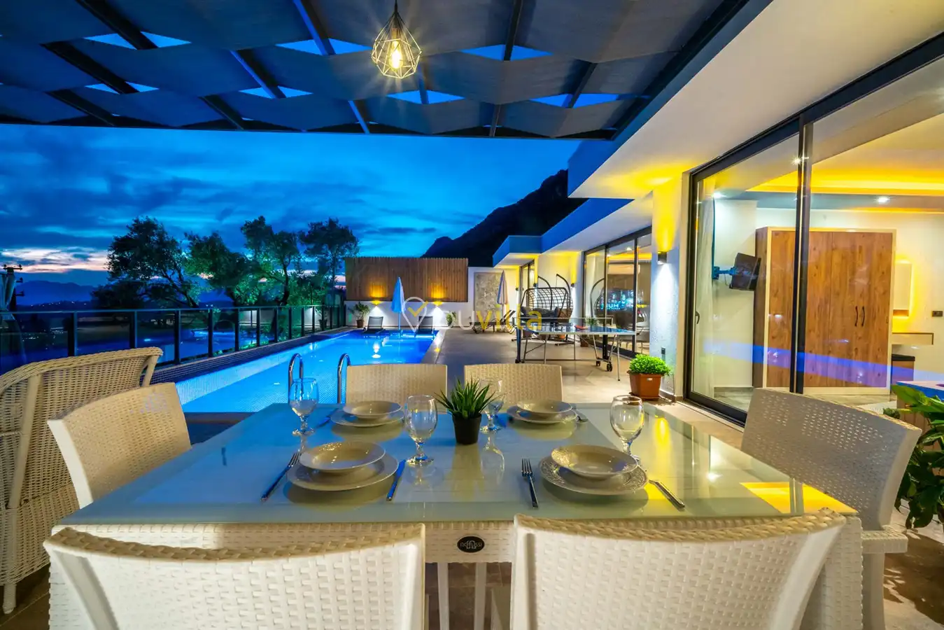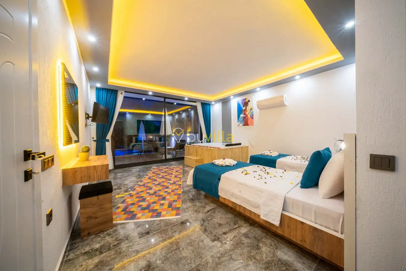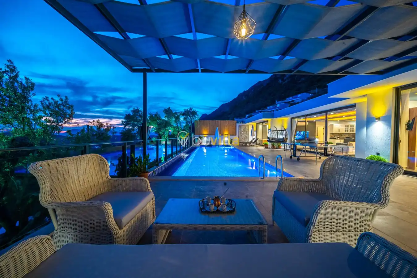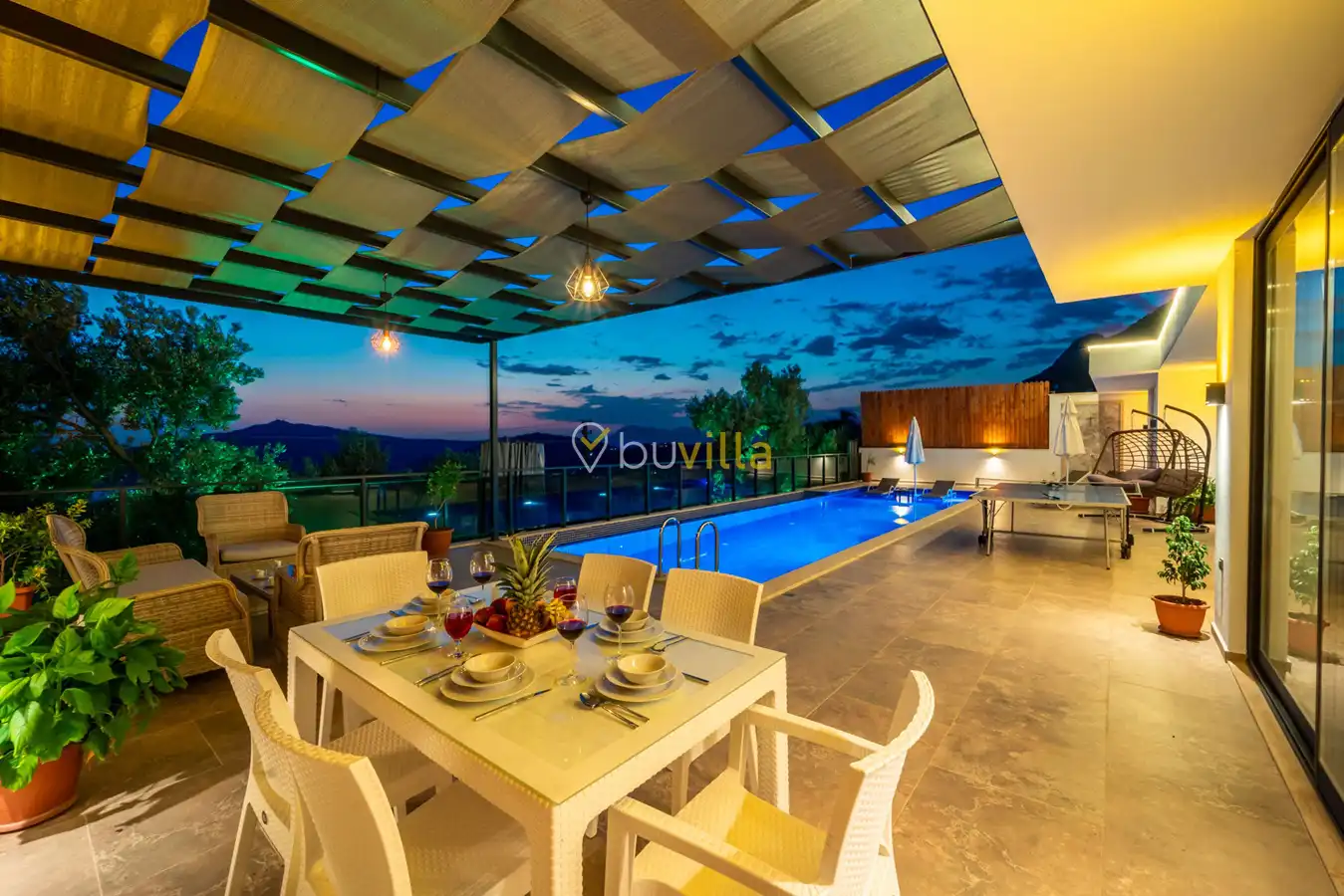 Villa Desde Duo, Kalkan Kördere bölgesinde doğa ile iç içe ve deniz manzaralı bir konumda yer alan, 2 yatak odalı ve 4 kişilik konaklama kapasitesine sahip bir tatil villasıdır. Modern ve konforlu bir şekilde dizayn edilen villamız, misafirlerimiz için özenle hazırlanmıştır. Havuz terası korunaklı olup, arka bahçesinde çocuklu aileler için mini oyun parkı, langırt ve masa tenisi bulunmaktadır. Hem aileler hem de balayı çiftleri için ideal bir seçenek olan Villa Desde Duo’nun her iki yatak odasında da jakuzi mevcuttur. Huzurlu ve keyifli bir tatil için sizleri bekliyor.