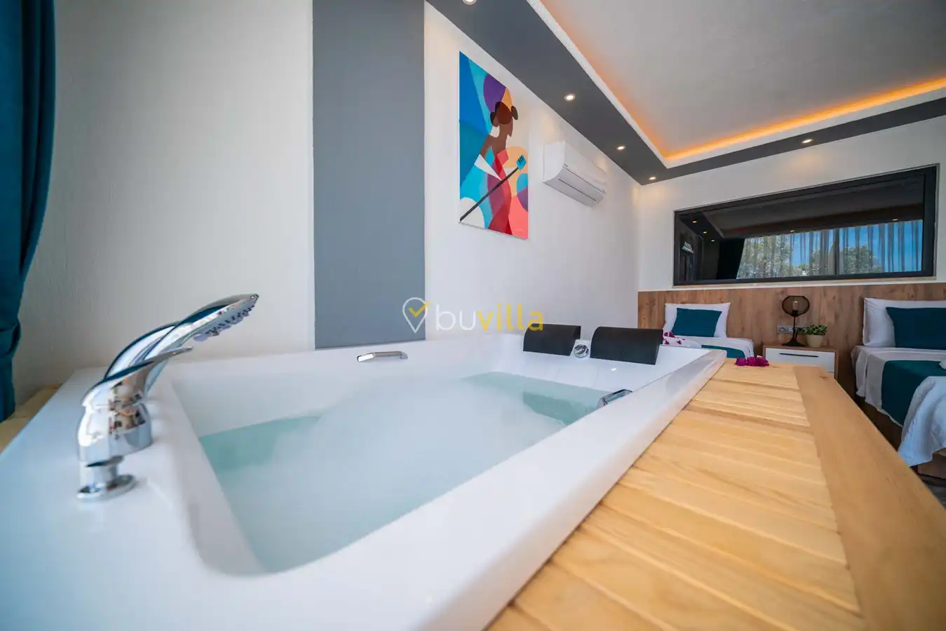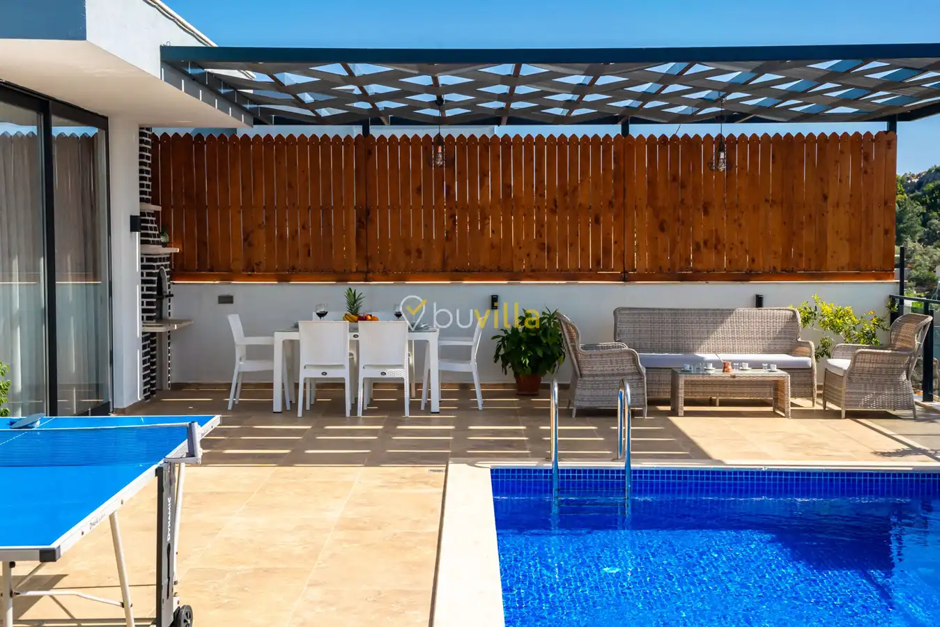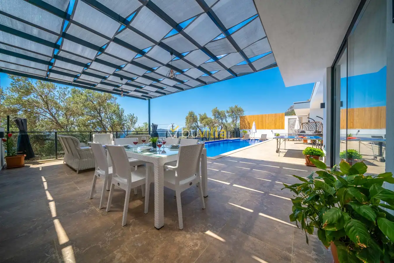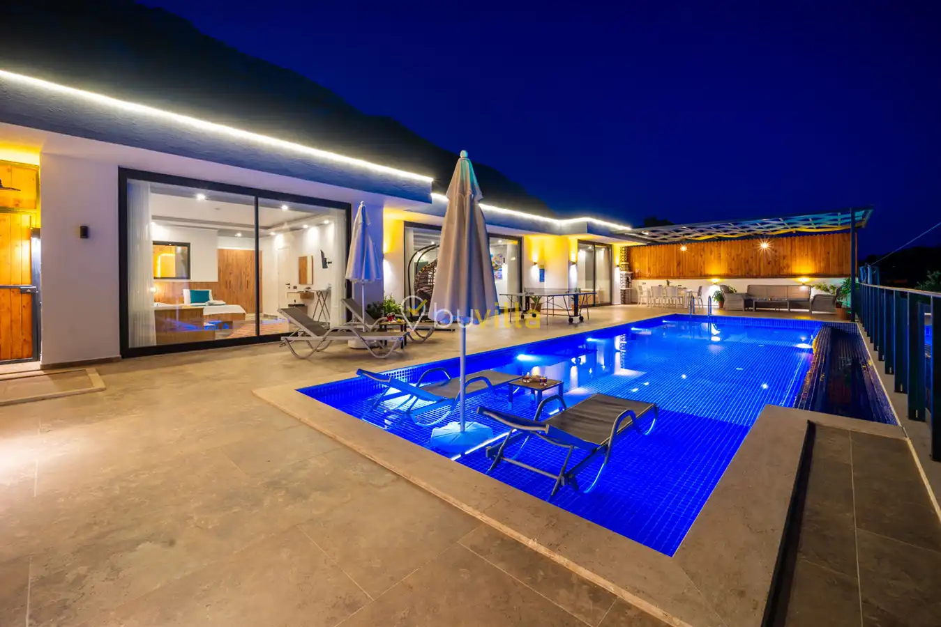 Villa Desde Duo, Kalkan Kördere bölgesinde doğa ile iç içe ve deniz manzaralı bir konumda yer alan, 2 yatak odalı ve 4 kişilik konaklama kapasitesine sahip bir tatil villasıdır. Modern ve konforlu bir şekilde dizayn edilen villamız, misafirlerimiz için özenle hazırlanmıştır. Havuz terası korunaklı olup, arka bahçesinde çocuklu aileler için mini oyun parkı, langırt ve masa tenisi bulunmaktadır. Hem aileler hem de balayı çiftleri için ideal bir seçenek olan Villa Desde Duo’nun her iki yatak odasında da jakuzi mevcuttur. Huzurlu ve keyifli bir tatil için sizleri bekliyor.
