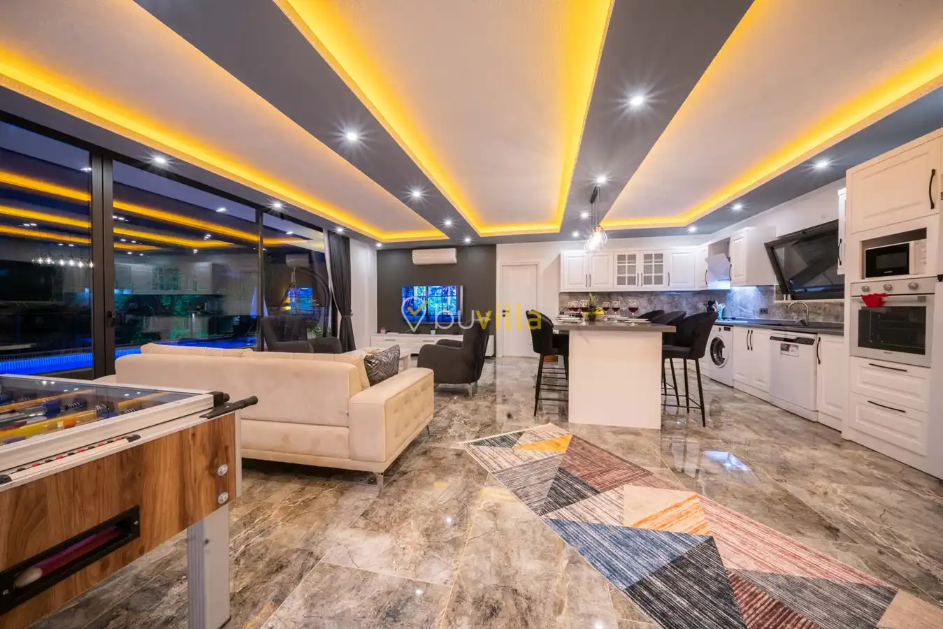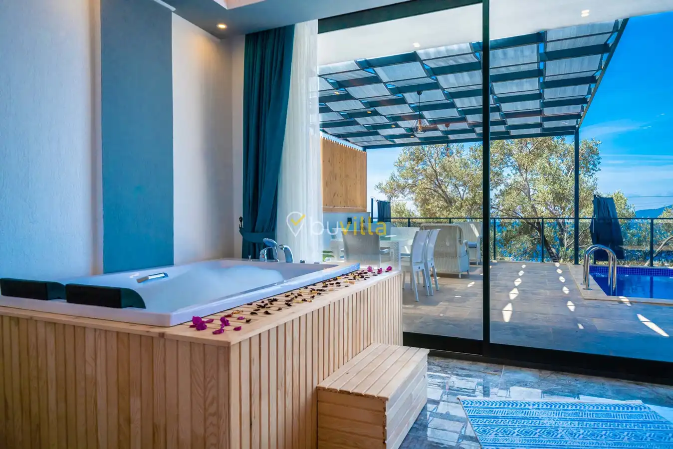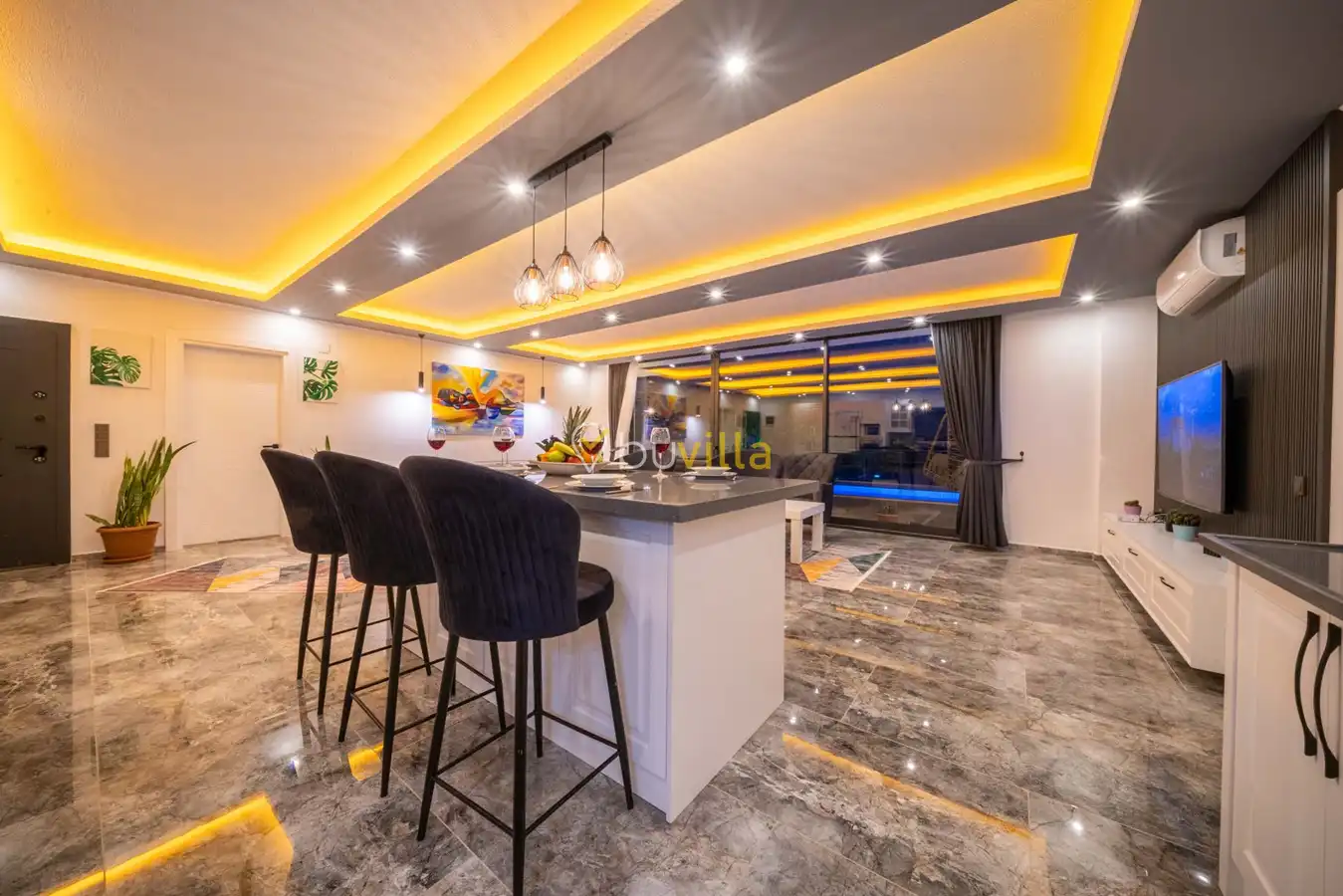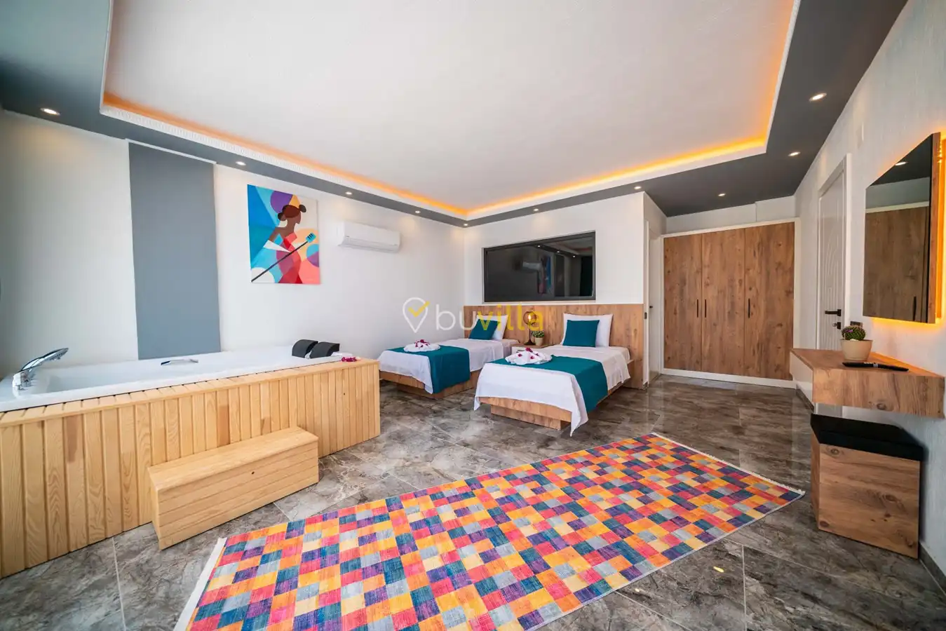 Villa Desde Duo, Kalkan Kördere bölgesinde doğa ile iç içe ve deniz manzaralı bir konumda yer alan, 2 yatak odalı ve 4 kişilik konaklama kapasitesine sahip bir tatil villasıdır. Modern ve konforlu bir şekilde dizayn edilen villamız, misafirlerimiz için özenle hazırlanmıştır. Havuz terası korunaklı olup, arka bahçesinde çocuklu aileler için mini oyun parkı, langırt ve masa tenisi bulunmaktadır. Hem aileler hem de balayı çiftleri için ideal bir seçenek olan Villa Desde Duo’nun her iki yatak odasında da jakuzi mevcuttur. Huzurlu ve keyifli bir tatil için sizleri bekliyor.