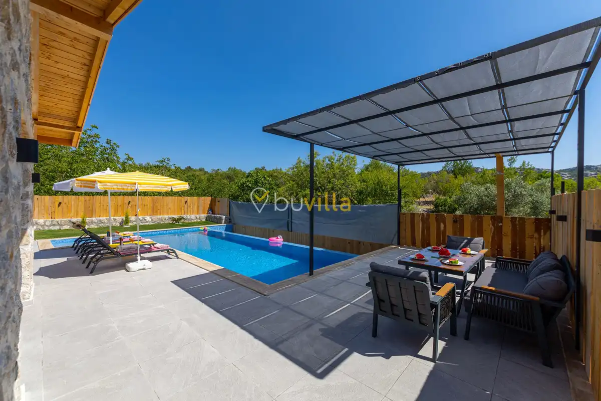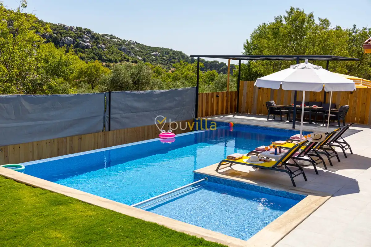Villa Desiderio, Kalkan’ın Sarıbelen bölgesinde, doğa ile iç içe ve doğa manzarasına hakim bir konumda yer alan şık bir kiralık tatil villasıdır.
