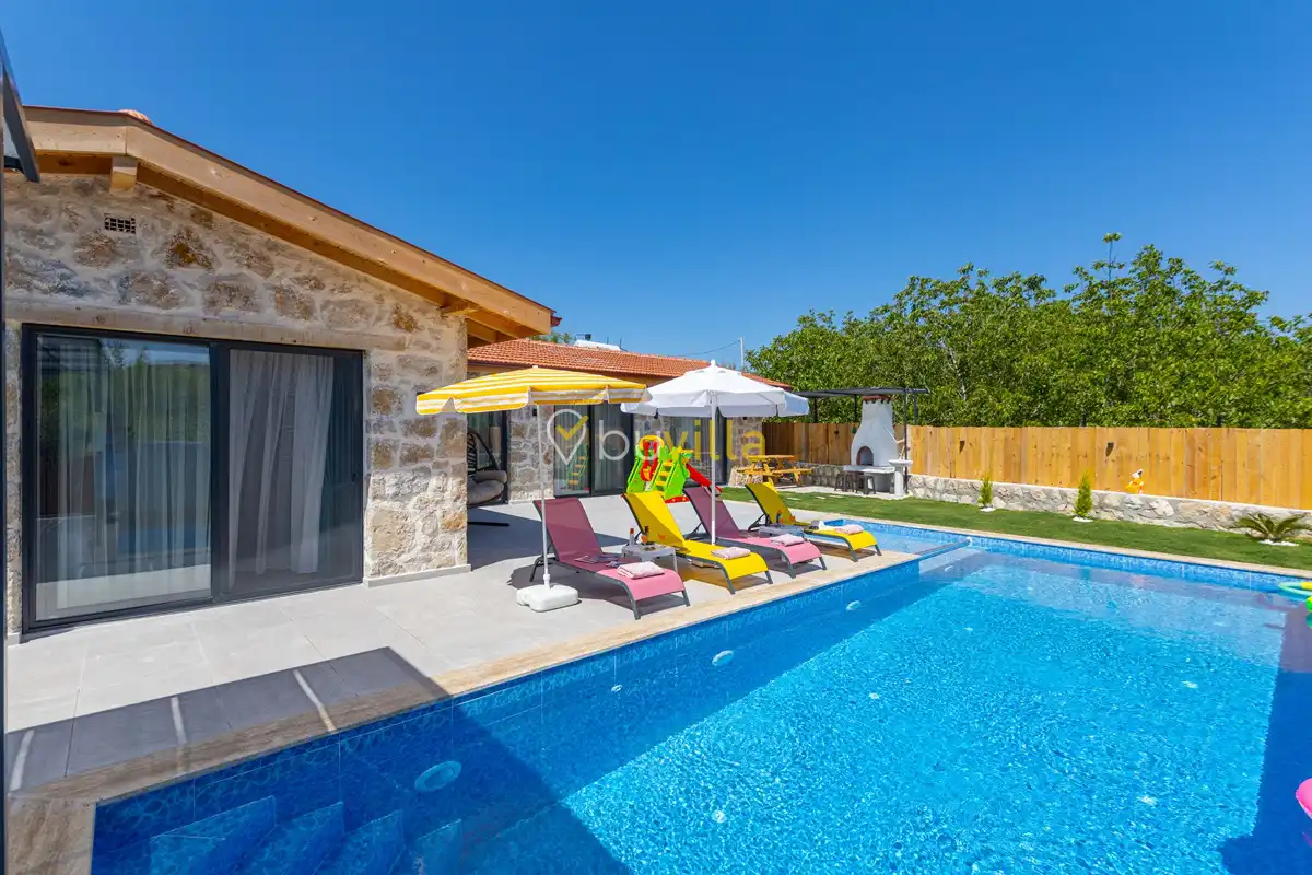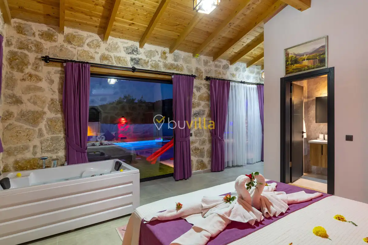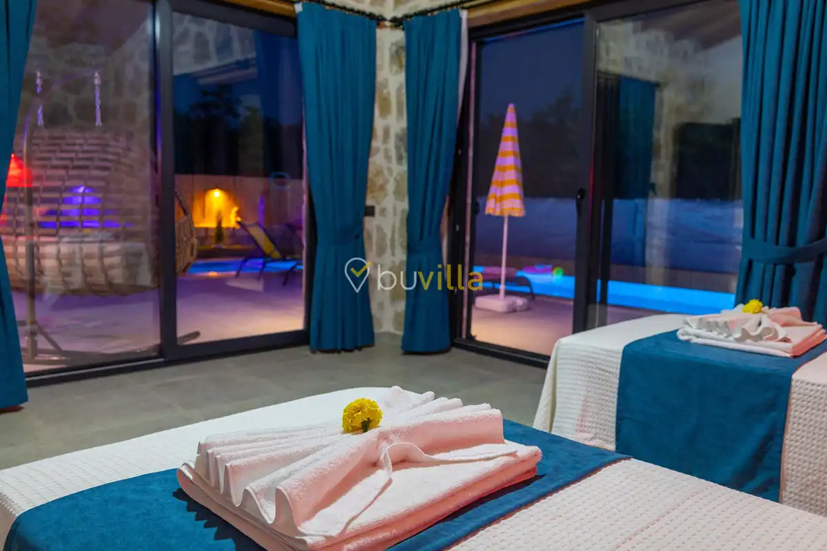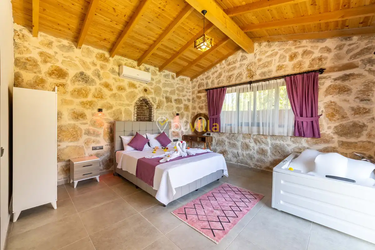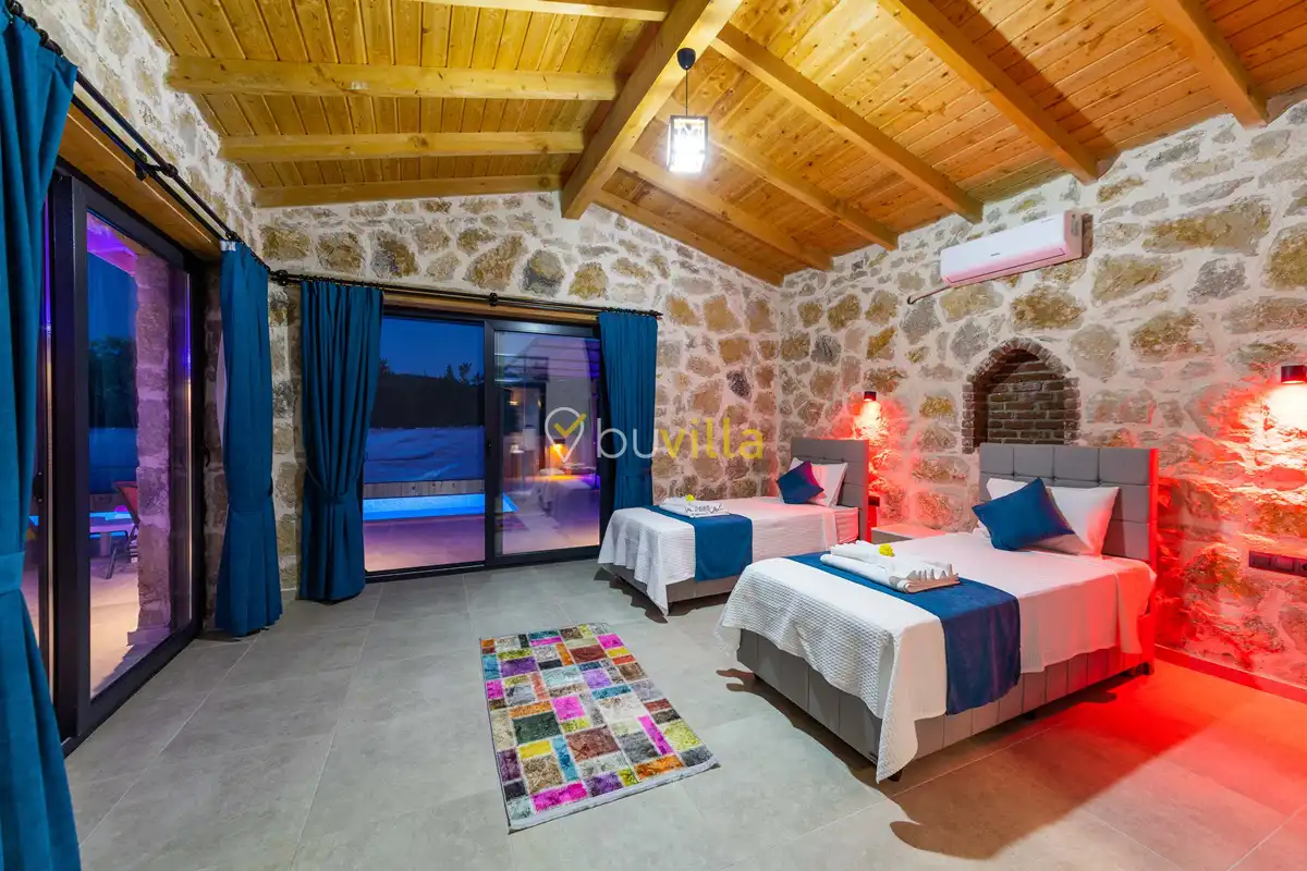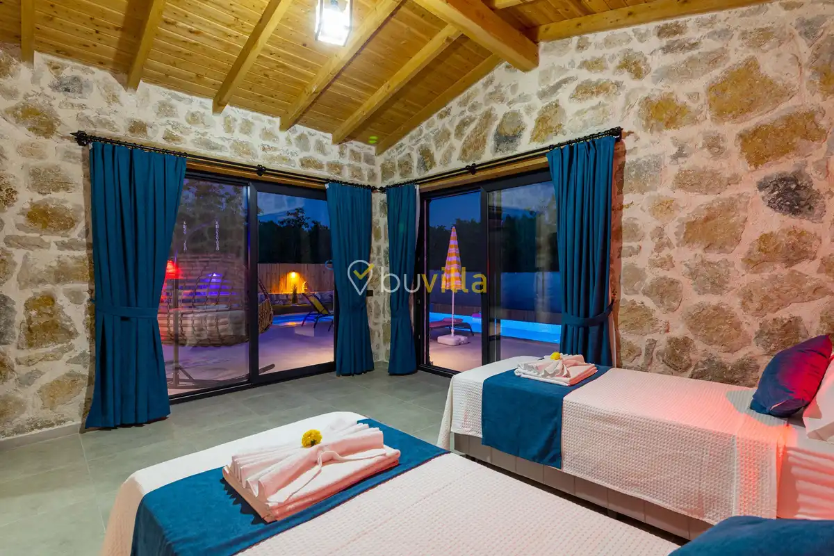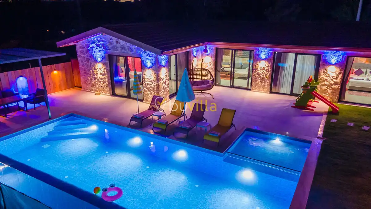 Toplam 2 yatak odası bulunan villamız, 4 kişilik konaklama kapasitesi ile çekirdek aileler ve balayı çiftleri için ideal bir tatil alternatifi sunmaktadır. Yılın tüm yorgunluğunu geride bırakabileceğiniz villada özel yüzme havuzu, çocuk havuzu ve jakuzi yer almaktadır.