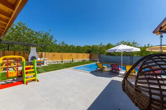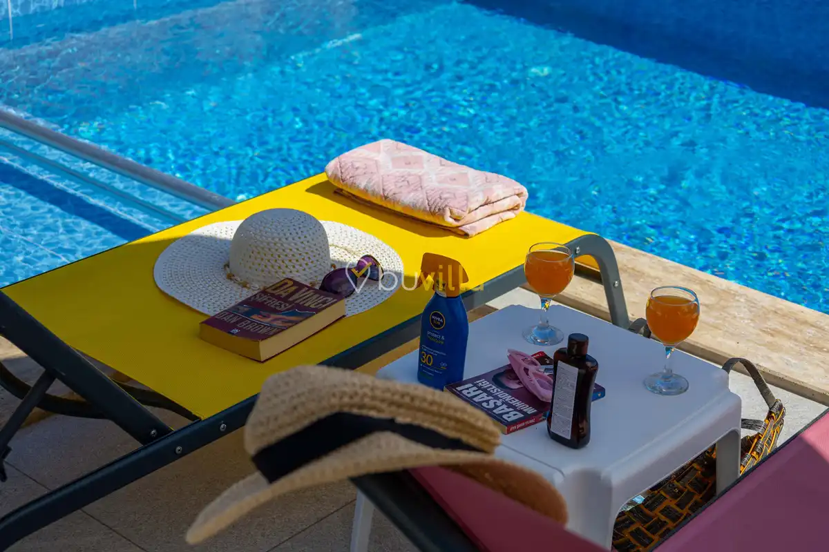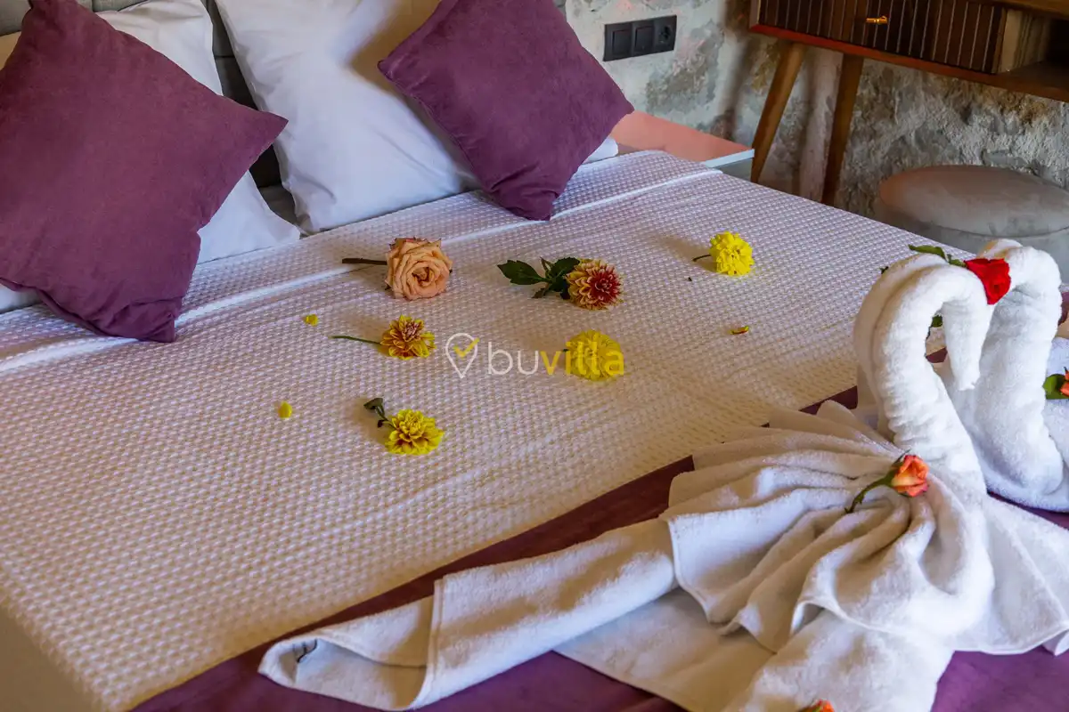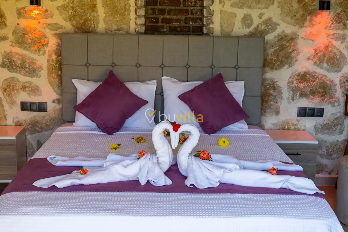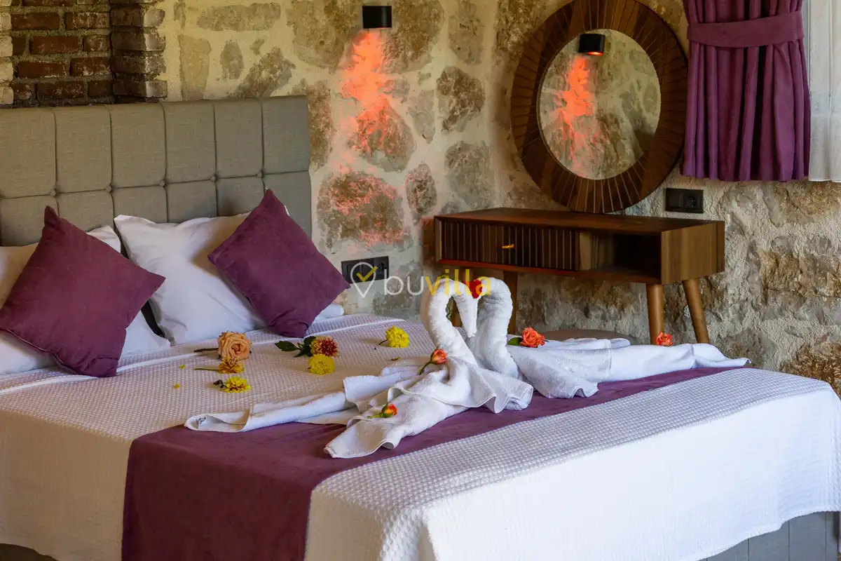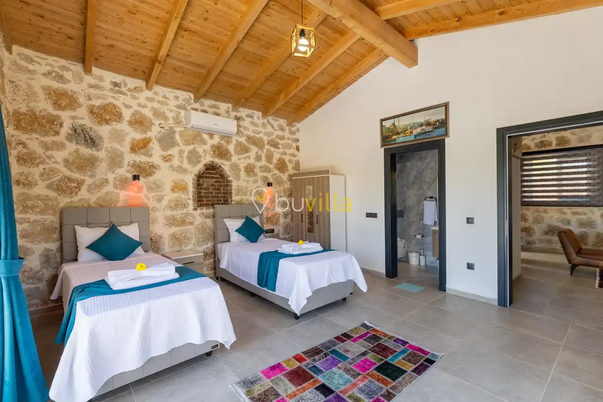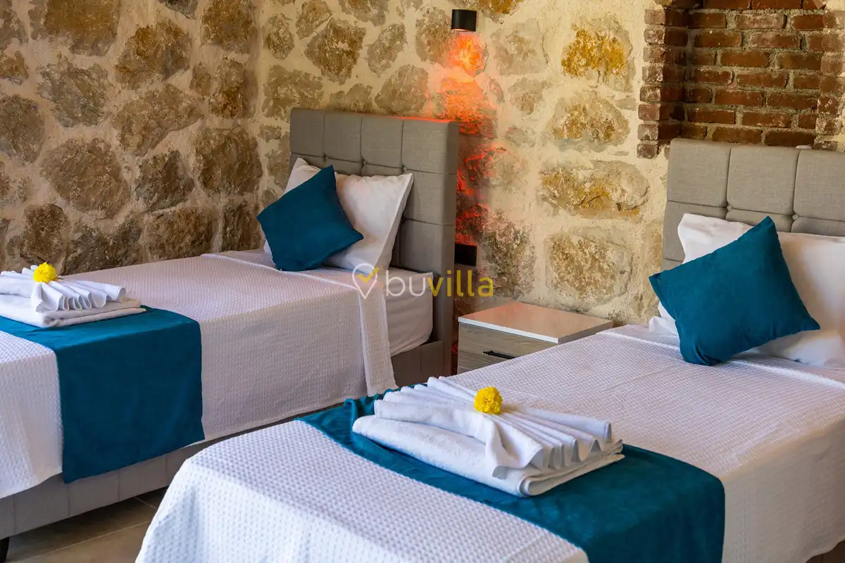 Toplam 2 yatak odası bulunan villamız, 4 kişilik konaklama kapasitesi ile çekirdek aileler ve balayı çiftleri için ideal bir tatil alternatifi sunmaktadır. Yılın tüm yorgunluğunu geride bırakabileceğiniz villada özel yüzme havuzu, çocuk havuzu ve jakuzi yer almaktadır.