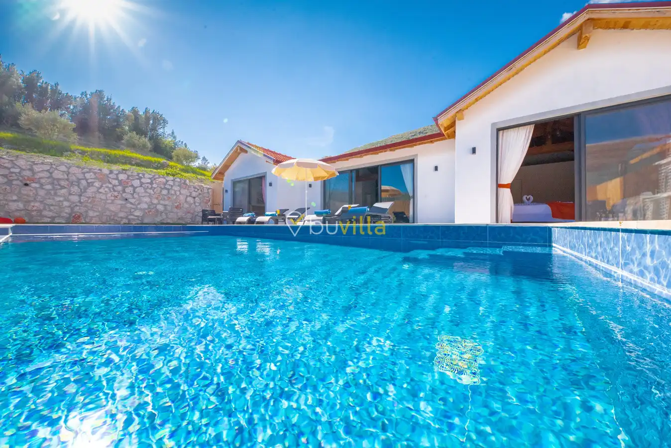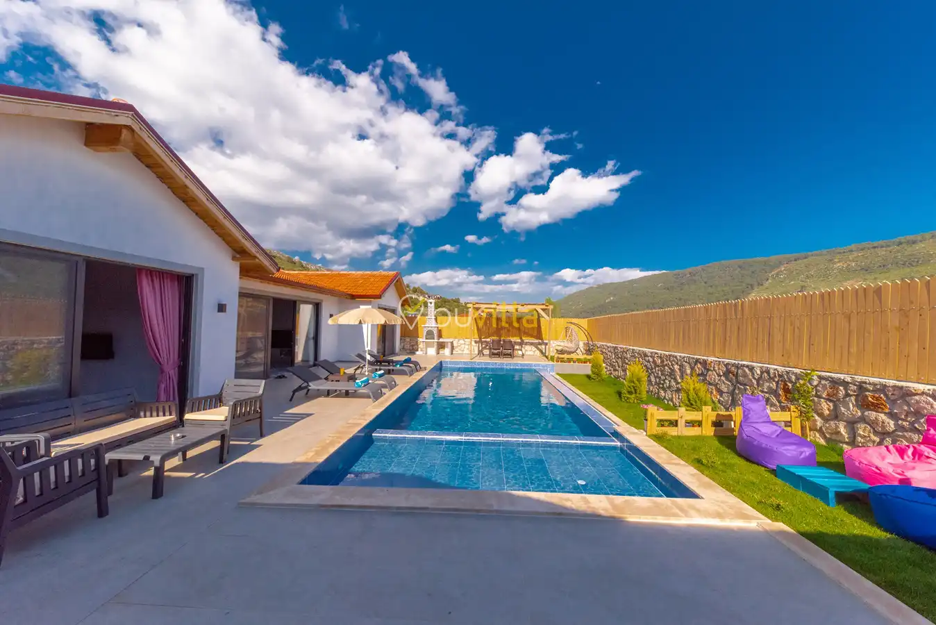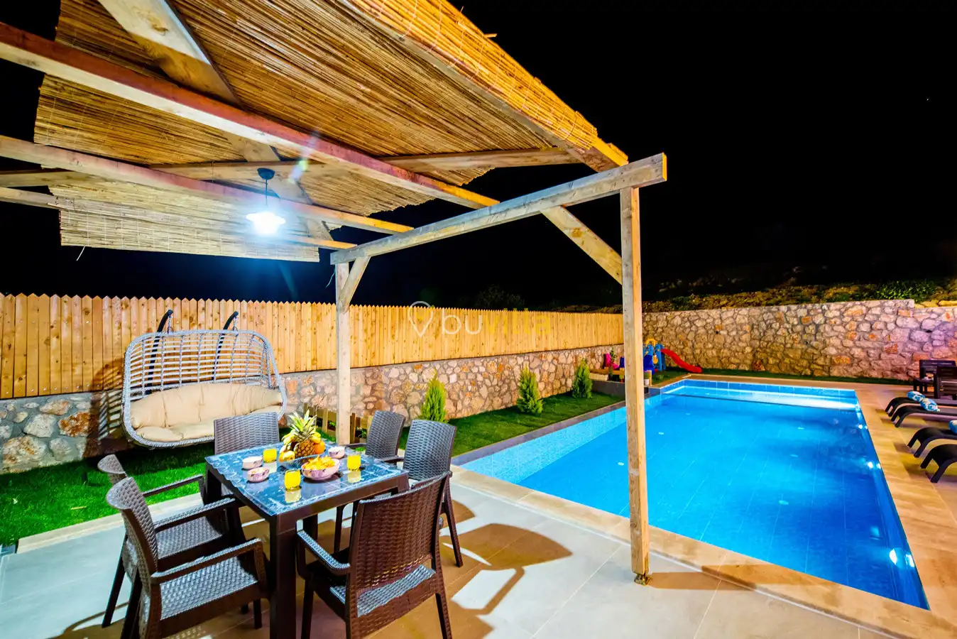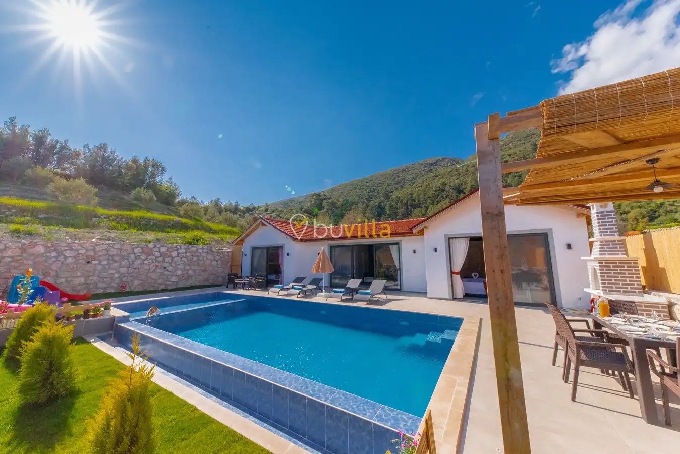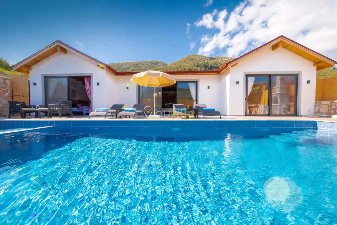 Villa Dessa, Kalkan’ın Hacıoğlan Mahallesi’nde yer alan, doğayla iç içe huzurlu bir tatil sunan kiralık yazlık bir villadır. İki yatak odası ve dört kişilik konaklama kapasitesi ile balayı çiftleri ve çekirdek aileler için özel olarak tasarlanmıştır. Şehrin gürültüsünden ve gözlerden uzak bir tatil geçirmek isteyenler için ideal olan Villa Dessa, geniş bahçesi, özel havuzu ve çocuk havuzu ile misafirlerine konforlu ve keyifli bir konaklama deneyimi sunar. Hayal edilen tatilden çok daha fazlasını yaşatacak bu özel villa, unutulmaz anılar biriktirmek isteyen misafirlerini bekliyor.