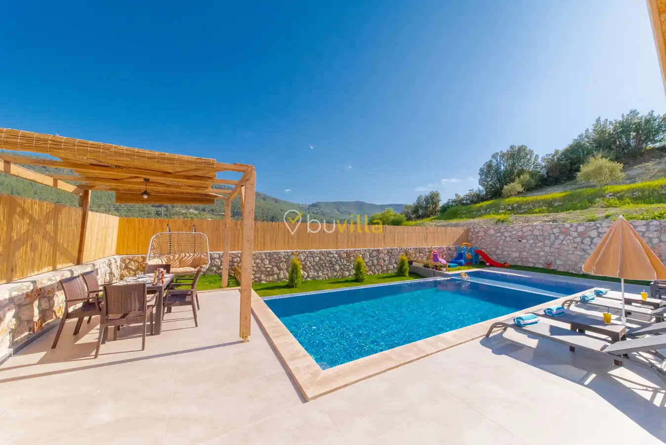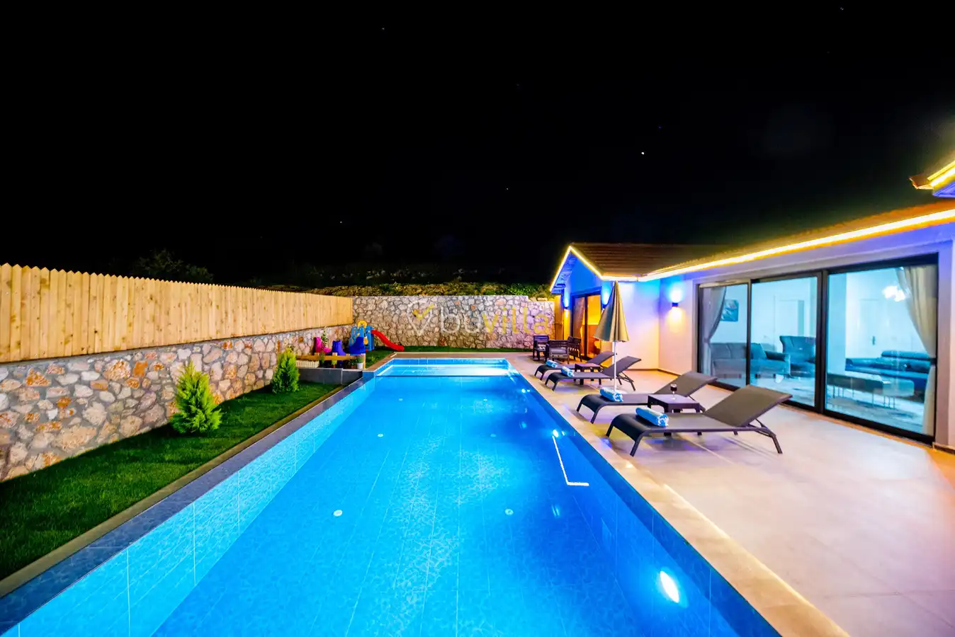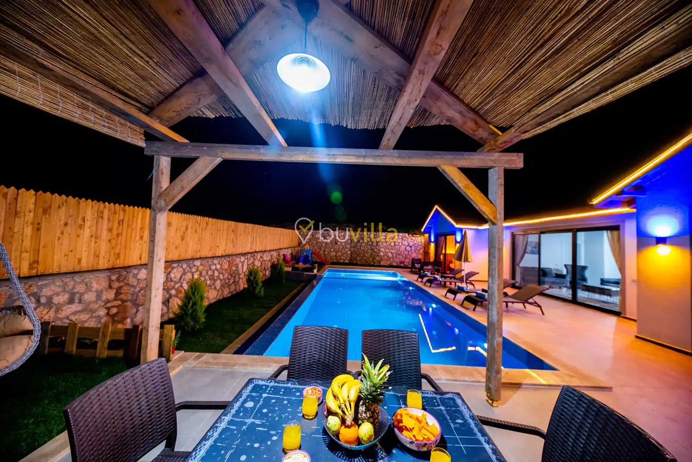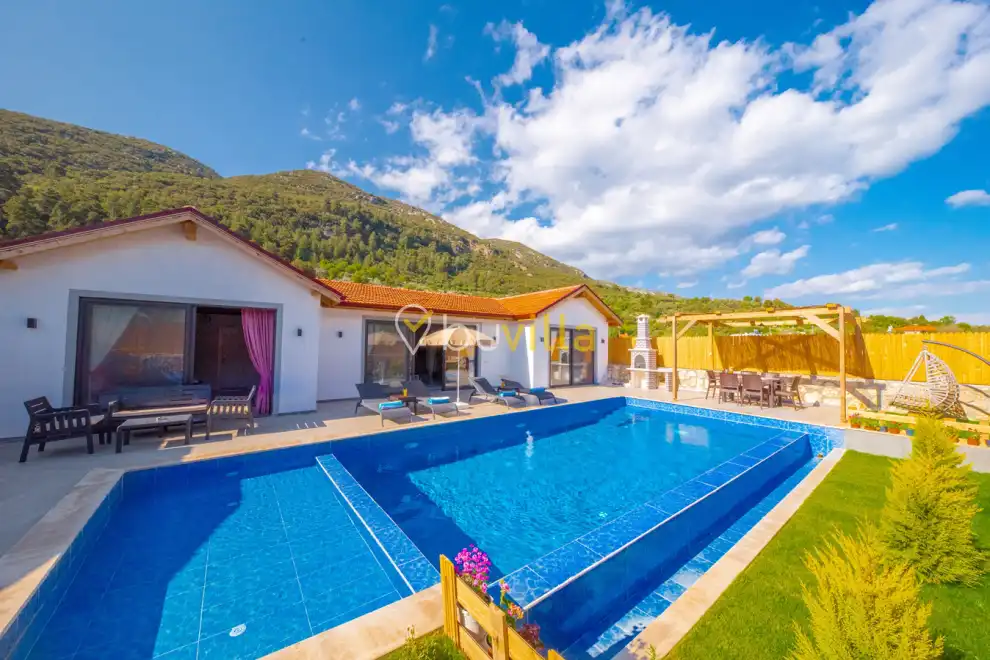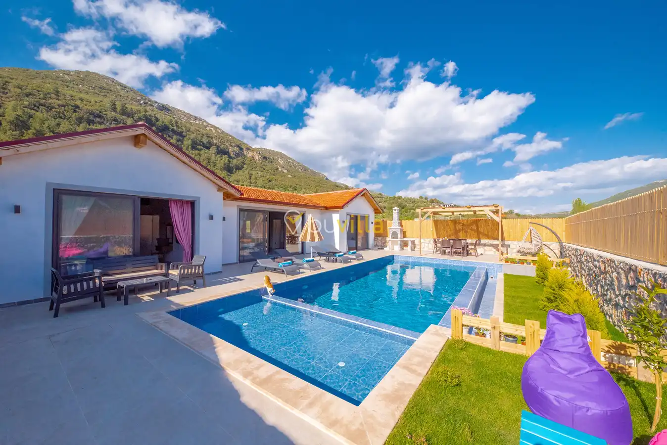 Villa Dessa, Kalkan’ın Hacıoğlan Mahallesi’nde yer alan, doğayla iç içe huzurlu bir tatil sunan kiralık yazlık bir villadır. İki yatak odası ve dört kişilik konaklama kapasitesi ile balayı çiftleri ve çekirdek aileler için özel olarak tasarlanmıştır. Şehrin gürültüsünden ve gözlerden uzak bir tatil geçirmek isteyenler için ideal olan Villa Dessa, geniş bahçesi, özel havuzu ve çocuk havuzu ile misafirlerine konforlu ve keyifli bir konaklama deneyimi sunar. Hayal edilen tatilden çok daha fazlasını yaşatacak bu özel villa, unutulmaz anılar biriktirmek isteyen misafirlerini bekliyor.