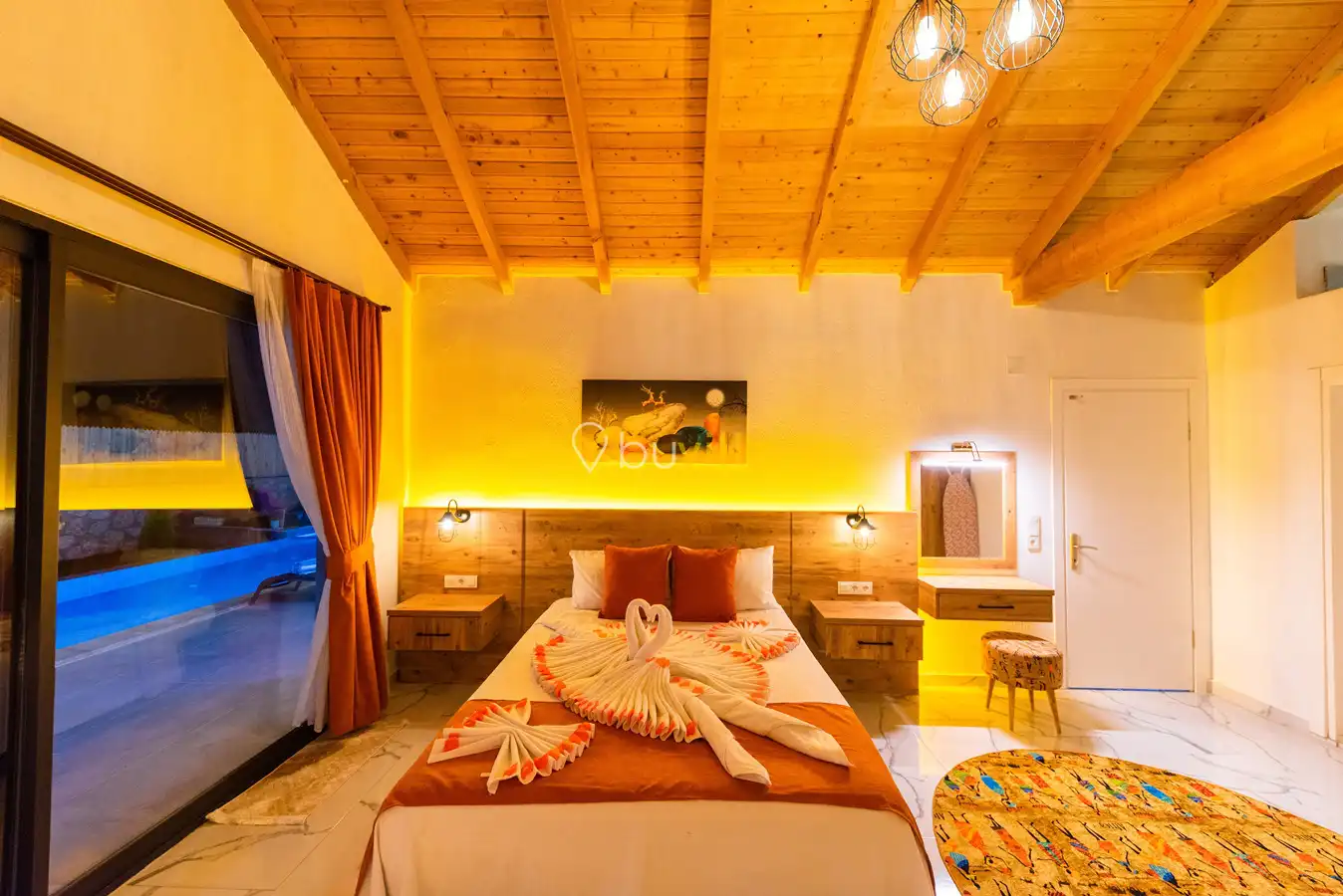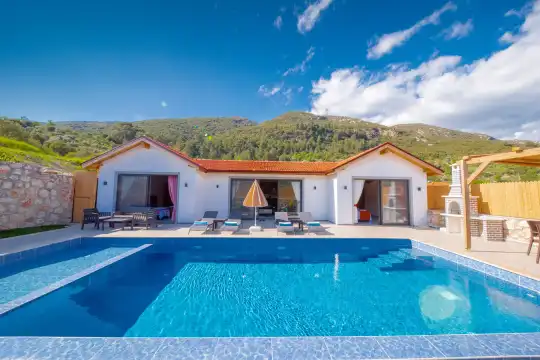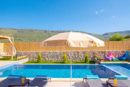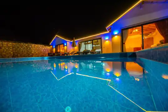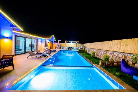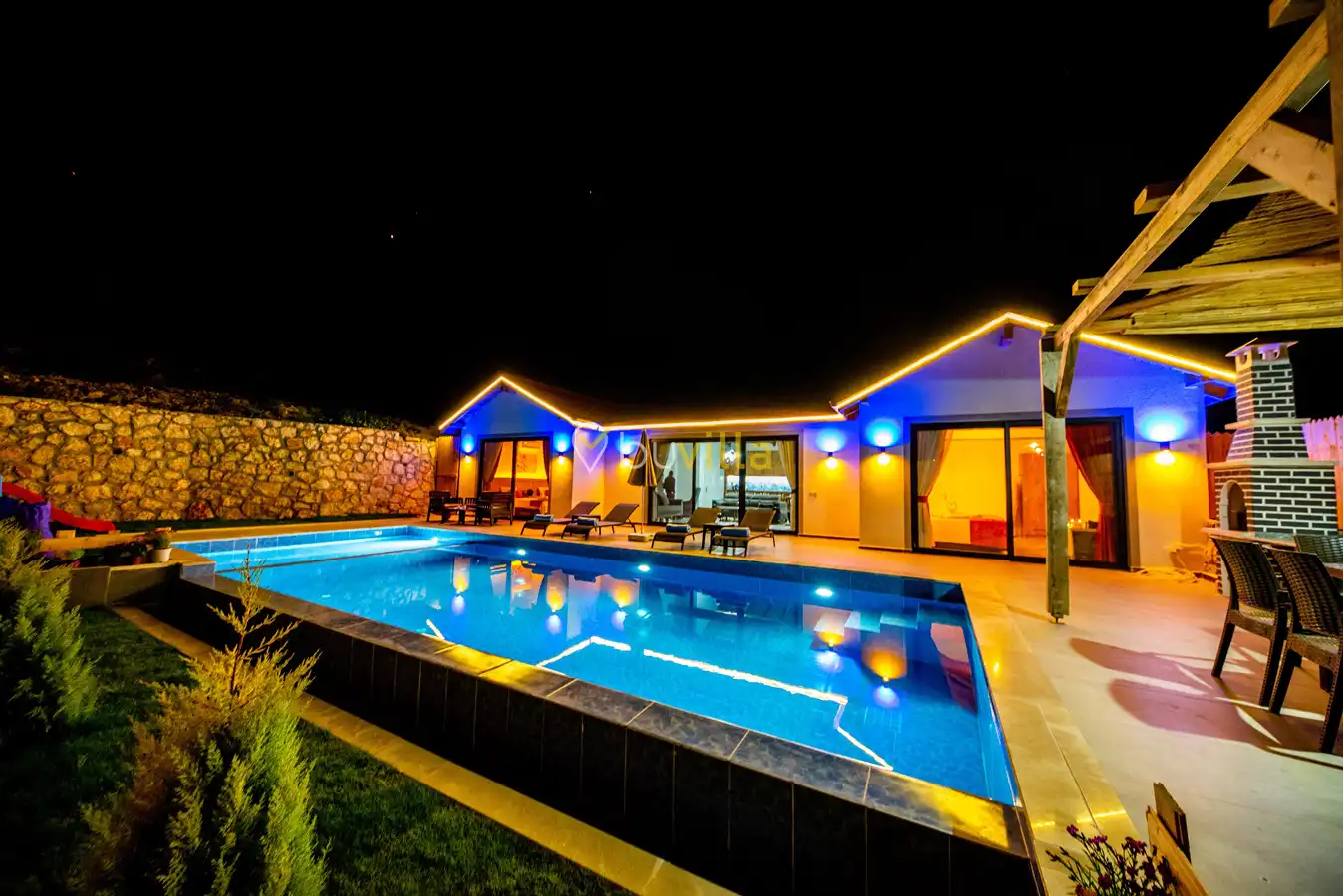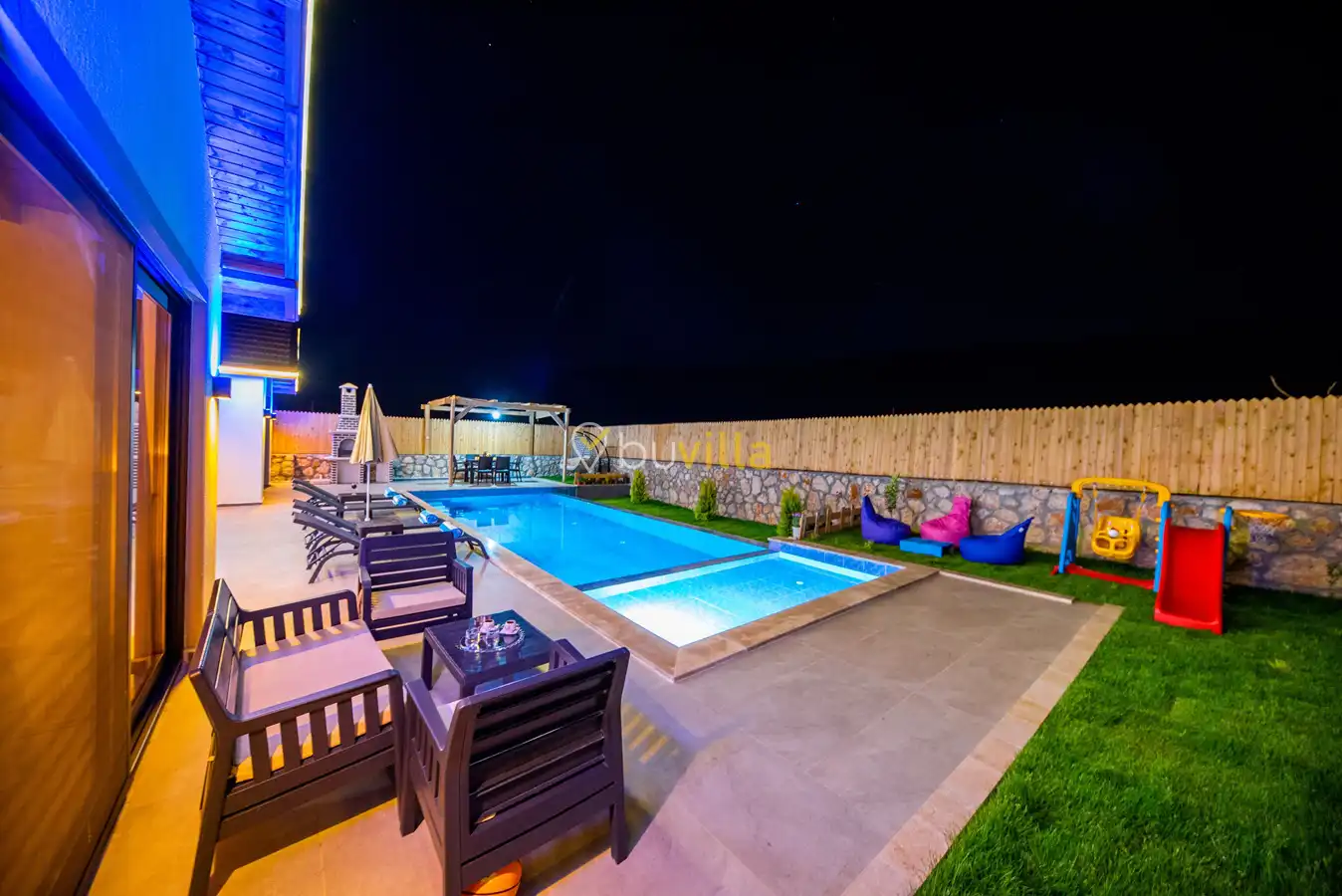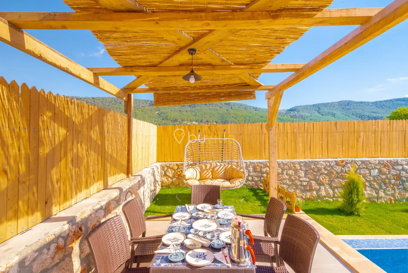 Villa Dessa, Kalkan’ın Hacıoğlan Mahallesi’nde yer alan, doğayla iç içe huzurlu bir tatil sunan kiralık yazlık bir villadır. İki yatak odası ve dört kişilik konaklama kapasitesi ile balayı çiftleri ve çekirdek aileler için özel olarak tasarlanmıştır. Şehrin gürültüsünden ve gözlerden uzak bir tatil geçirmek isteyenler için ideal olan Villa Dessa, geniş bahçesi, özel havuzu ve çocuk havuzu ile misafirlerine konforlu ve keyifli bir konaklama deneyimi sunar. Hayal edilen tatilden çok daha fazlasını yaşatacak bu özel villa, unutulmaz anılar biriktirmek isteyen misafirlerini bekliyor.