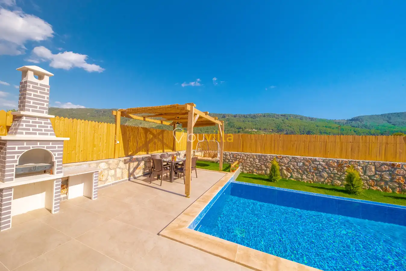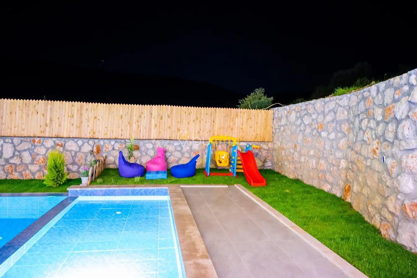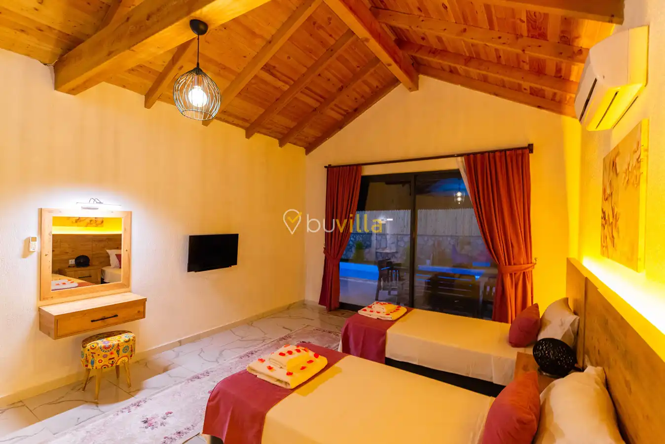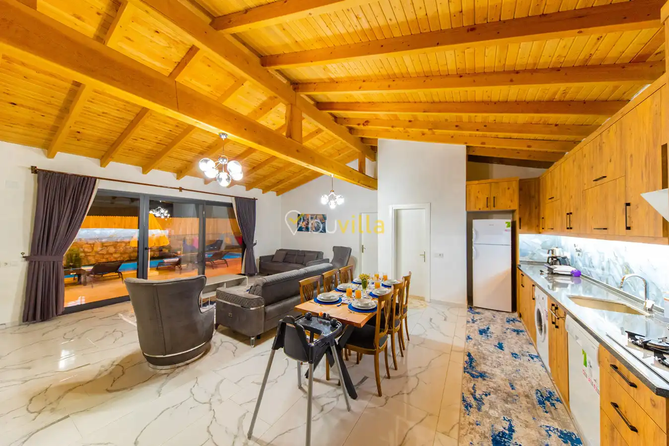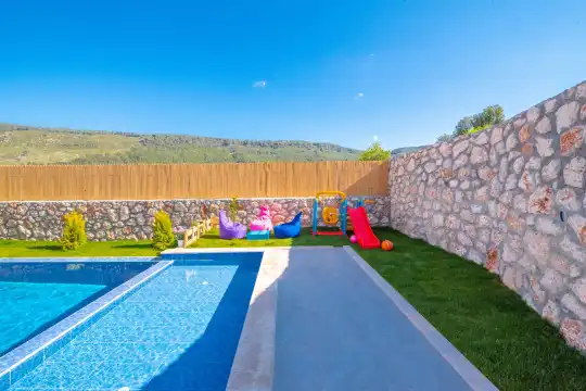 Villa Dessa, Kalkan’ın Hacıoğlan Mahallesi’nde yer alan, doğayla iç içe huzurlu bir tatil sunan kiralık yazlık bir villadır. İki yatak odası ve dört kişilik konaklama kapasitesi ile balayı çiftleri ve çekirdek aileler için özel olarak tasarlanmıştır. Şehrin gürültüsünden ve gözlerden uzak bir tatil geçirmek isteyenler için ideal olan Villa Dessa, geniş bahçesi, özel havuzu ve çocuk havuzu ile misafirlerine konforlu ve keyifli bir konaklama deneyimi sunar. Hayal edilen tatilden çok daha fazlasını yaşatacak bu özel villa, unutulmaz anılar biriktirmek isteyen misafirlerini bekliyor.