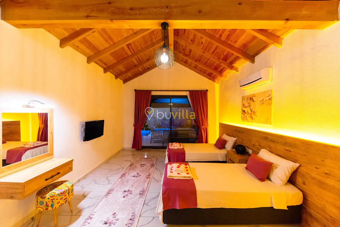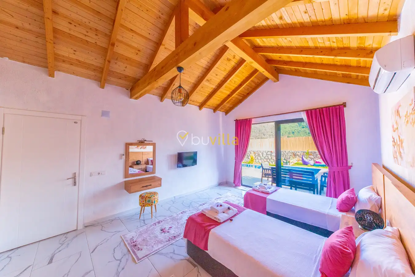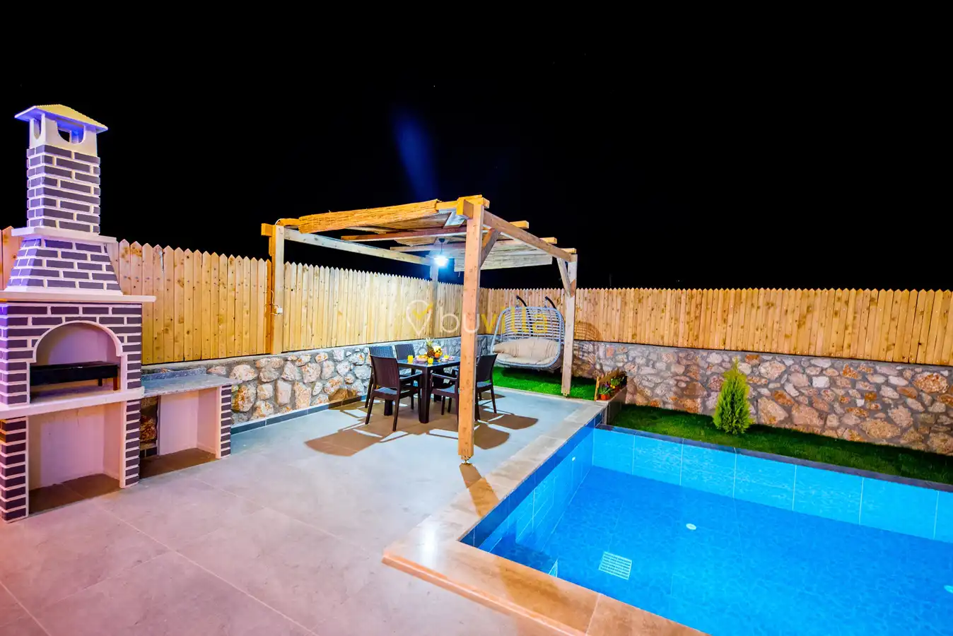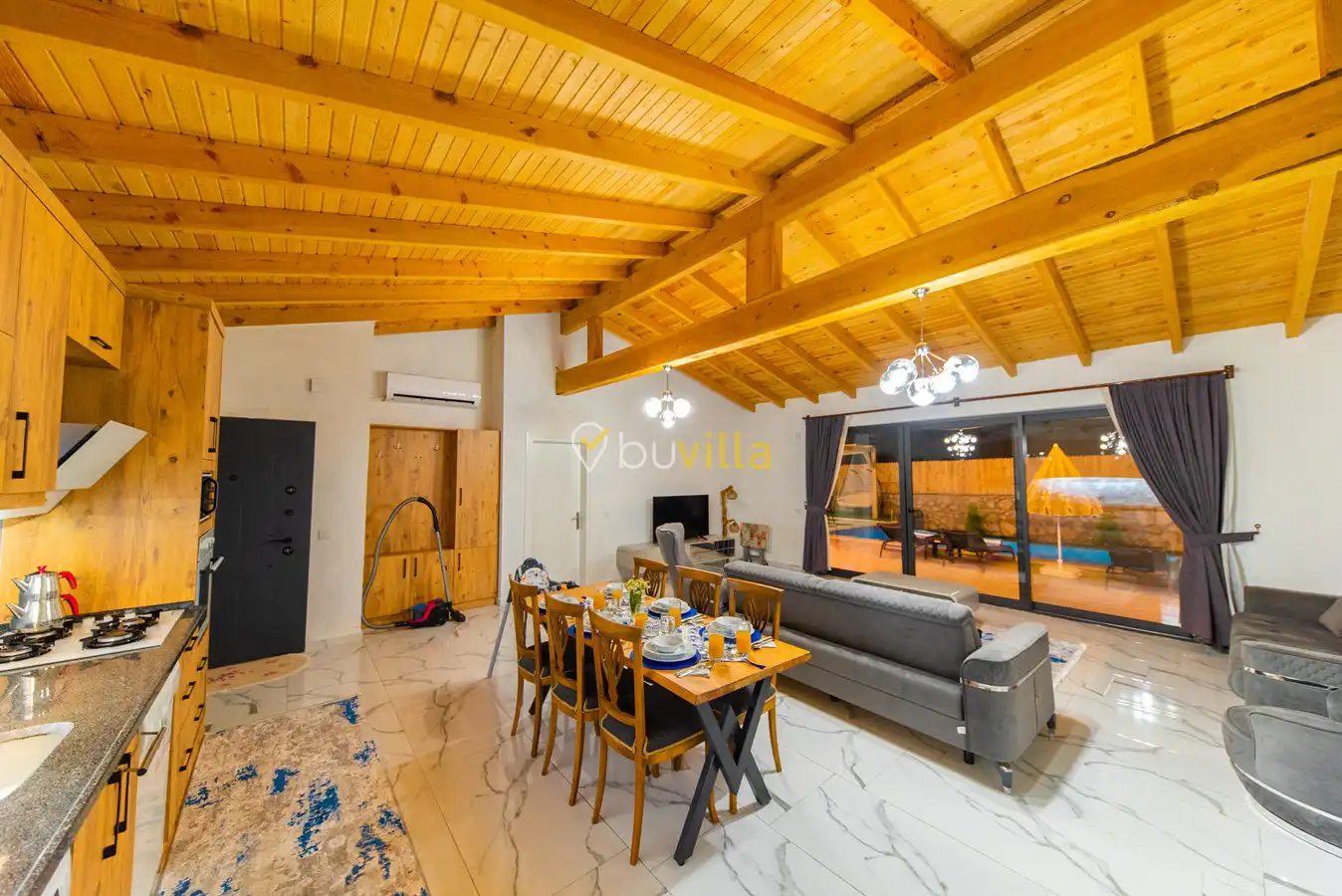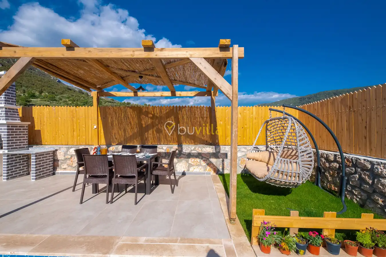 Villa Dessa, Kalkan’ın Hacıoğlan Mahallesi’nde yer alan, doğayla iç içe huzurlu bir tatil sunan kiralık yazlık bir villadır. İki yatak odası ve dört kişilik konaklama kapasitesi ile balayı çiftleri ve çekirdek aileler için özel olarak tasarlanmıştır. Şehrin gürültüsünden ve gözlerden uzak bir tatil geçirmek isteyenler için ideal olan Villa Dessa, geniş bahçesi, özel havuzu ve çocuk havuzu ile misafirlerine konforlu ve keyifli bir konaklama deneyimi sunar. Hayal edilen tatilden çok daha fazlasını yaşatacak bu özel villa, unutulmaz anılar biriktirmek isteyen misafirlerini bekliyor.
