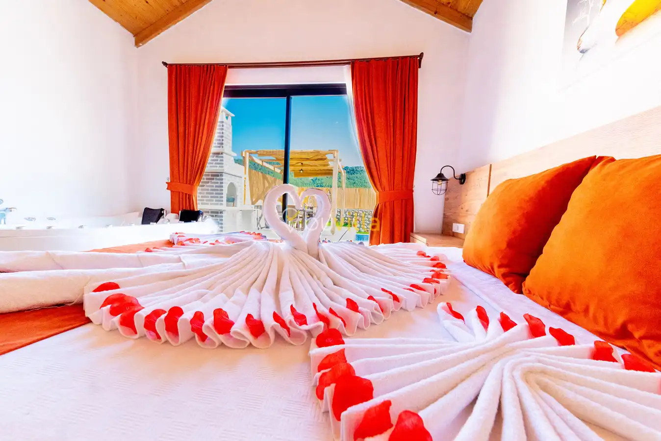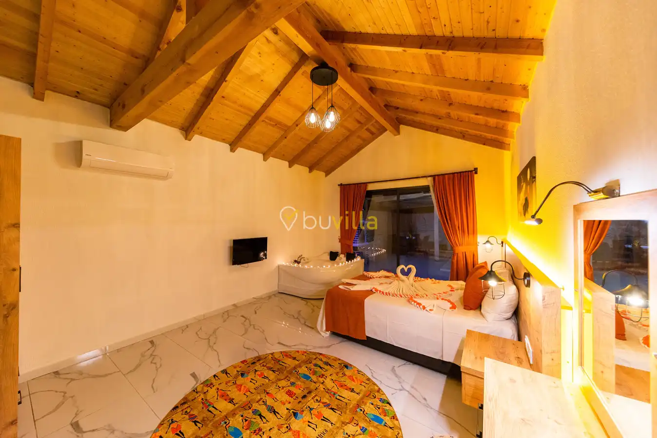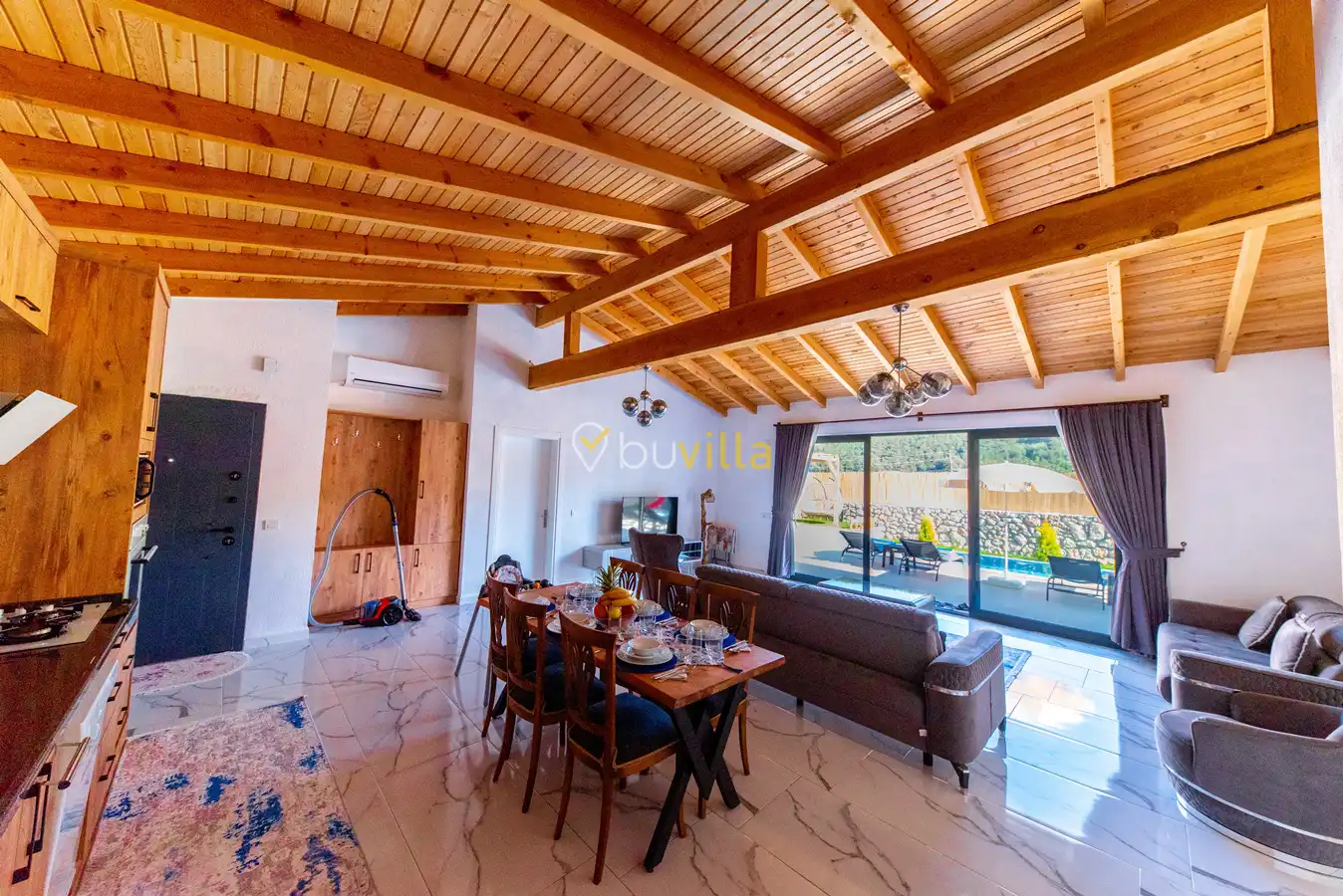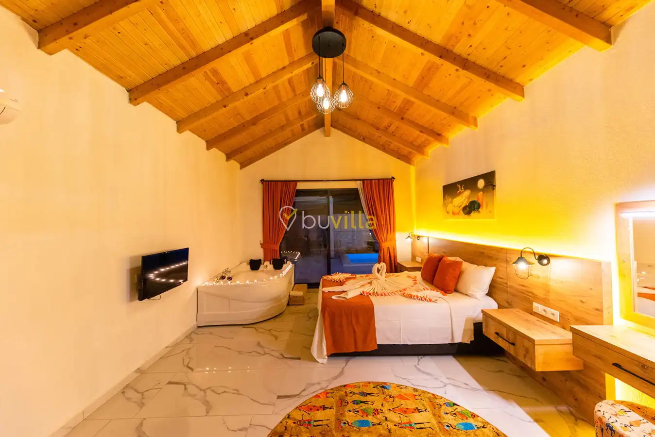 Villa Dessa, Kalkan’ın Hacıoğlan Mahallesi’nde yer alan, doğayla iç içe huzurlu bir tatil sunan kiralık yazlık bir villadır. İki yatak odası ve dört kişilik konaklama kapasitesi ile balayı çiftleri ve çekirdek aileler için özel olarak tasarlanmıştır. Şehrin gürültüsünden ve gözlerden uzak bir tatil geçirmek isteyenler için ideal olan Villa Dessa, geniş bahçesi, özel havuzu ve çocuk havuzu ile misafirlerine konforlu ve keyifli bir konaklama deneyimi sunar. Hayal edilen tatilden çok daha fazlasını yaşatacak bu özel villa, unutulmaz anılar biriktirmek isteyen misafirlerini bekliyor.