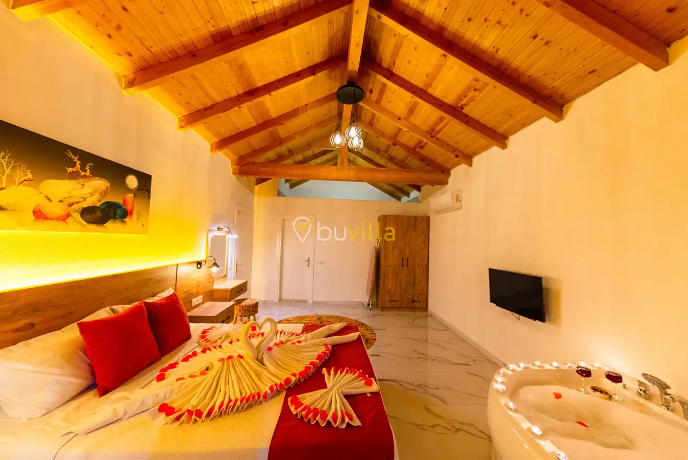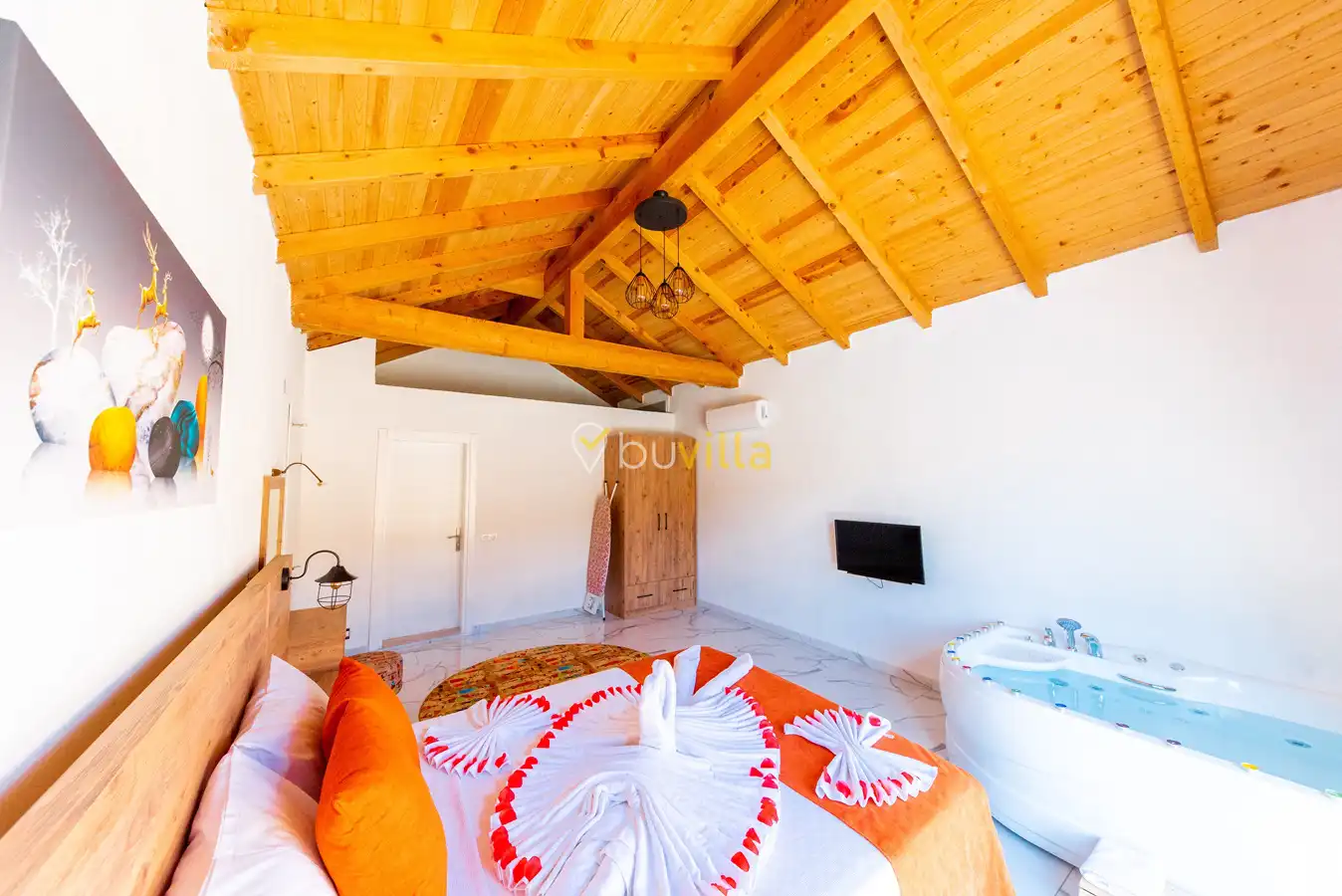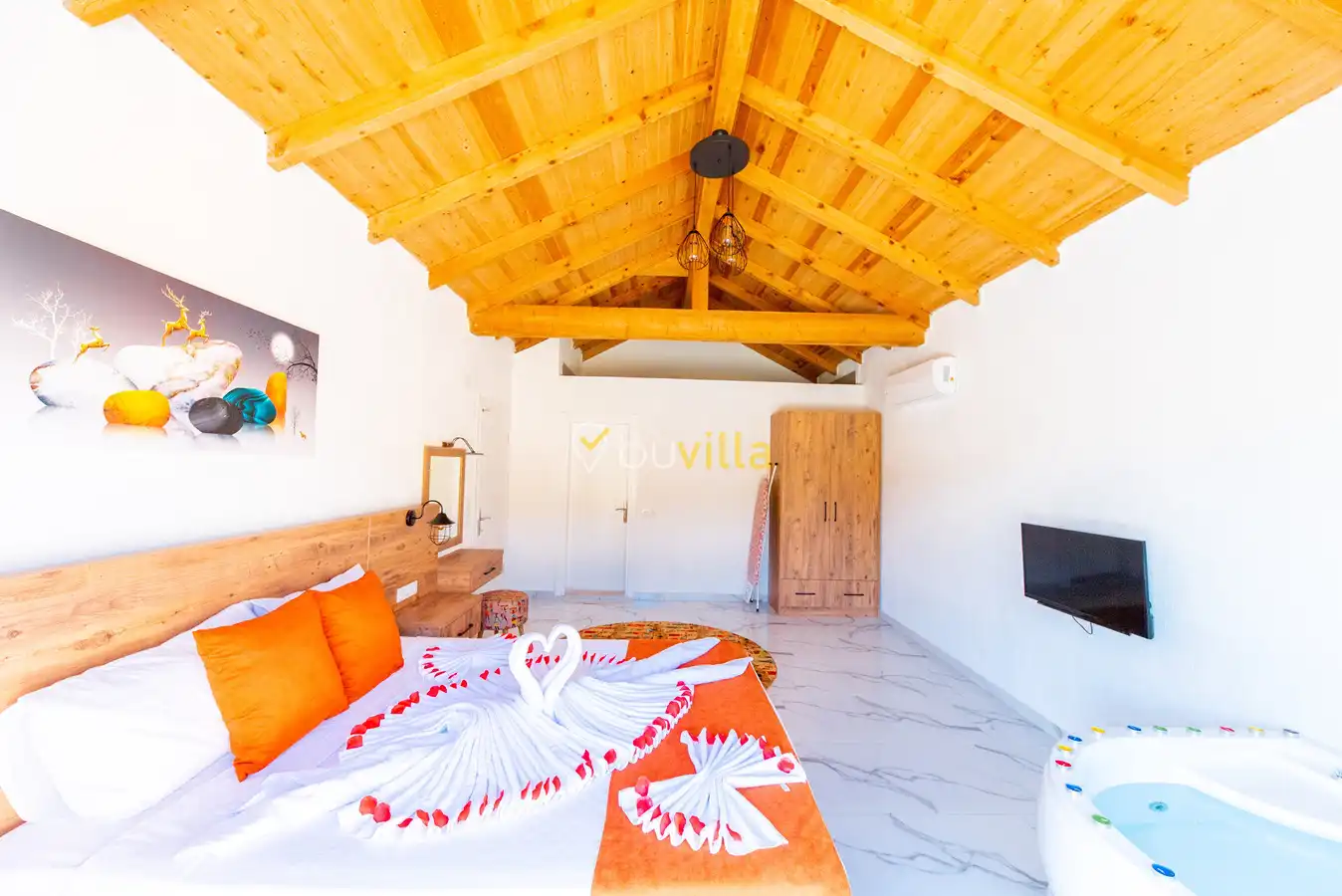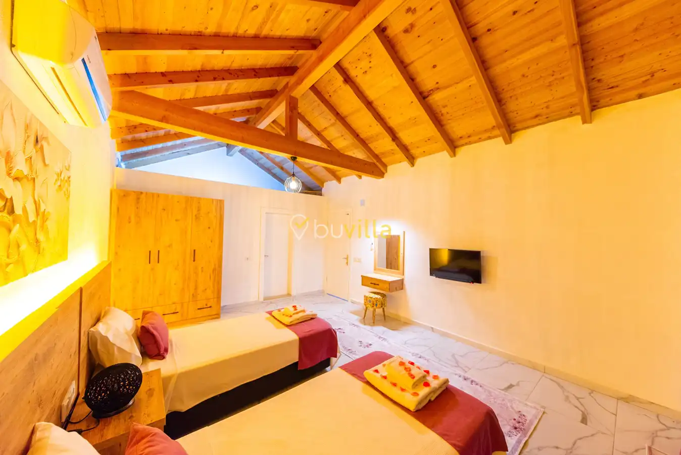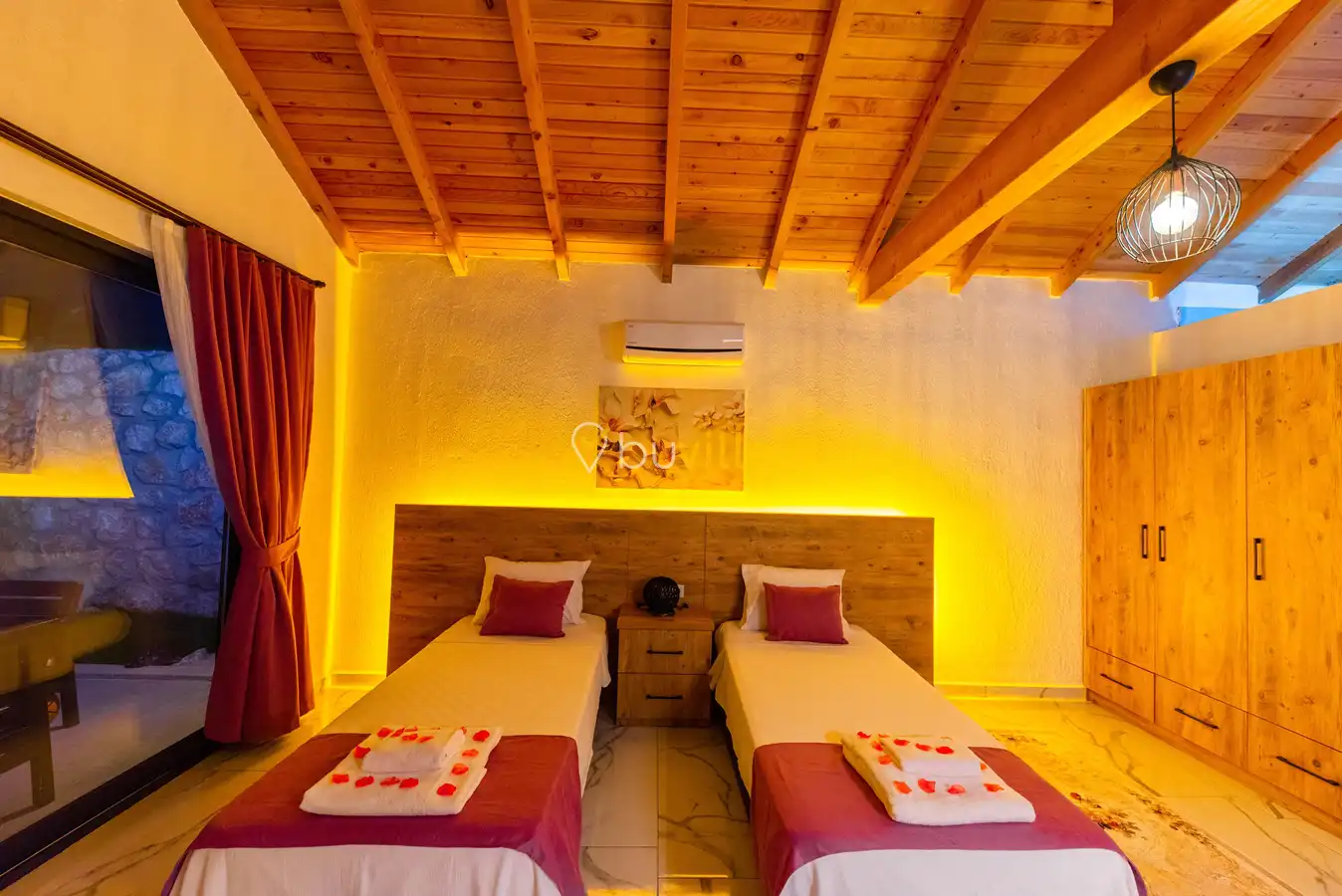 Villa Dessa, Kalkan’ın Hacıoğlan Mahallesi’nde yer alan, doğayla iç içe huzurlu bir tatil sunan kiralık yazlık bir villadır. İki yatak odası ve dört kişilik konaklama kapasitesi ile balayı çiftleri ve çekirdek aileler için özel olarak tasarlanmıştır. Şehrin gürültüsünden ve gözlerden uzak bir tatil geçirmek isteyenler için ideal olan Villa Dessa, geniş bahçesi, özel havuzu ve çocuk havuzu ile misafirlerine konforlu ve keyifli bir konaklama deneyimi sunar. Hayal edilen tatilden çok daha fazlasını yaşatacak bu özel villa, unutulmaz anılar biriktirmek isteyen misafirlerini bekliyor.