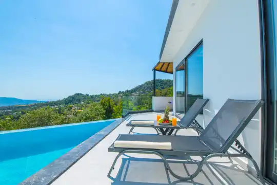 Villa Dilay, Kalkan İslamlar Bölgesi'nde doğa içinde yer alan, 1 yatak odalı ve 2 kişi konaklama kapasitesine sahip kiralık bir villadır. Modern ve konforlu bir şekilde dizayn edilmiş olan villada, özellikle balayı çiftleri için ideal olan üçgen tasarımlı bir yüzme havuzu bulunmaktadır. Villa Dilay, özel yüzme havuzu ve bahçe mobilyaları ile donatılmış olup, doğa manzarası ve kısmi deniz manzarası eşliğinde yılın tüm yorgunluğunu atmanıza olanak tanır. Hem iç mekanları hem de dış mekanlarıyla sakin ve huzurlu bir tatil geçirmek isteyenler için mükemmel bir tercihtir.