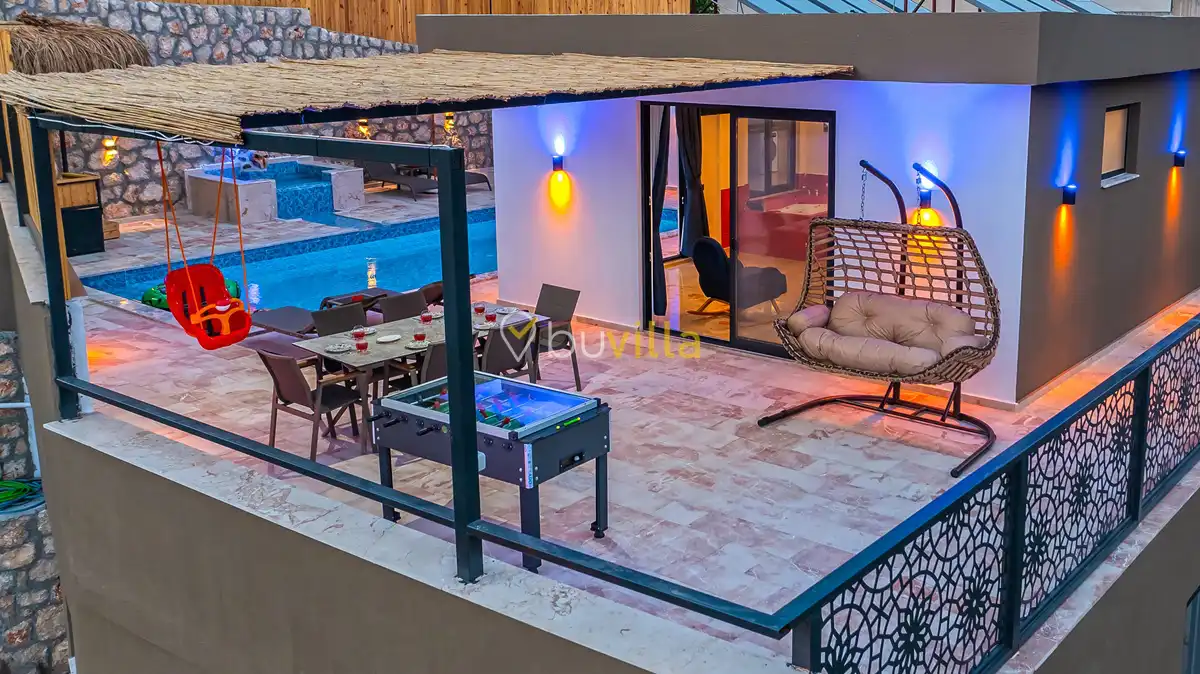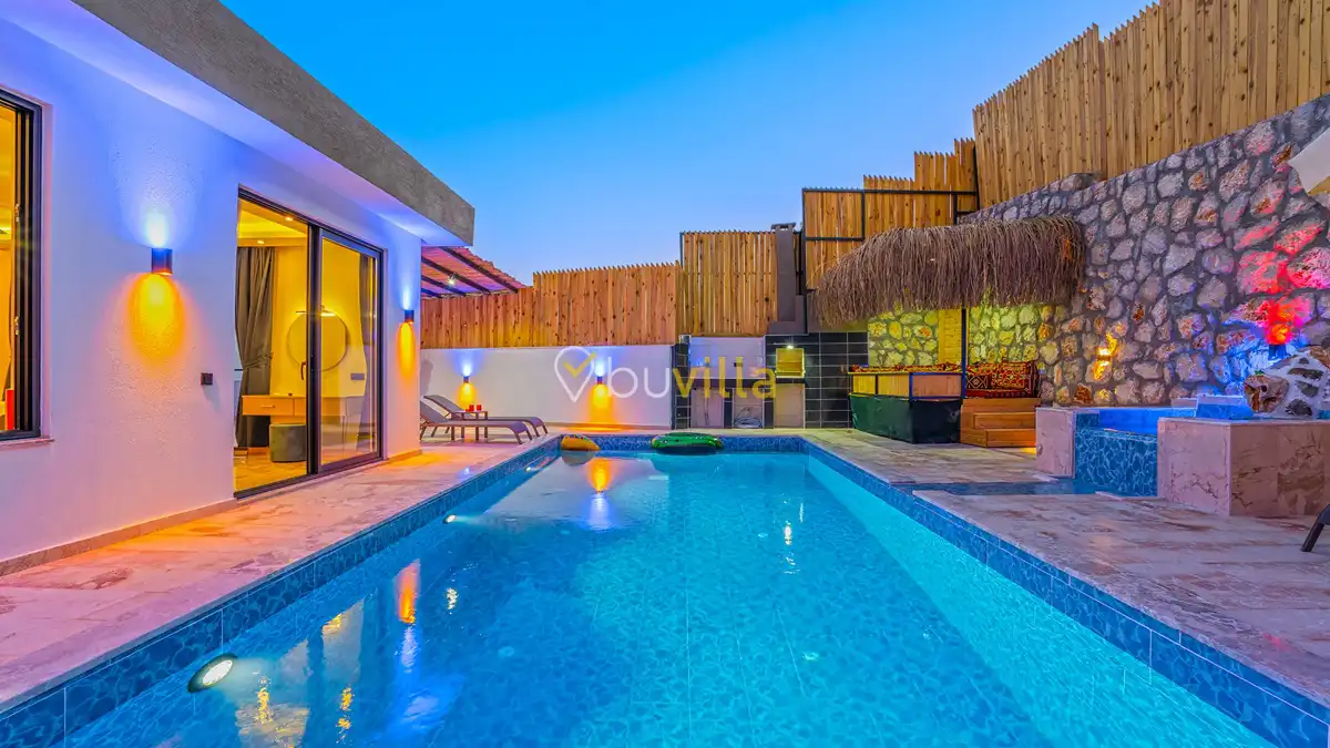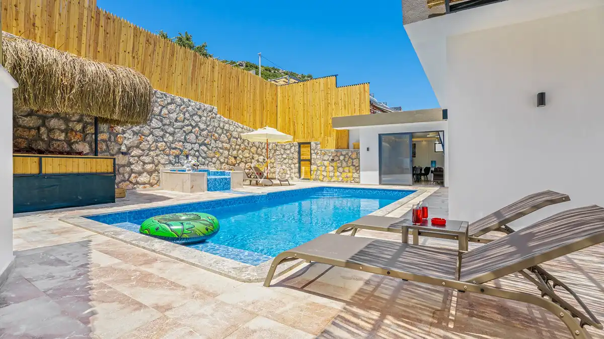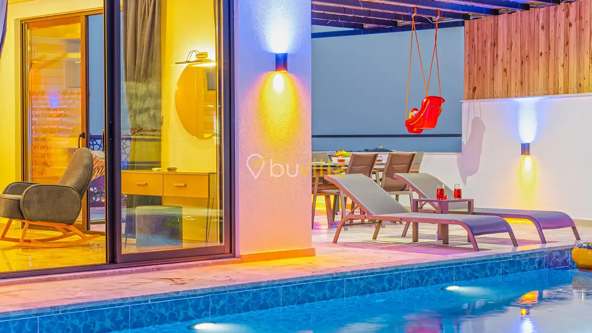 Modern mimarisi ve konforlu yaşam alanlarıyla öne çıkan villamızda, ailenizle birlikte keyifli ve dinlendirici bir tatil geçirebilirsiniz. Tatilinizi daha ayrıcalıklı hale getiren langırt, salıncak, bahçe köşkü, sauna ve tuz odası gibi olanaklar sayesinde hem eğlence hem de dinlenme bir arada sunulmaktadır. Kalkan İslamlar bölgesinde, sakinlik ve konforu bir arada sunan bir villa kiralama alternatifi arıyorsanız, Villa Dimare 3 beklentilerinizi fazlasıyla karşılayacaktır.
