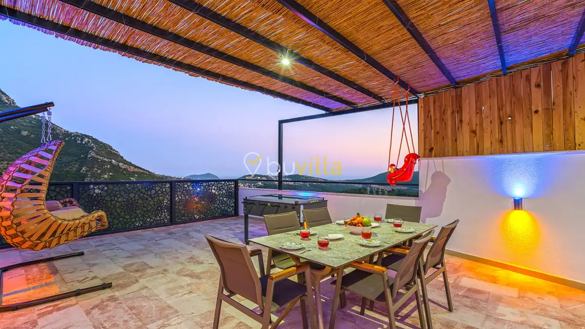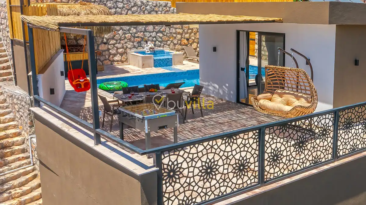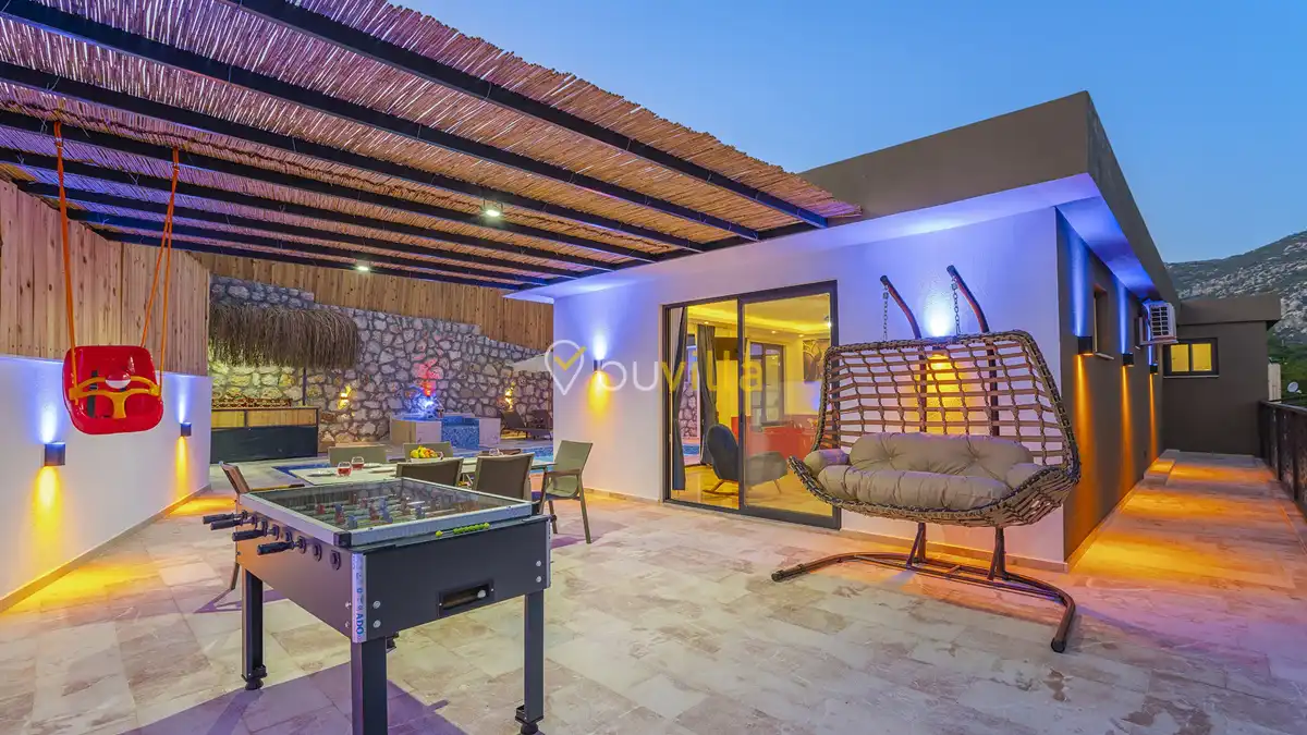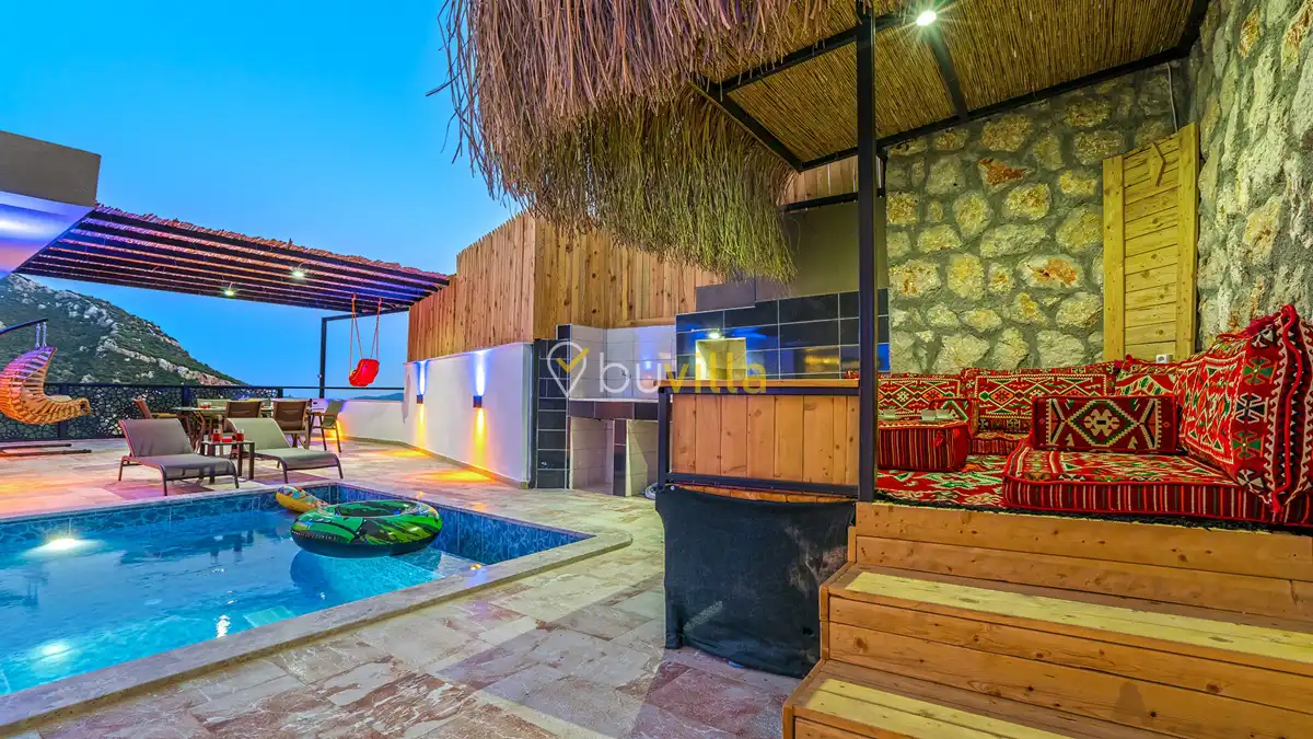 Modern mimarisi ve konforlu yaşam alanlarıyla öne çıkan villamızda, ailenizle birlikte keyifli ve dinlendirici bir tatil geçirebilirsiniz. Tatilinizi daha ayrıcalıklı hale getiren langırt, salıncak, bahçe köşkü, sauna ve tuz odası gibi olanaklar sayesinde hem eğlence hem de dinlenme bir arada sunulmaktadır. Kalkan İslamlar bölgesinde, sakinlik ve konforu bir arada sunan bir villa kiralama alternatifi arıyorsanız, Villa Dimare 3 beklentilerinizi fazlasıyla karşılayacaktır.