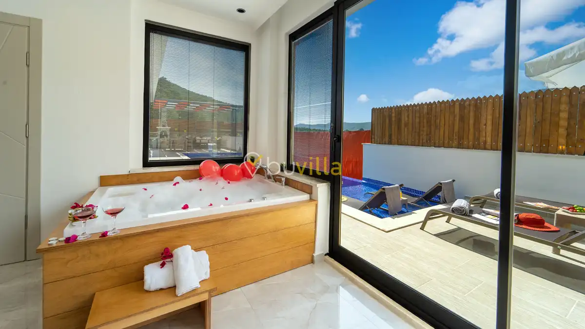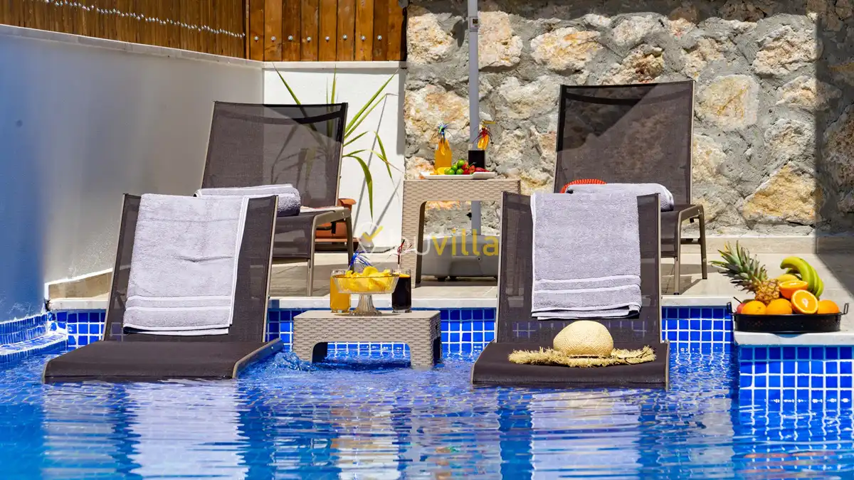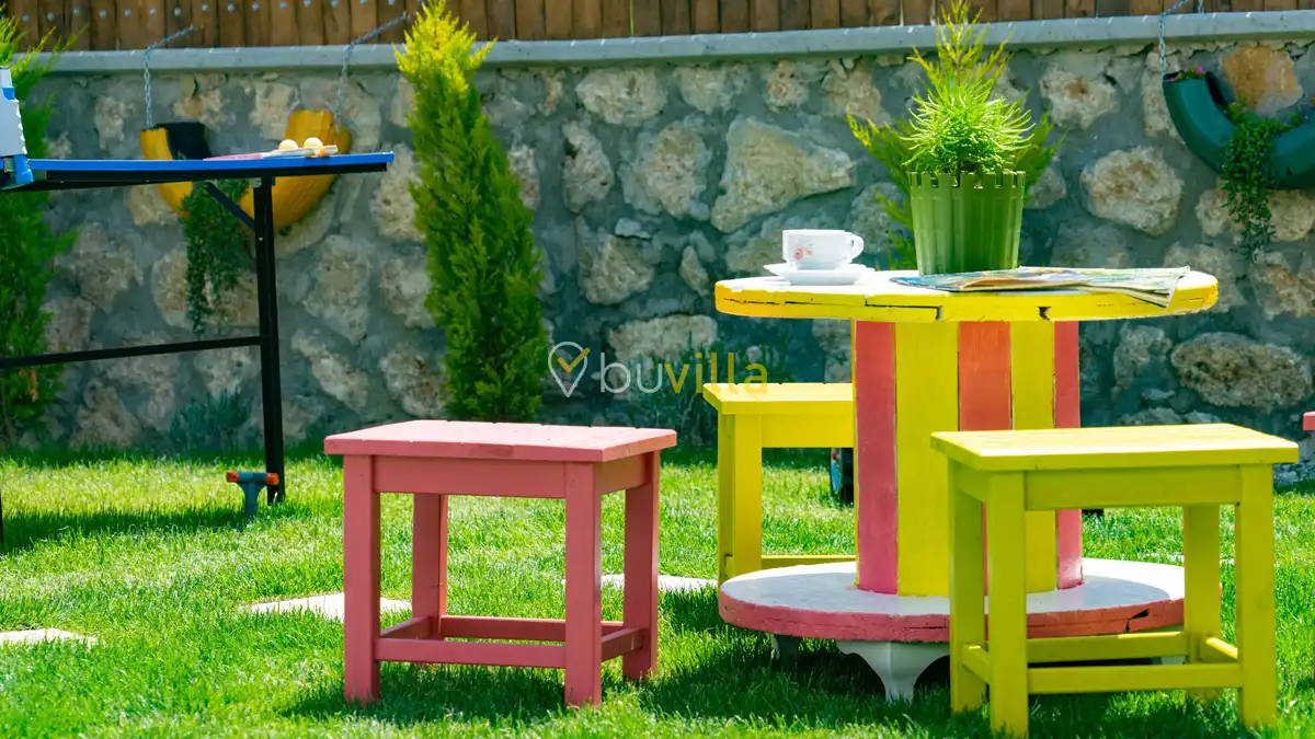 Villamızda yer alan korunaklı havuz alanı, mahremiyete önem veren misafirler için güvenli ve rahat bir kullanım sunarken; sevimli mini bahçe alanı ise doğa ile iç içe keyifli vakit geçirmenize olanak tanır. Modern ve kullanışlı şekilde tasarlanan Villa Dinçer’de, tatiliniz boyunca ihtiyaç duyabileceğiniz tüm detaylar özenle düşünülmüştür.