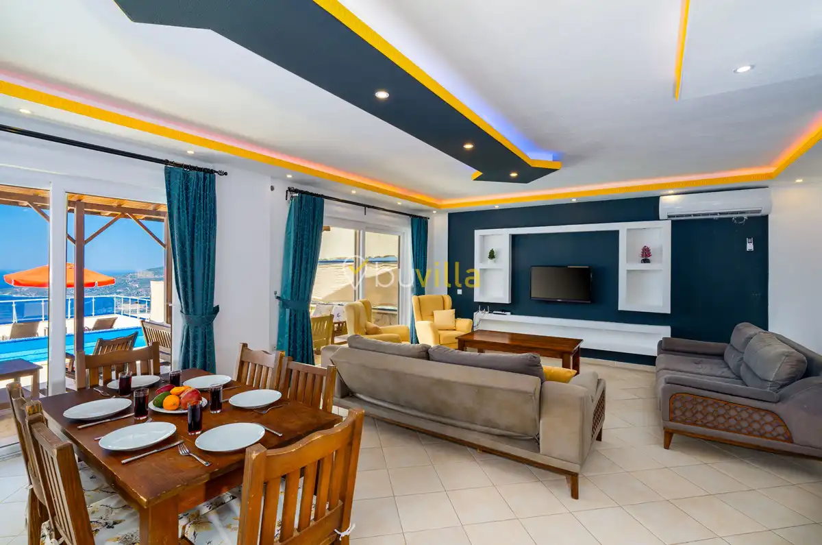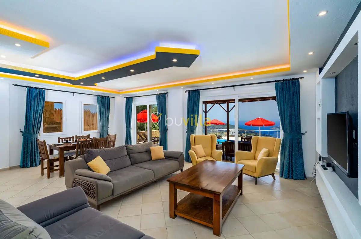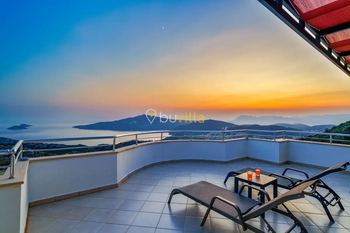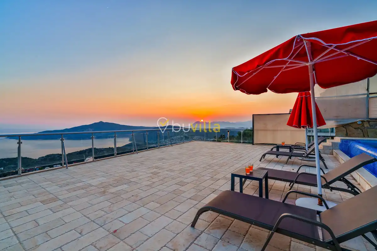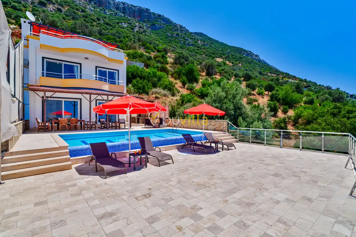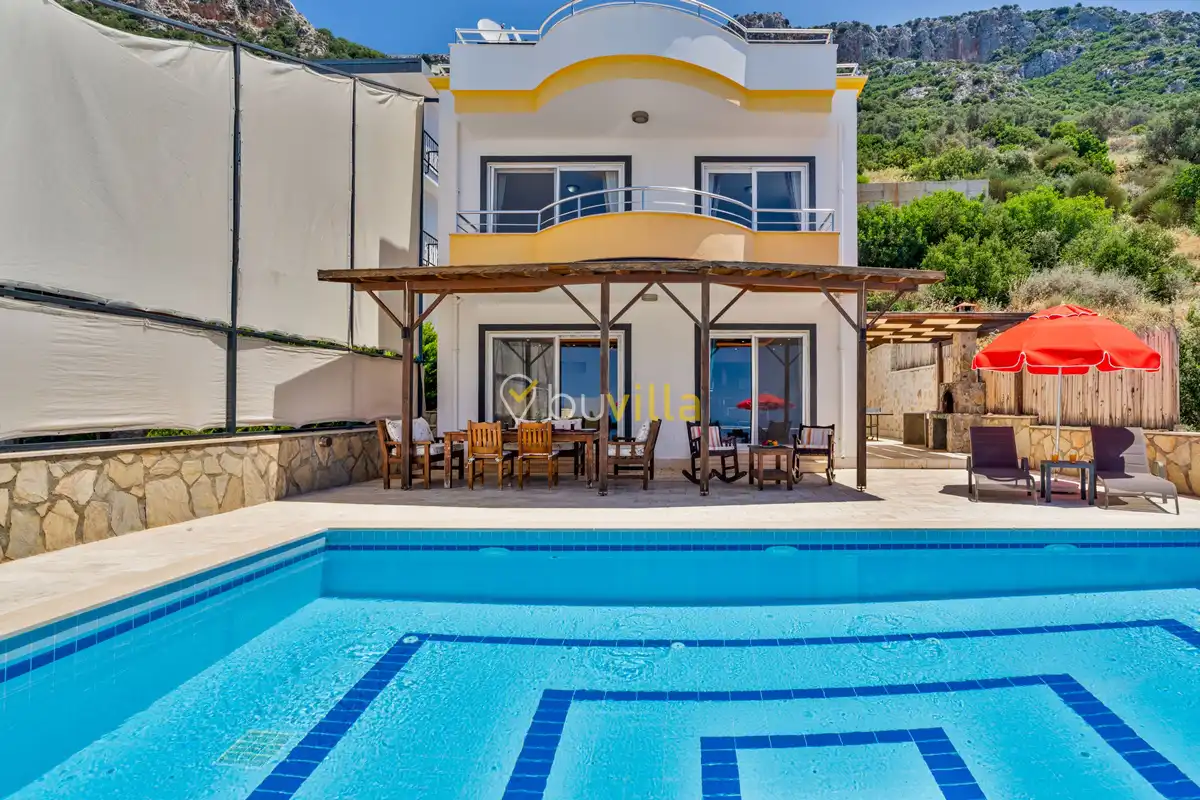Kalkan’ın Kördere mevkiinde, Sarnıçbaşı bölgesinde yer alan bu lüks kiralık villa; panoramik deniz manzarası, yüksek konumu ve mahremiyet odaklı yapısıyla özel bir tatil deneyimi sunar. Dört yatak odasıyla sekiz kişilik konaklama kapasitesine sahip olan villa, hem muhafazakâr aileler hem de sakin ve izole bir tatil arayan misafirler için ideal bir villa kiralama alternatifidir.
