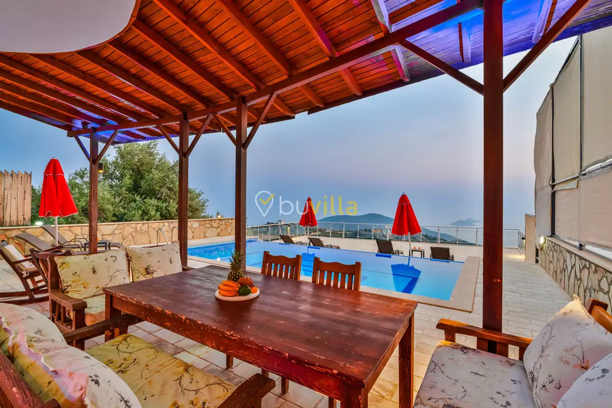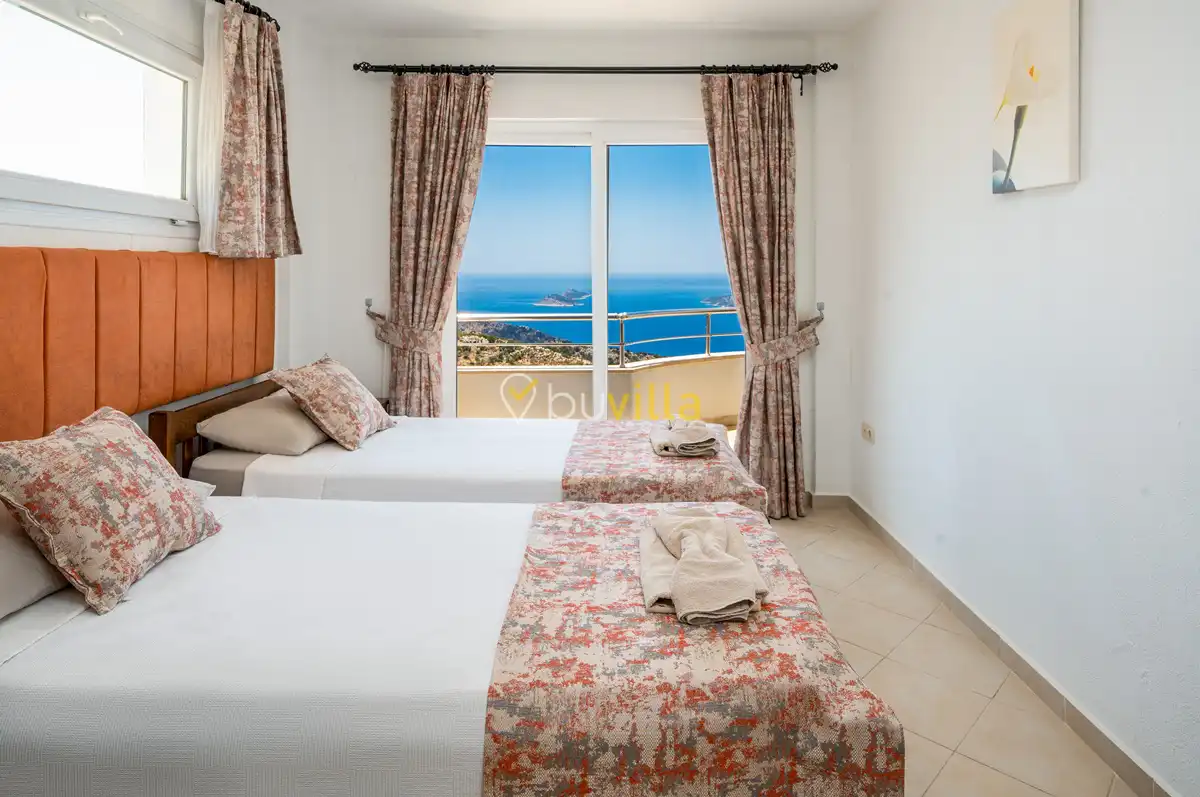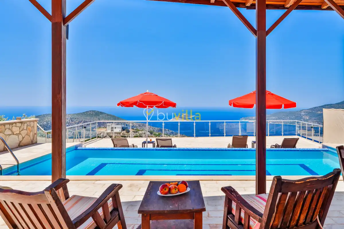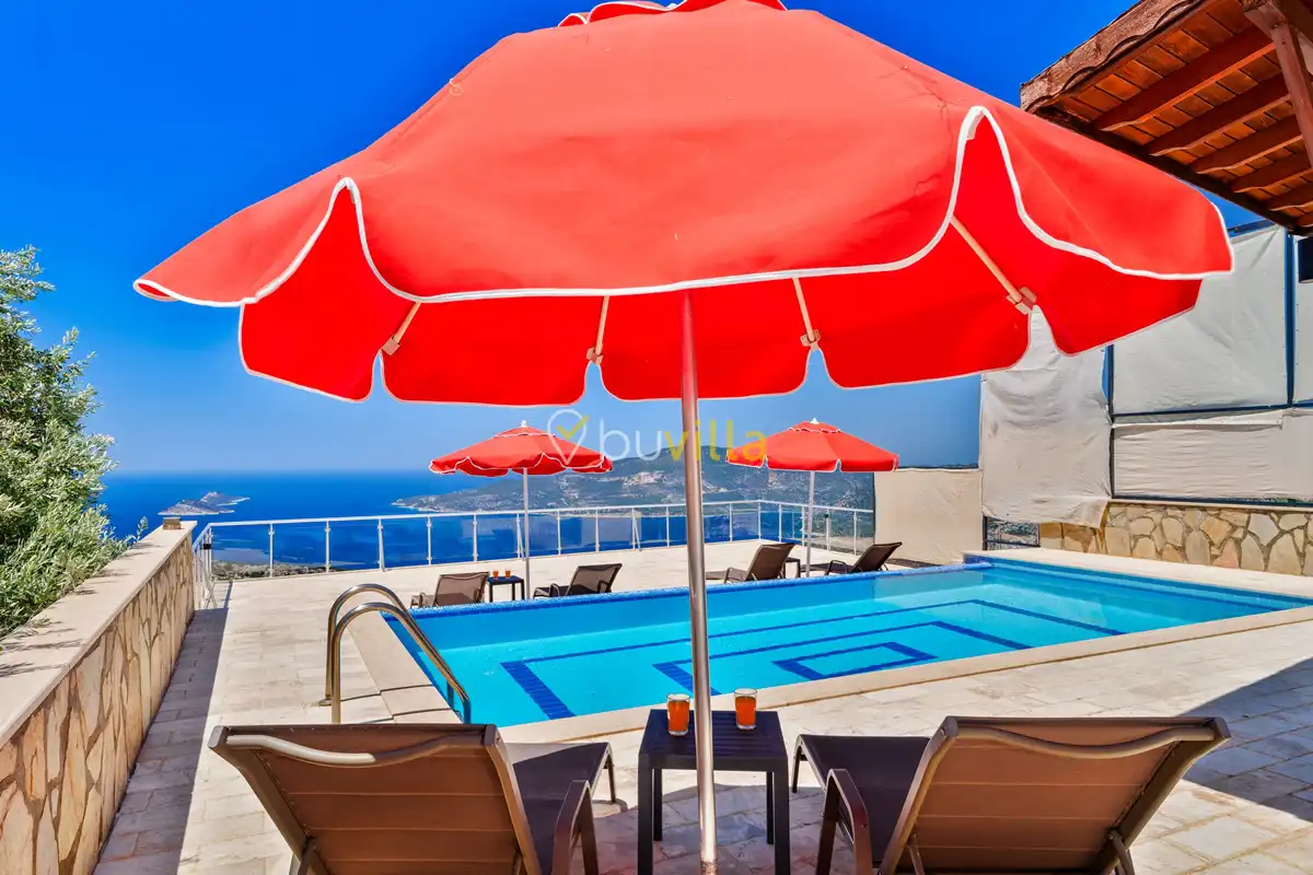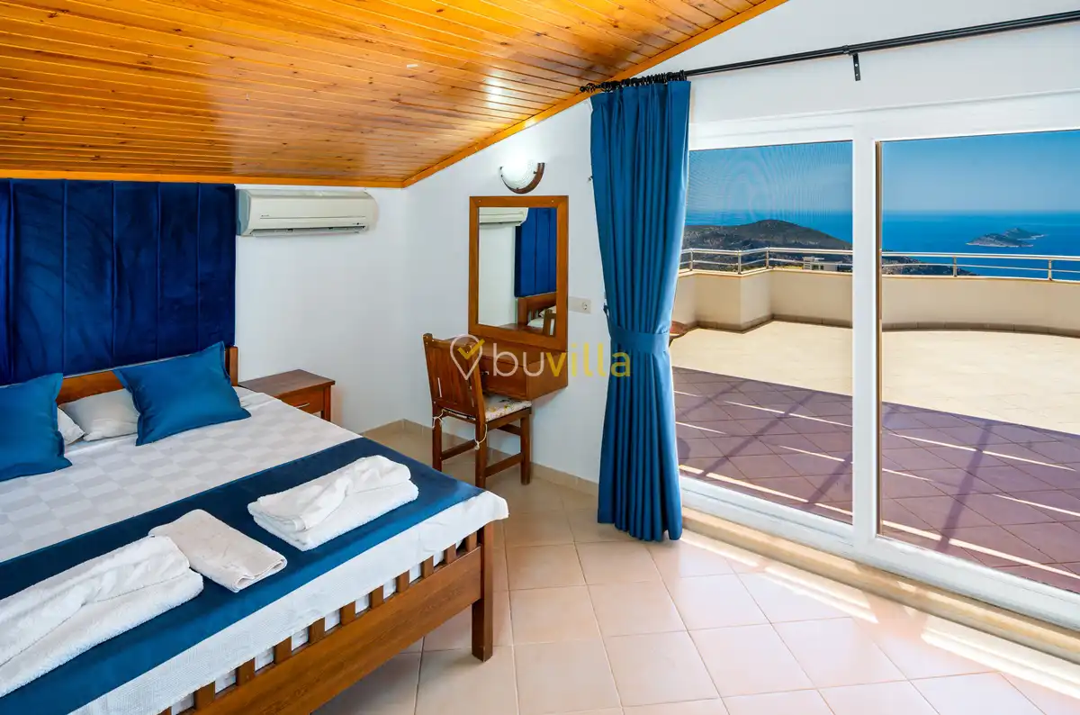 Kalkan’ın Kördere mevkiinde, Sarnıçbaşı bölgesinde yer alan bu lüks kiralık villa; panoramik deniz manzarası, yüksek konumu ve mahremiyet odaklı yapısıyla özel bir tatil deneyimi sunar. Dört yatak odasıyla sekiz kişilik konaklama kapasitesine sahip olan villa, hem muhafazakâr aileler hem de sakin ve izole bir tatil arayan misafirler için ideal bir villa kiralama alternatifidir.