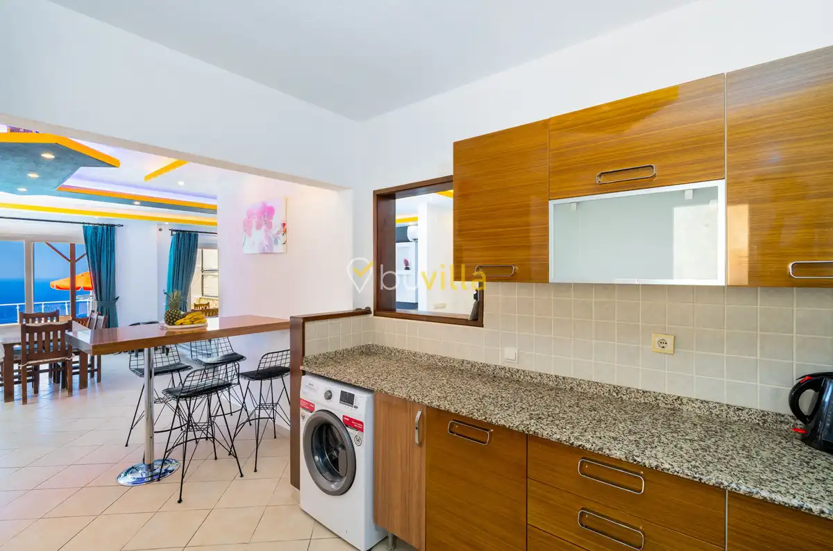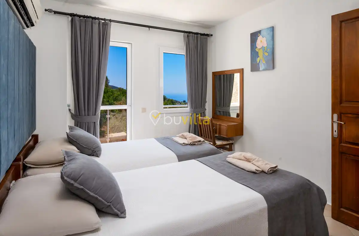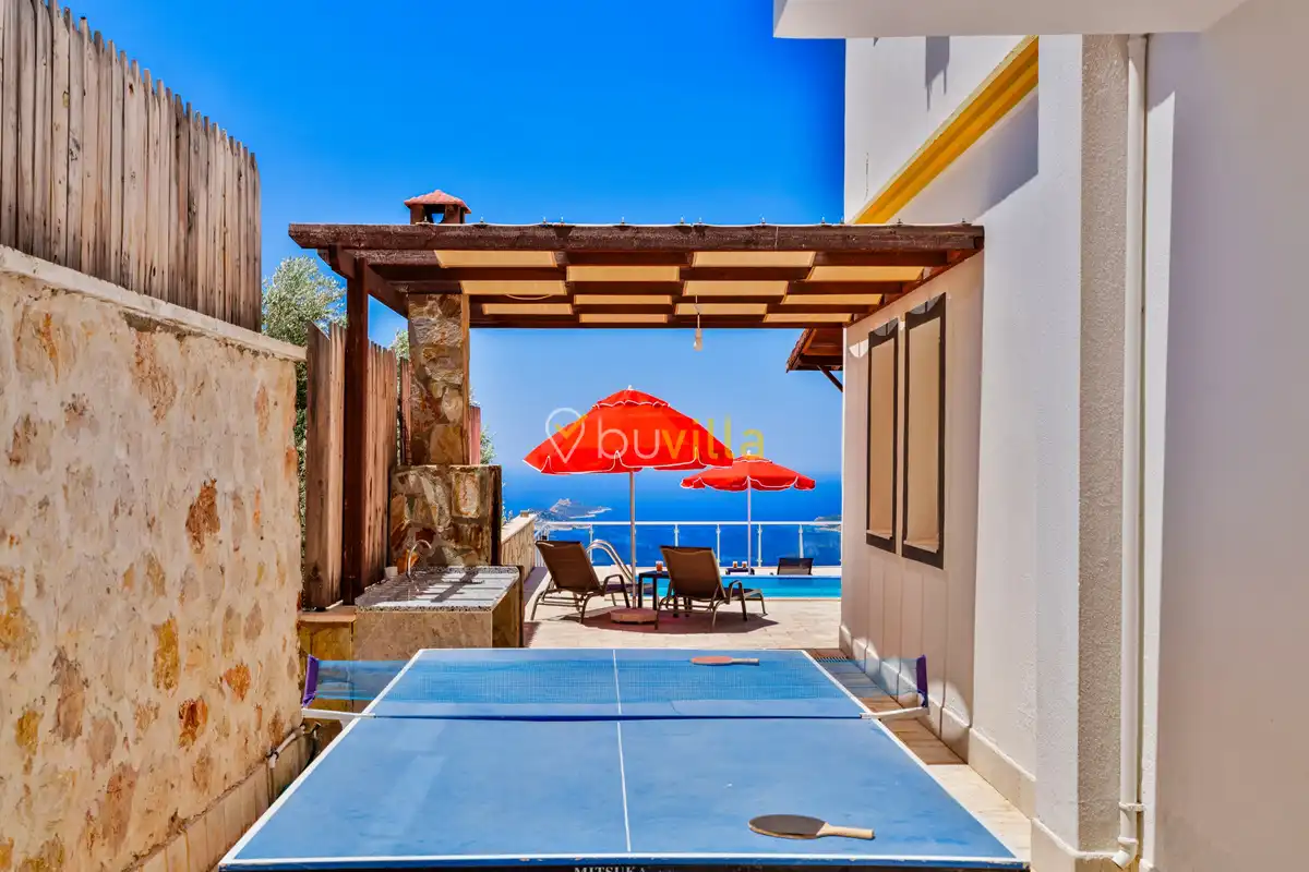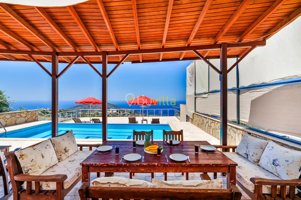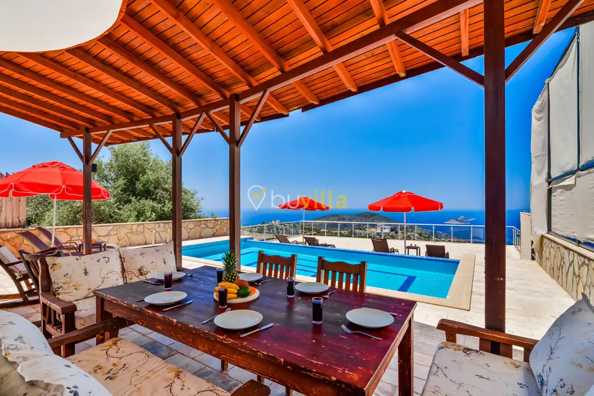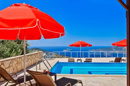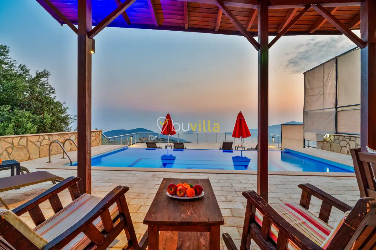 Kalkan’ın Kördere mevkiinde, Sarnıçbaşı bölgesinde yer alan bu lüks kiralık villa; panoramik deniz manzarası, yüksek konumu ve mahremiyet odaklı yapısıyla özel bir tatil deneyimi sunar. Dört yatak odasıyla sekiz kişilik konaklama kapasitesine sahip olan villa, hem muhafazakâr aileler hem de sakin ve izole bir tatil arayan misafirler için ideal bir villa kiralama alternatifidir.