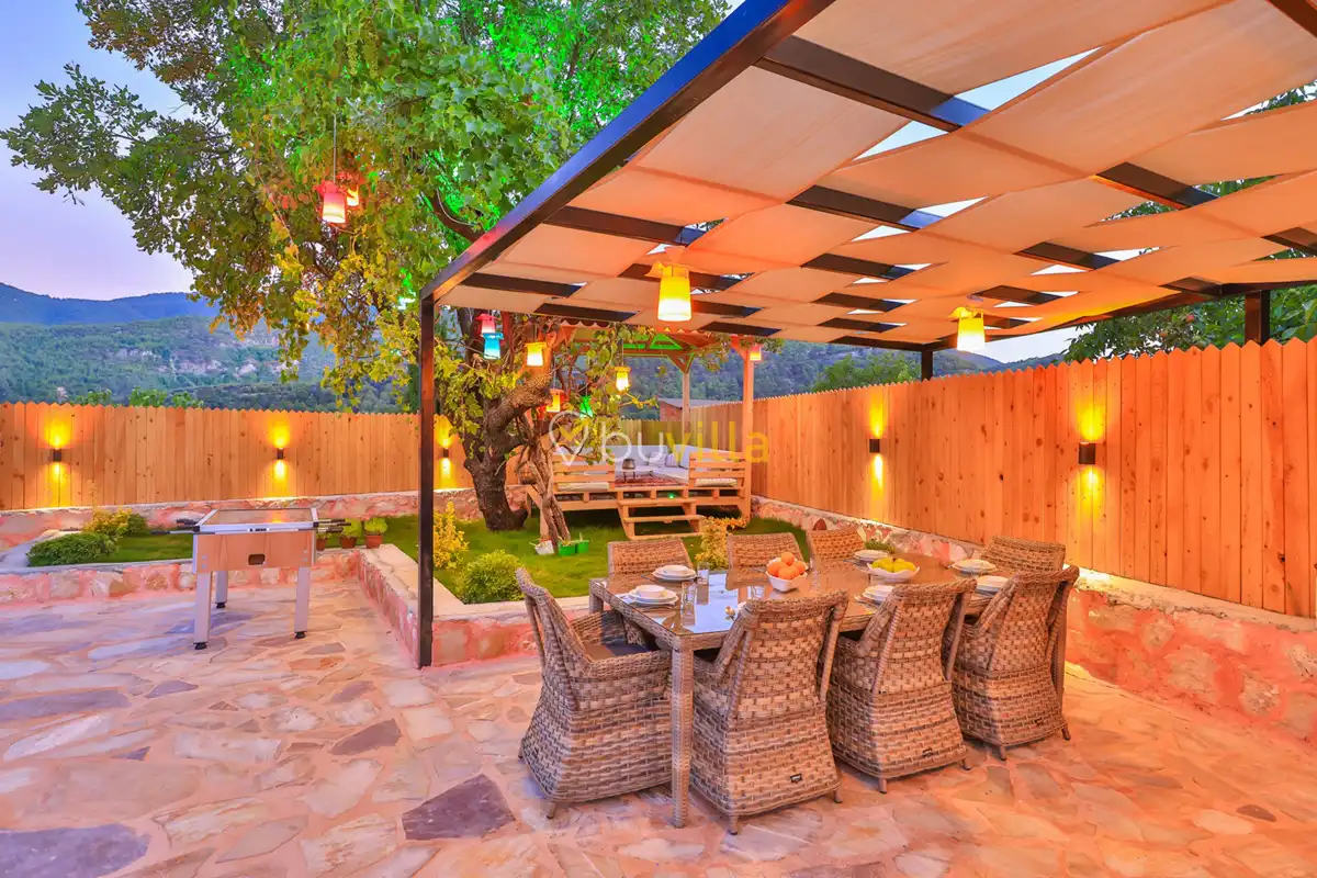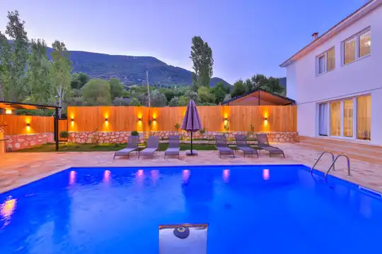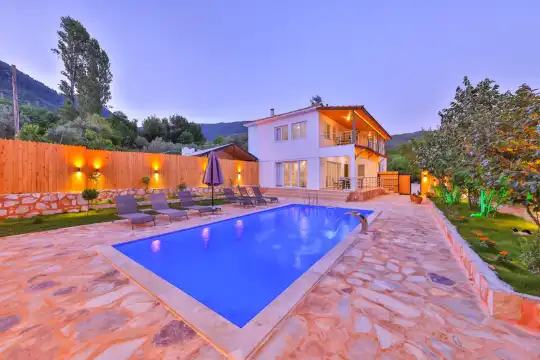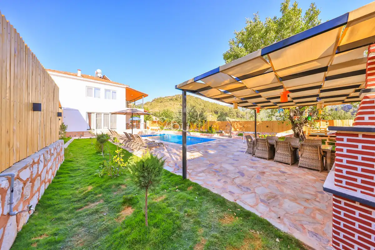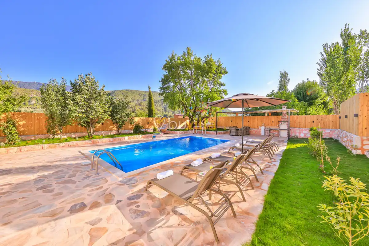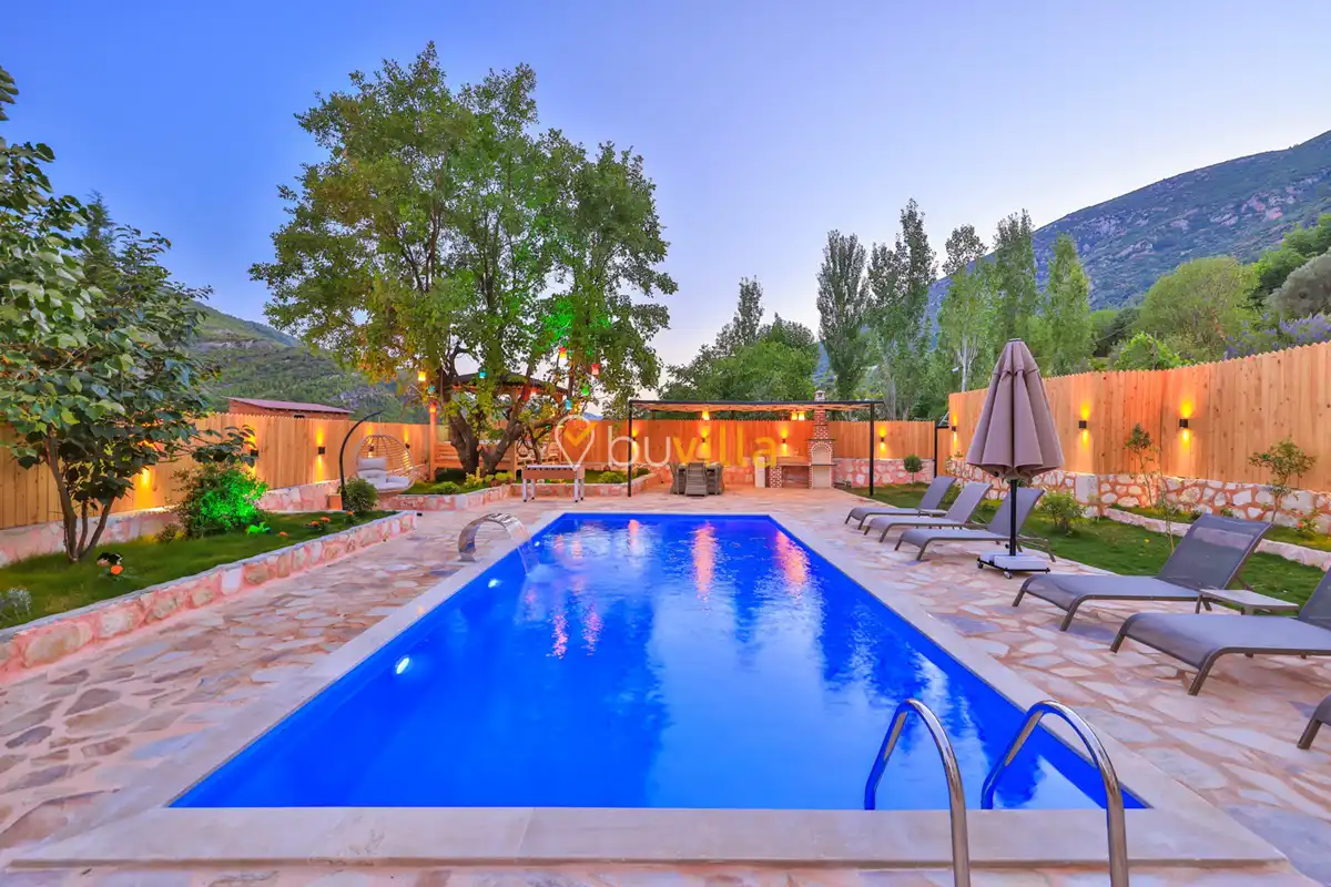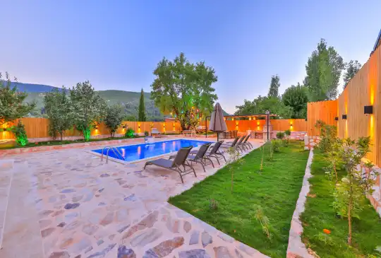 Villa DR, Kalkan Sarıbelen’in doğayla iç içe ve sakin atmosferinde konumlanan, geniş aileler ve arkadaş grupları için ideal bir tatil villasıdır. Muhafazakâr mimarisi, ferah bahçesi ve dışarıdan görünmeyen özel havuz alanı sayesinde gözlerden uzak, huzurlu bir konaklama deneyimi sunar. Şehir kalabalığından uzaklaşıp doğa içinde dinlenmek isteyen misafirler için keyifli bir kaçış noktasıdır.