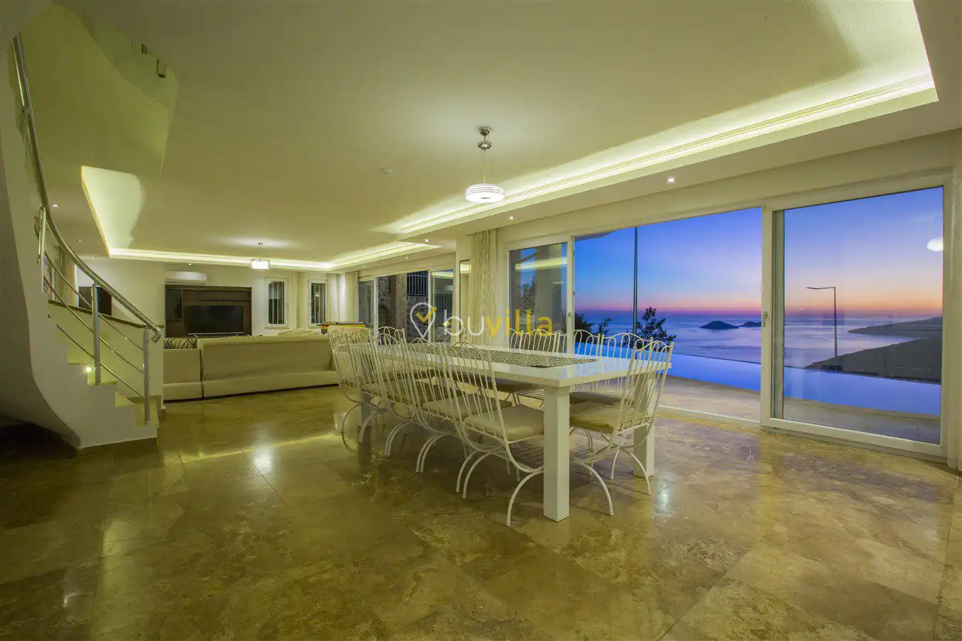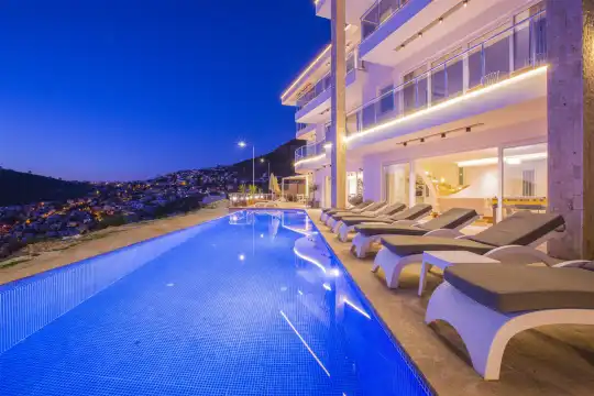 Lüksü, ferah yaşam alanlarını ve zarif mimariyi bir araya getiren Villa Eagles Lodge; geniş aileler ve kalabalık arkadaş grupları için konforlu ve keyifli bir tatil ortamı sunmaktadır. Etkileyici konumu, özenle tasarlanmış detayları ve seçkin atmosferiyle, Kalkan’da unutulmaz bir villa tatili arayan misafirler için ayrıcalıklı bir seçenek oluşturmaktadır.