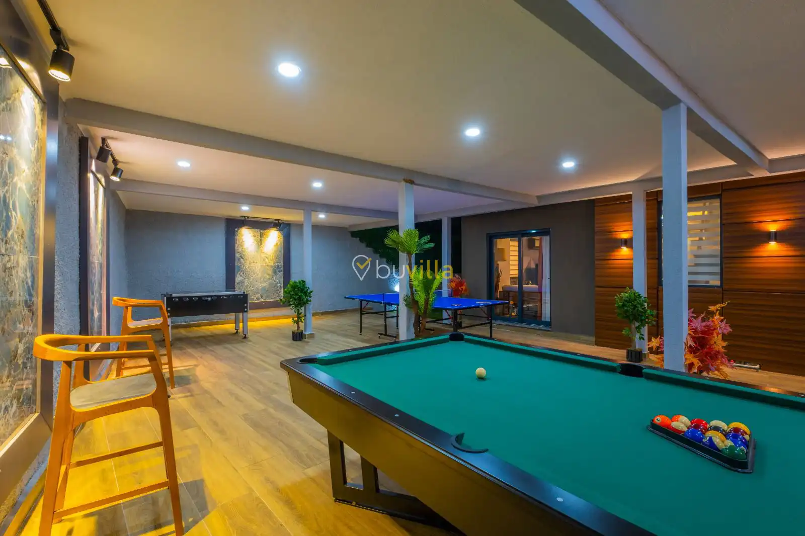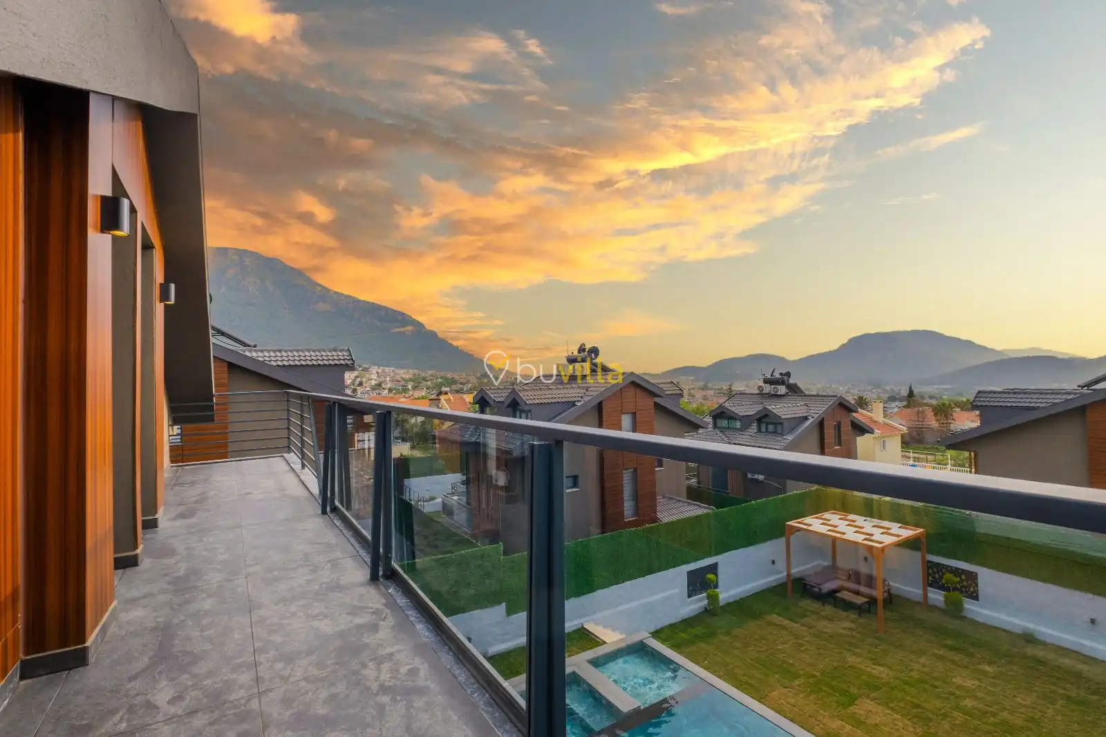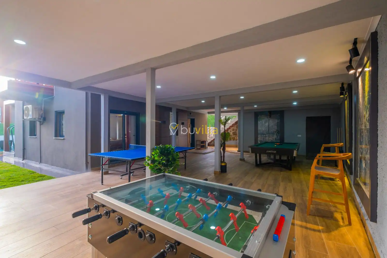 Villamızın geniş havuz terasında şezlonglar, bahçe yemek masası ve keyifli anlar yaşayabileceğiniz bir salıncak bulunmaktadır. Çocuk havuzu (2 m x 2 m) ve havuza entegre jakuzi sayesinde tatilinizi daha da keyifli hale getirebilirsiniz.