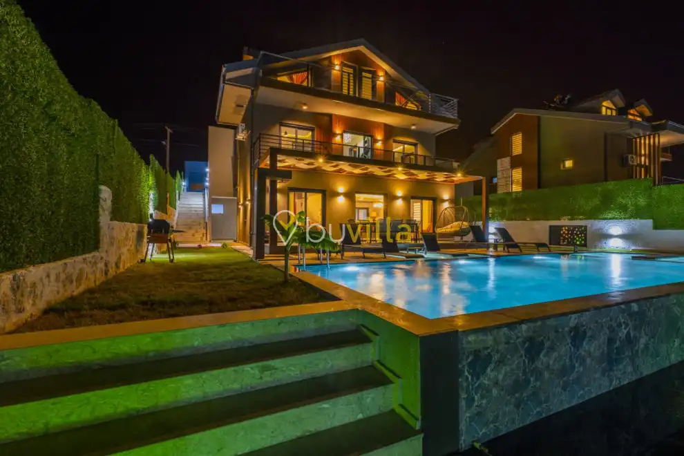 8 yatak odasına sahip olan ve 4 kişilik konaklama kapasitesi sunan villamız, geniş aileler ve kalabalık arkadaş grupları için ideal bir seçenektir. Modern ve şık tasarımıyla misafirlerine konforlu bir tatil imkânı sunan Villa Efe, doğayla iç içe huzurlu bir atmosfer sağlamaktadır.