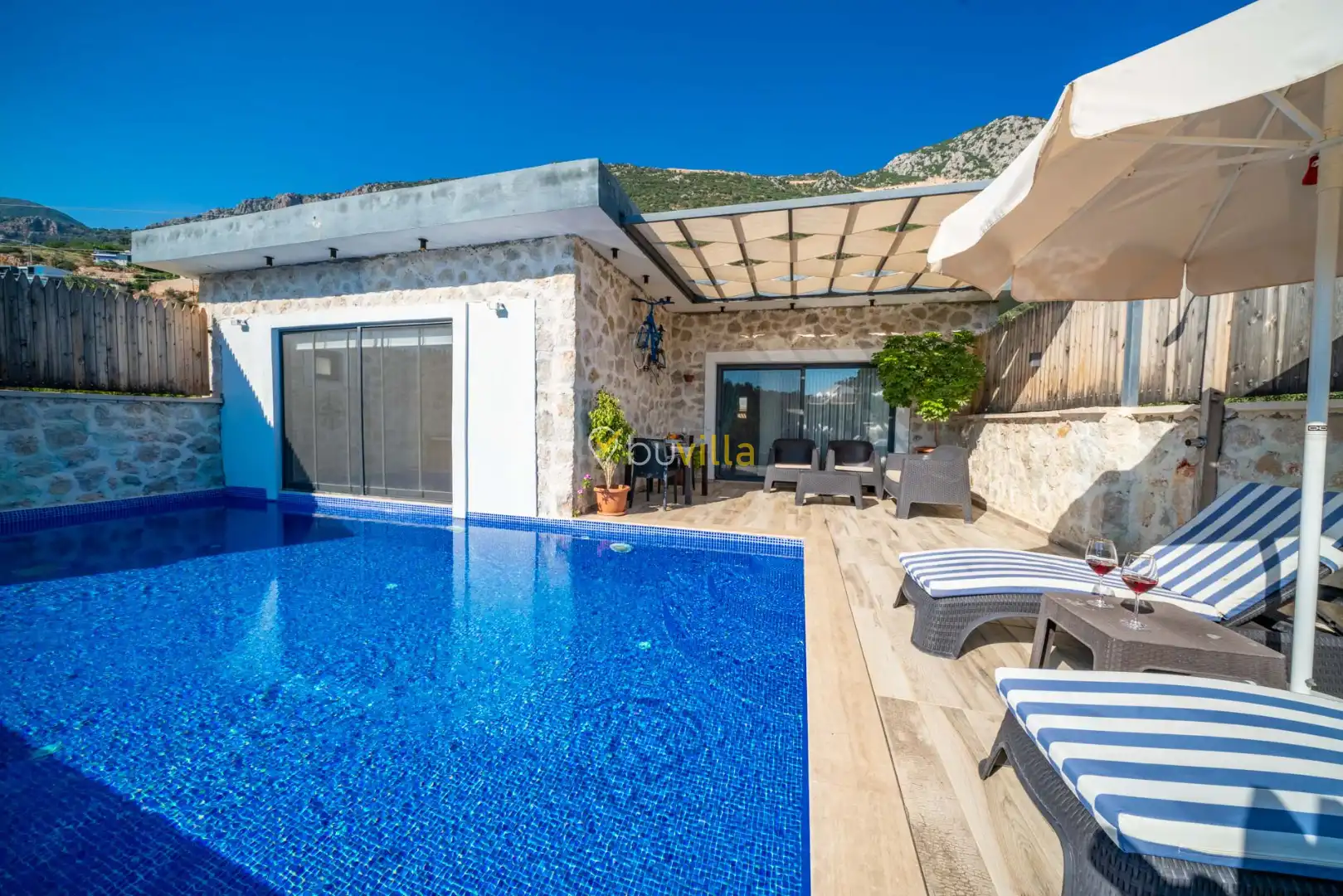 Villamızın en dikkat çeken özelliği, havuz alanının dışarıdan görünmeyecek şekilde tasarlanmış olmasıdır. Bu sayede tatiliniz boyunca kendinizi daha rahat ve özgür hissedebilir, gözlerden uzak keyifli bir villa deneyimi yaşayabilirsiniz.