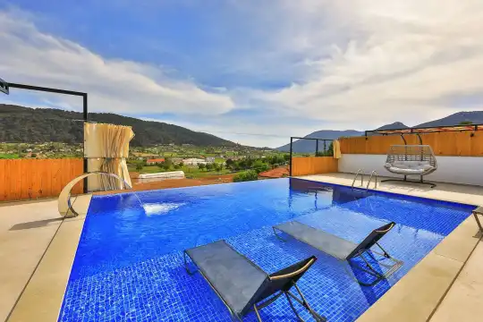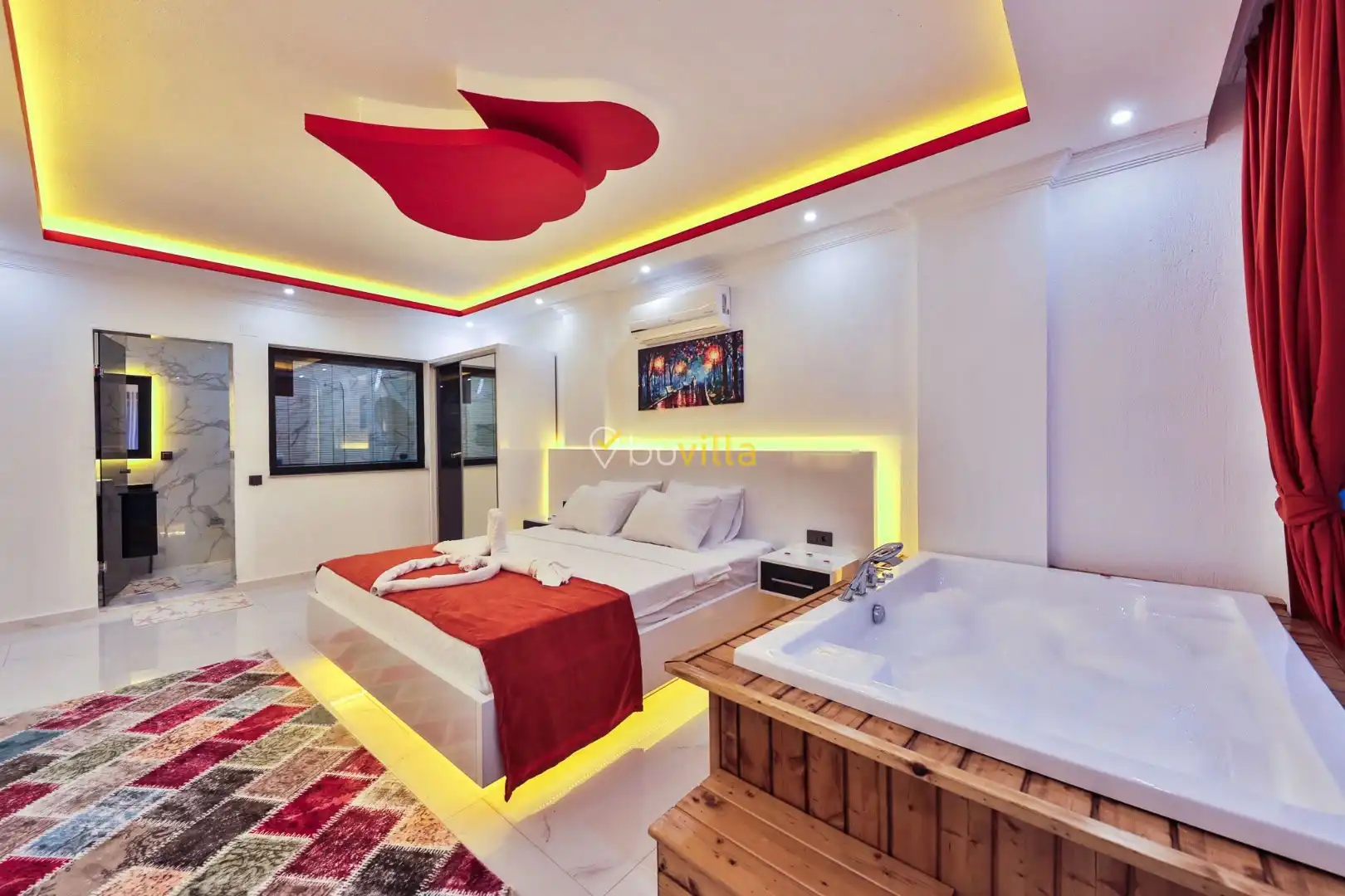 Villa Ela 1, Sarıbelen bölgesinde konumlanan, doğa ile iç içe sakin bir tatil deneyimi sunan kiralık villa seçeneklerinden biridir. 2 yatak odası ile toplam 5 kişilik konaklama kapasitesine sahip olan Villa Ela 1, özellikle çekirdek aileler için ideal bir tercih sunar. Modern ve konforlu şekilde tasarlanmış iç mekânında, ana yatak odasında yer alan jakuzi ile tatilinize ekstra rahatlık katabilirsiniz.