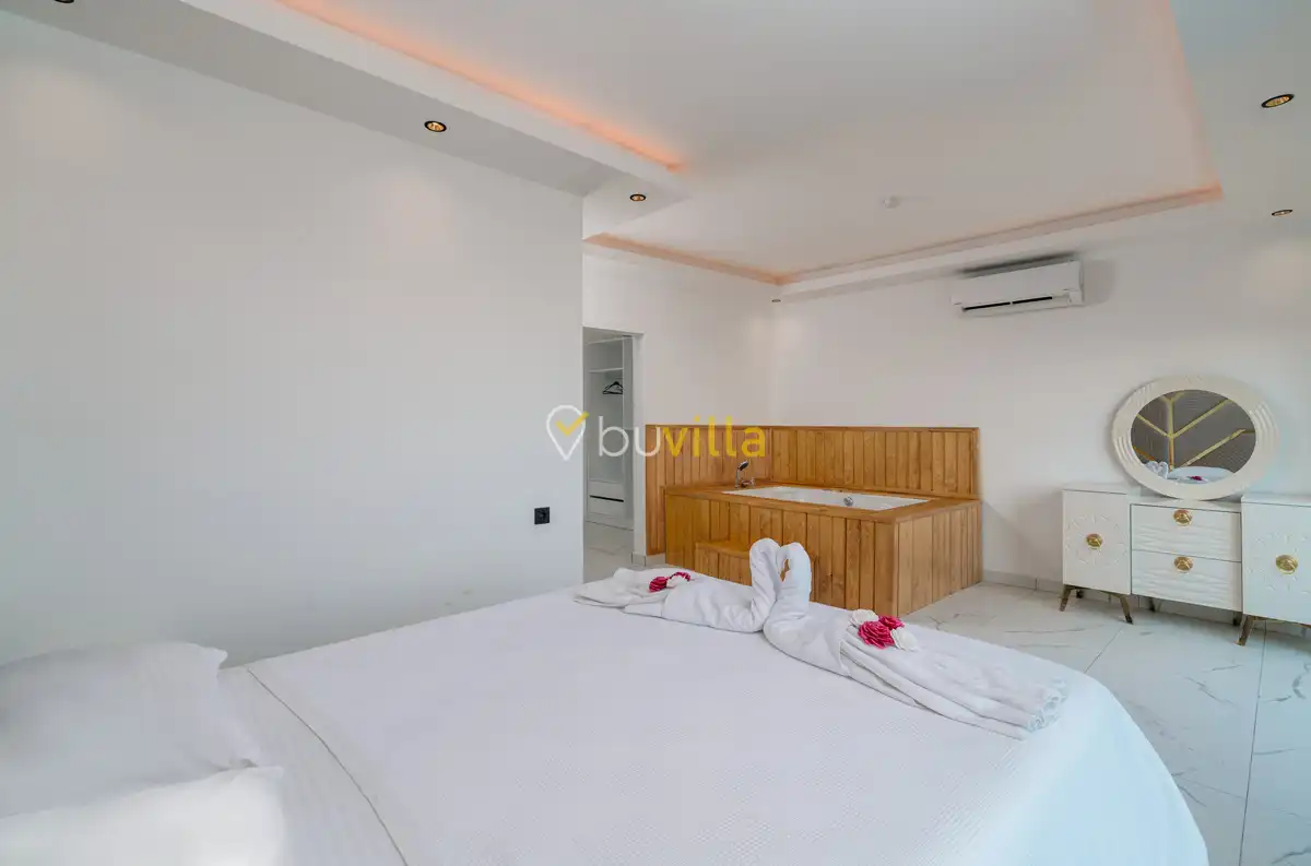 5 yatak odası ve 5 banyosu bulunan villa, 8 kişi konaklama kapasitesine sahiptir. Geniş aileler ve arkadaş grupları için ideal olan Villa Elit, konforlu ve modern tasarımıyla keyifli bir konaklama imkanı sağlar. Hem doğayla iç içe huzurlu bir atmosfer sunan hem de göz alıcı manzarasıyla dinlendirici bir tatil vadeden bu özel villa, sizleri bekliyor.