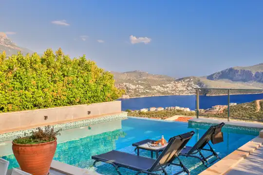 Kalkan merkezde konumlanan deniz manzarali lüks bir villadir. Villamiz 3 yatak odali olan villamizda toplamda 6 kisi konaklayabilmektedir. Kiralik yazligimizin tam donanimli Amerikan mutfaginda ihtiyaç duyabileceginiz tüm ekipmanlar mevcut olup mobilyalarla dizayn edilmis salonu hizmetinizdedir.Havuz ve bahçe terasinda eglenceli vakitler geçirebilirsiniz.