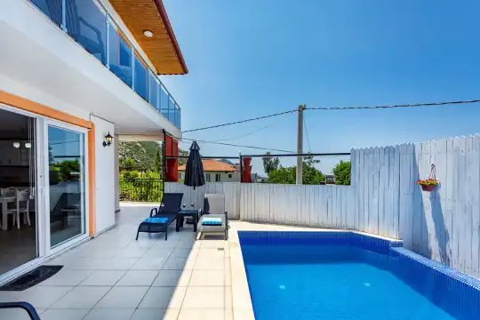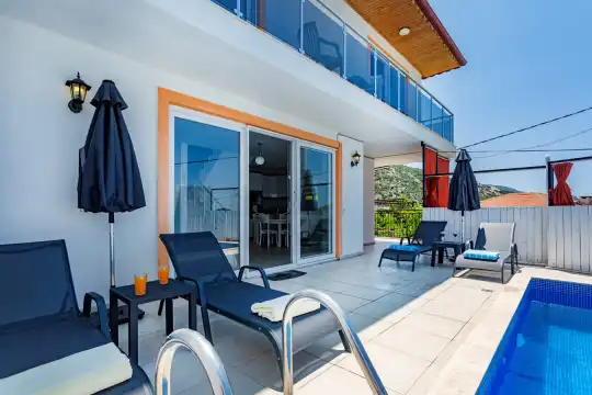 Kalkan İslamlar mevkiinde yer alan kiralık tatil villamız, doğayla iç içe, sessiz ve sakin bir konumda huzurlu bir tatil geçirmek isteyen çiftler ve aileler için ideal bir seçenektir. Muhafazakar villalar kategorisinde bulunan Villa Emin, 2 yatak odası ve 4 kişilik konaklama kapasitesi ile rahat bir konaklama imkânı sunmaktadır. Havuzu korunaklı ve bahçesi dışarıdan görünmeyen villamız, mahremiyete önem veren aileler için özel ve konforlu bir tatil deneyimi vaat etmektedir.