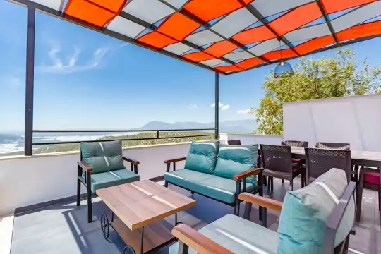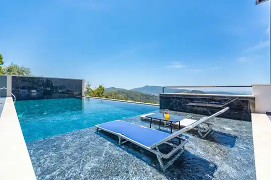 Villa Erdem, Kalkan’ın doğal güzellikleriyle ünlü Üzümlü Mahallesi’nde konumlanan, modern mimarisi ve özenle döşenmiş iç tasarımıyla dikkat çeken 2 yatak odalı, 4 kişilik konaklama kapasitesine sahip lüks bir tatil villasıdır.
