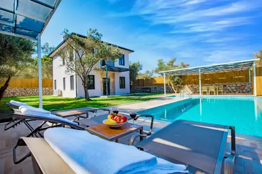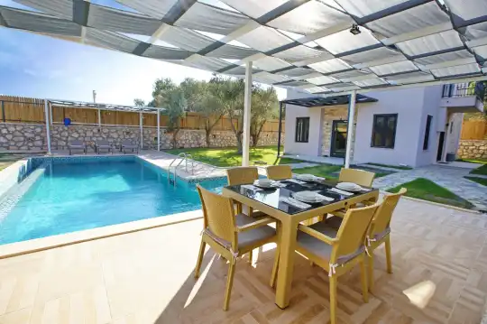 Dinlenme ve rahatlama için villamızda bir jakuzi yer almakta, korunaklı havuzu sayesinde dışarıdan görünmeden konforlu bir tatil geçirmeniz sağlanmaktadır. Yeni inşa edilmiş olan bu modern villa, eşsiz doğa manzarası eşliğinde lüks ve ayrıcalıklı bir tatil yaşamak isteyenleri beklemektedir. Villa Ersan 2, sizleri huzurlu bir tatile davet ediyor.