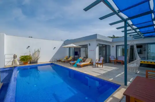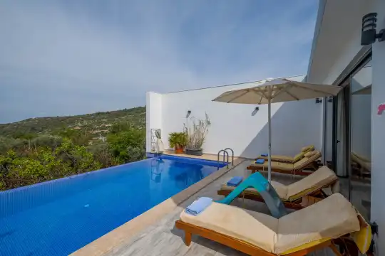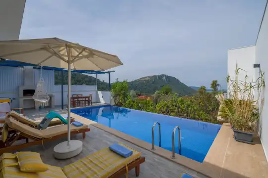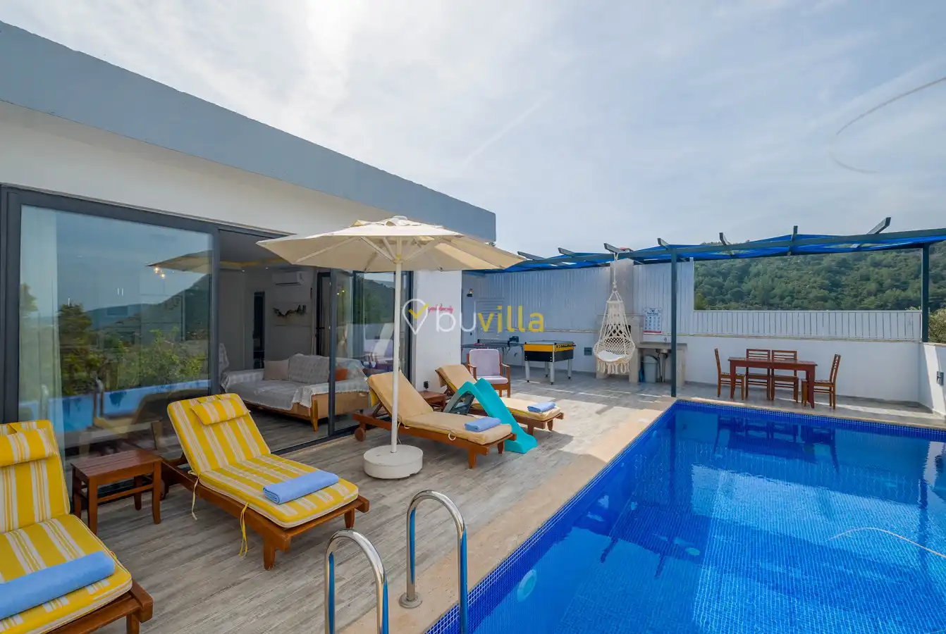 Kalkan Üzümlü bölgesinde konumlanan Villa Esin, doğa içerisinde huzurlu bir tatil arayan misafirler için tasarlanmış özel kiralık tatil villalarından biridir. 4 kişi konaklama kapasitesine sahip olan villamız, özellikle balayı çiftleri ve çekirdek aileler tarafından tercih edilmektedir.