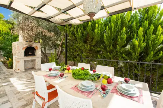 Kalkan Üzümlü mevkiinde doga içinde konumlanan bir balayi villasidir. 2 yatak odali olan villamizda toplamda 5 kisi konaklayabilmektedir. Kiralik yazligimizin tam donanimli Amerikan mutfaginda ihtiyaç duyabileceginiz tüm ekipmanlar mevcut olup konforlu mobilyalarla dizayn edilmis salonu hizmetinizdedir. Villa Eslem havuz ve bahçe kati korunakli olup muhafazakar aieler ve balayi çiftlerimiz için ideal bir seçenektir.