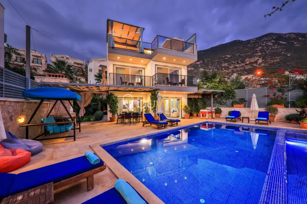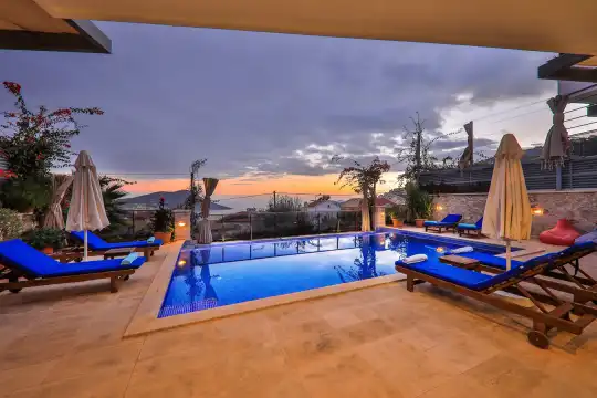 Günlük Kiralik Villa Kiralik Villa Esma Kalkan Kızıltaş mevkiinde 3 yatak odali 6 kisiliktir. Kiralik villa perdeleme sistemi ile korunakli hale getirilip muhafazakâr aile ve arkadas gruplari için harika bir tercihtir. Muhtesem deniz manzarasina sahip olan kiralik villamizin çocuk havuzu mevcuttur. Kendisine ait otoparki olan kiralik villa misafirlerini agirlamayi beklemektedir.