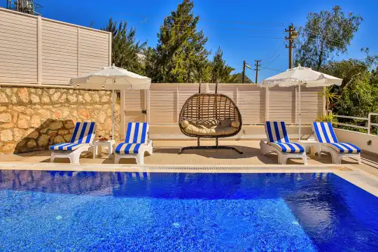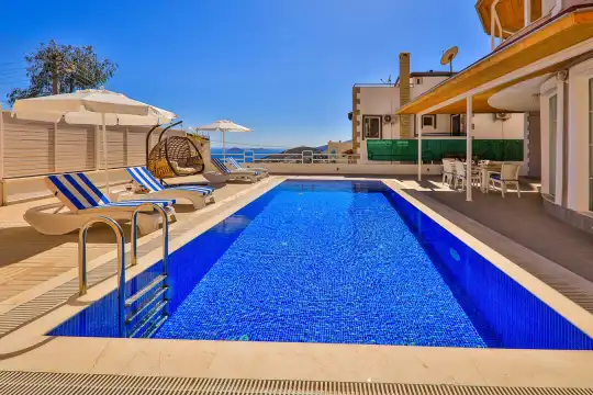 Deniz Manzarali Villa Kiralik Villa Ethereum , Kalkan Kiziltas mevkiinde yer almakta olup 5 yatak odali 10 kisiye kadar konaklama imkani saglamaktadir. Merkeze oldukça yakin konumda olan Villa Ethereum, kalabalik aile ve arkadas gruplari için ideal bir seçenektir. Amerikan mutfaginda ihtiyaç duyabileceginiz ekipmanlar yer almakta olup konforlu mobilyalarla dizayn edilmis salonu hizmetinizdedir.