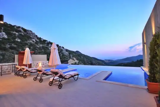 Doga Manzarali Villa Kiralik Villa Falez Kalkan Islamlar mevkiinde 2 yatak odali 4 kisi kapasitesine sahiptir. Kiralik villamizin muhtesem doga ve uzaktan deniz manzarasina hakimdir. Ihtiyaç duyabileceginiz tüm ekipmanlar bulunan kiralik villamiz lüks dizayni ile göz doldurmaktadir. Disaridan havuzu ve bahçe terasi görünmeyecek sekilde tasarlanmis olan kiralik villayi muhafazakâr aile ve balayi çiftleri de tercih edebilirler. Keyifli tatil firsati sunan kiralik villamiz misafirlerini agirlamayi beklemektedir.