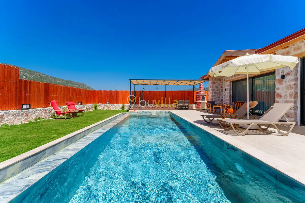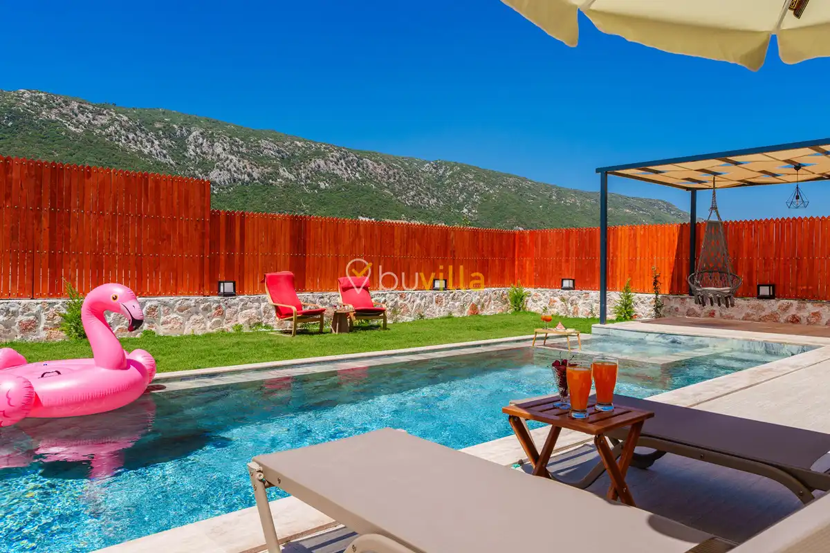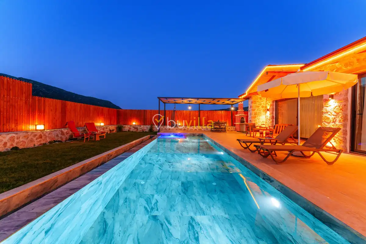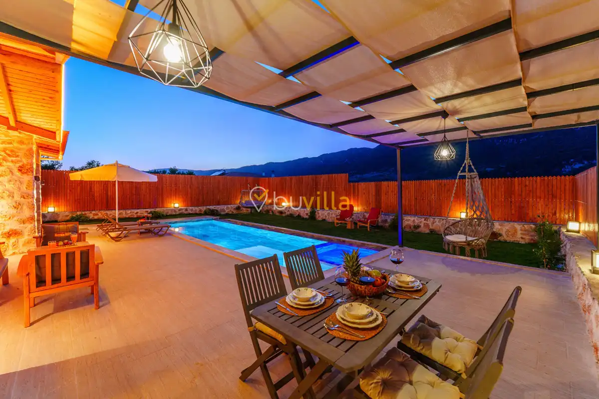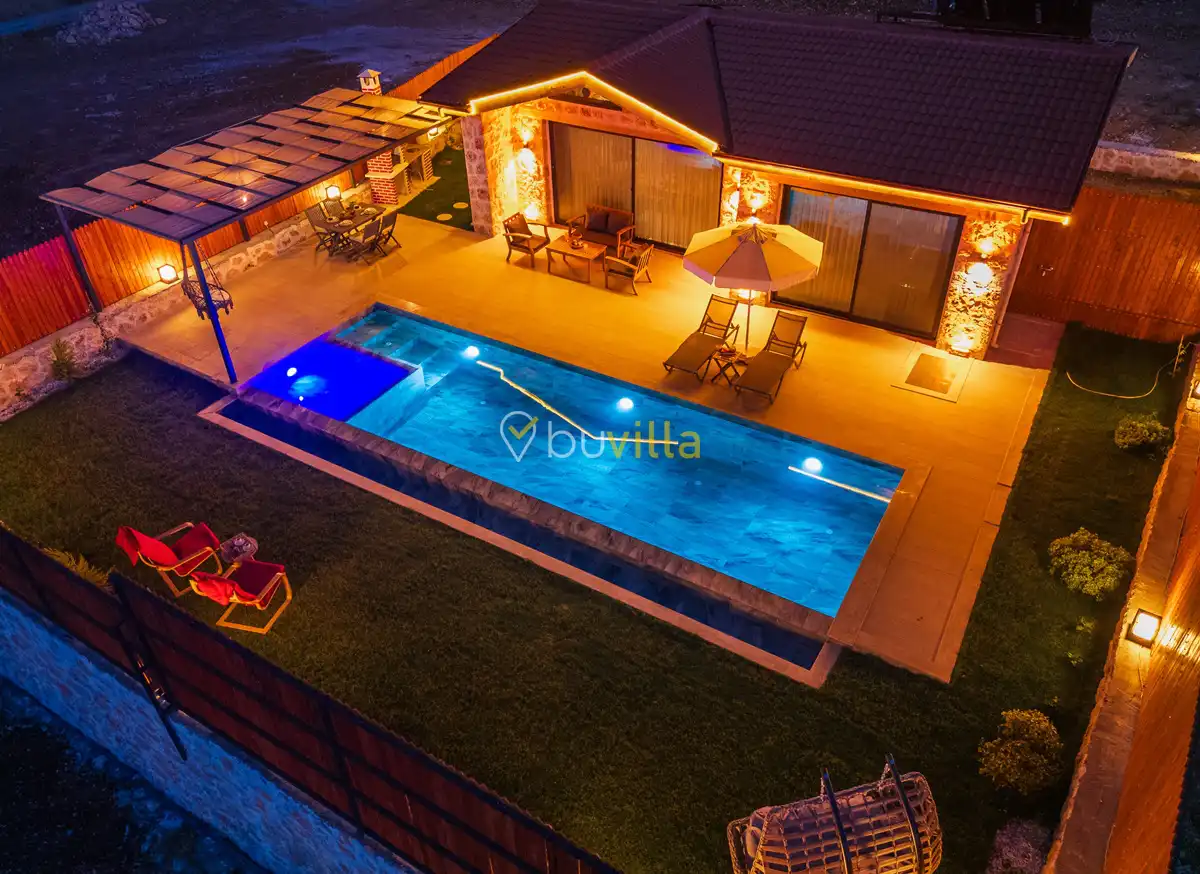 Villa Fidelya, Kalkan’ın doğayla iç içe bölgelerinden Sarıbelen mevkisinde konumlanan, geniş bahçesi ve şık mimarisiyle öne çıkan özel bir kiralık villadır. Doğa içerisinde yer alan villamız, sakin ve huzurlu bir tatil arayan misafirler için ideal bir konaklama sunar.