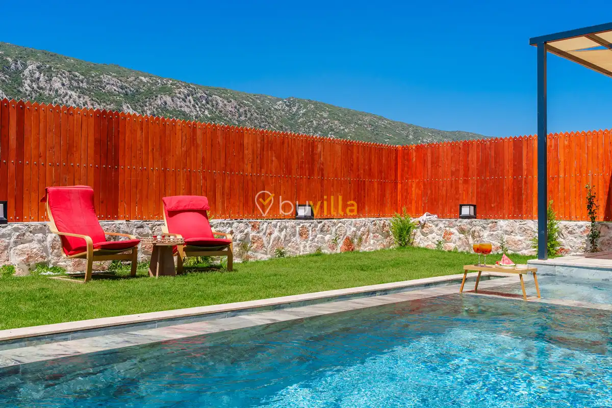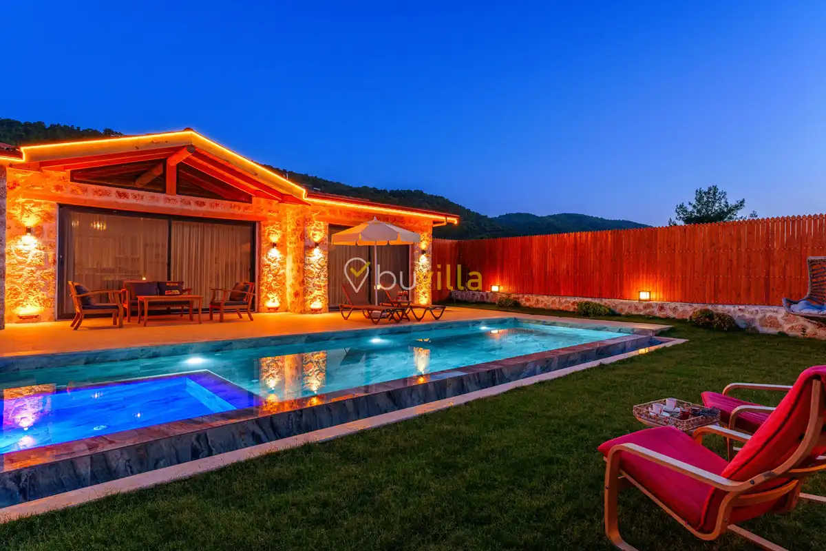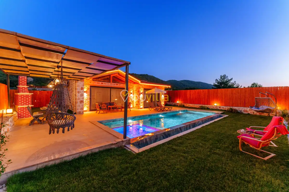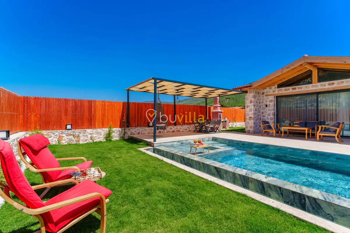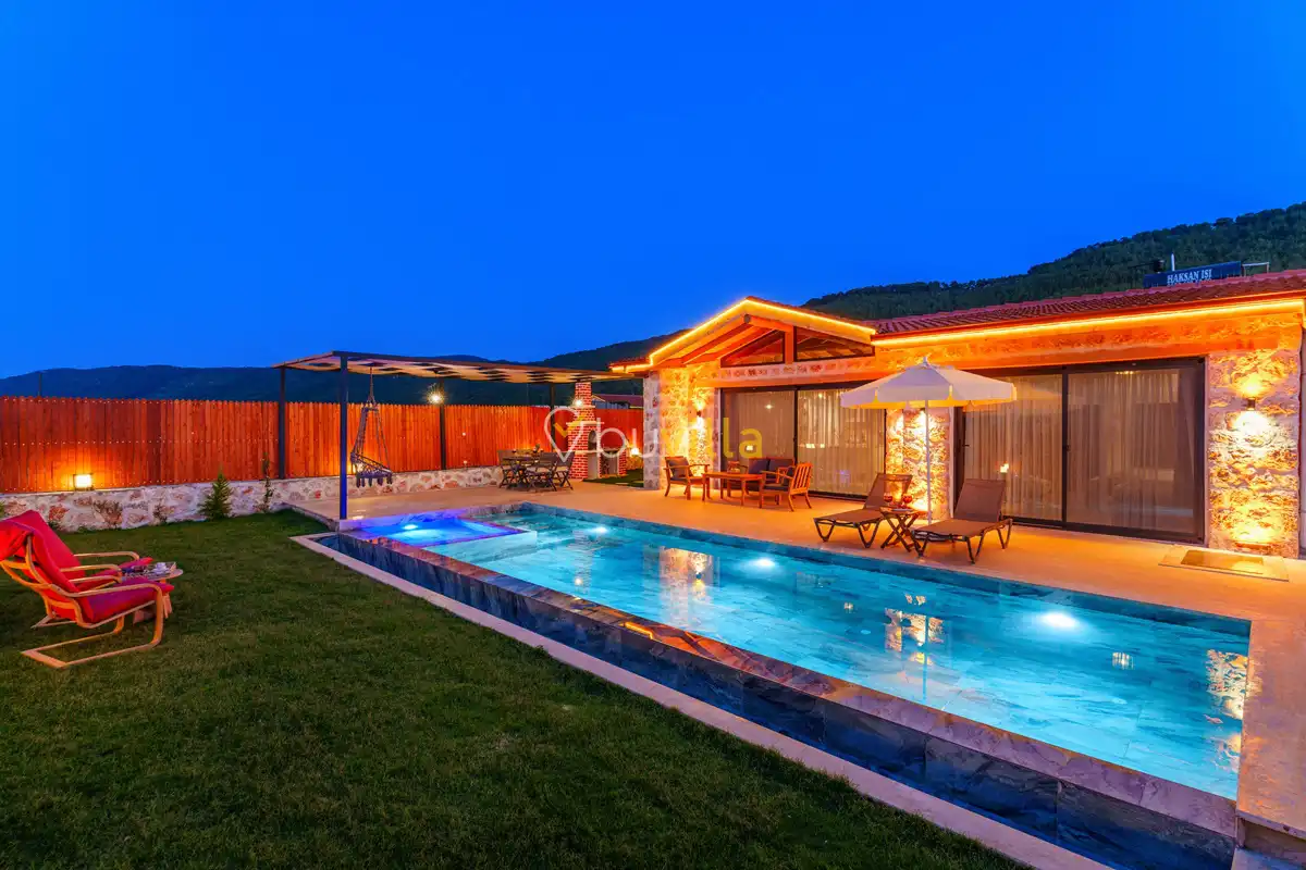 Villa Fidelya, Kalkan’ın doğayla iç içe bölgelerinden Sarıbelen mevkisinde konumlanan, geniş bahçesi ve şık mimarisiyle öne çıkan özel bir kiralık villadır. Doğa içerisinde yer alan villamız, sakin ve huzurlu bir tatil arayan misafirler için ideal bir konaklama sunar.