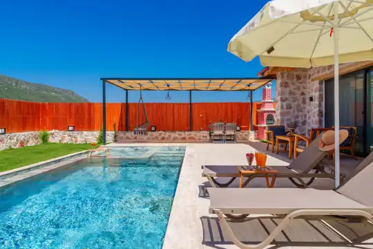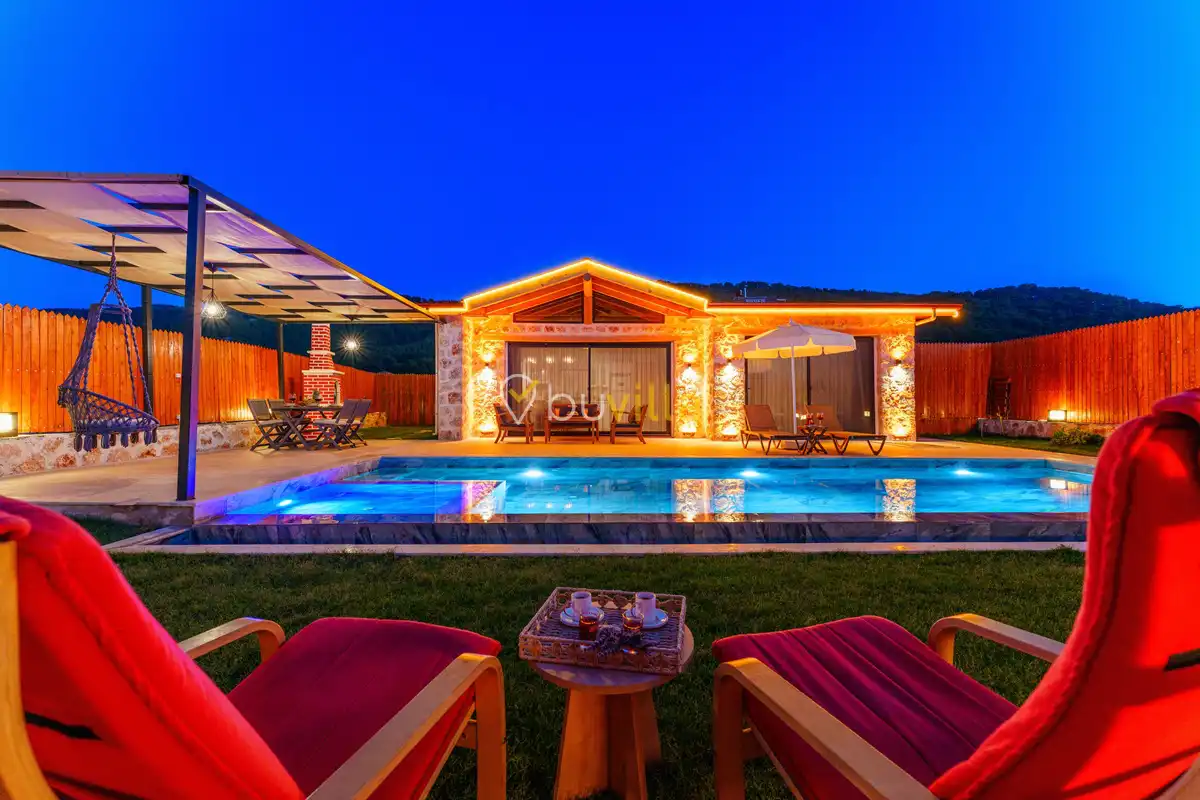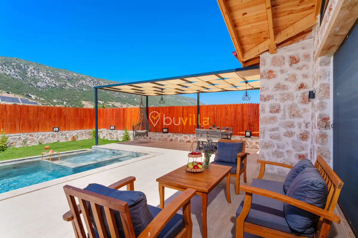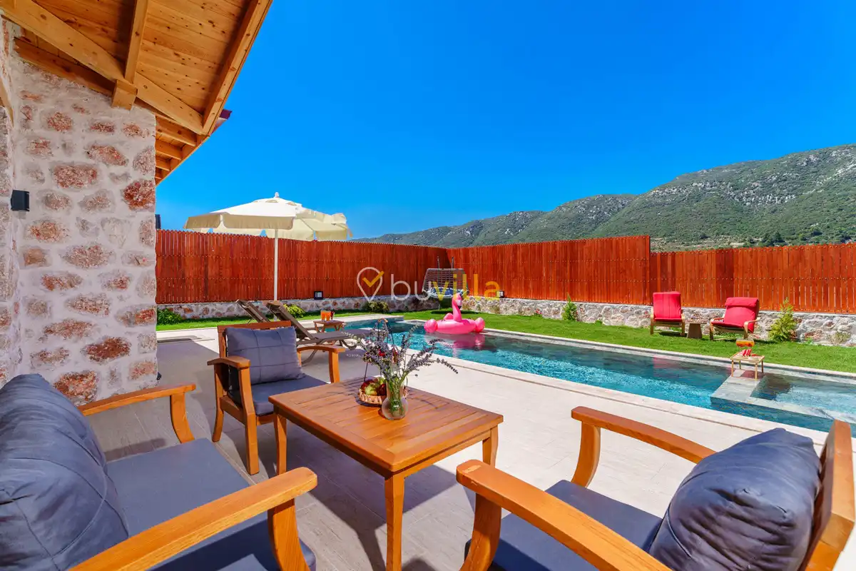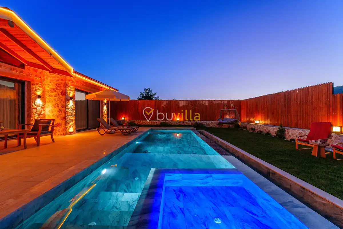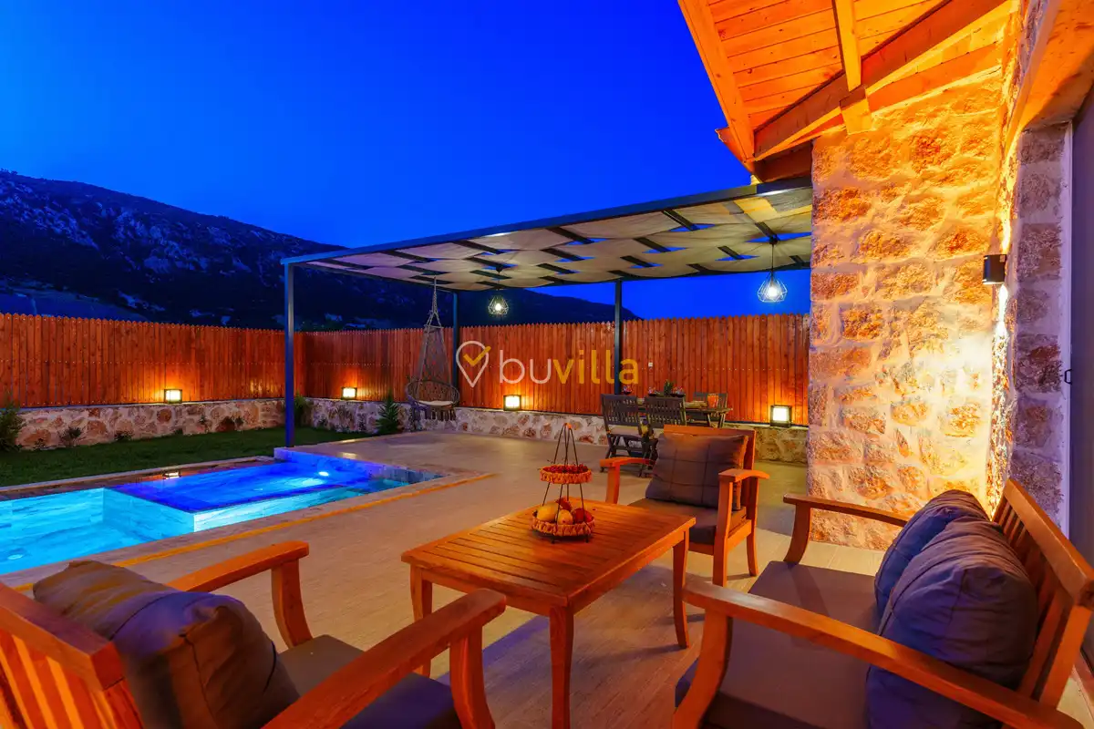 Villa Fidelya, Kalkan’ın doğayla iç içe bölgelerinden Sarıbelen mevkisinde konumlanan, geniş bahçesi ve şık mimarisiyle öne çıkan özel bir kiralık villadır. Doğa içerisinde yer alan villamız, sakin ve huzurlu bir tatil arayan misafirler için ideal bir konaklama sunar.