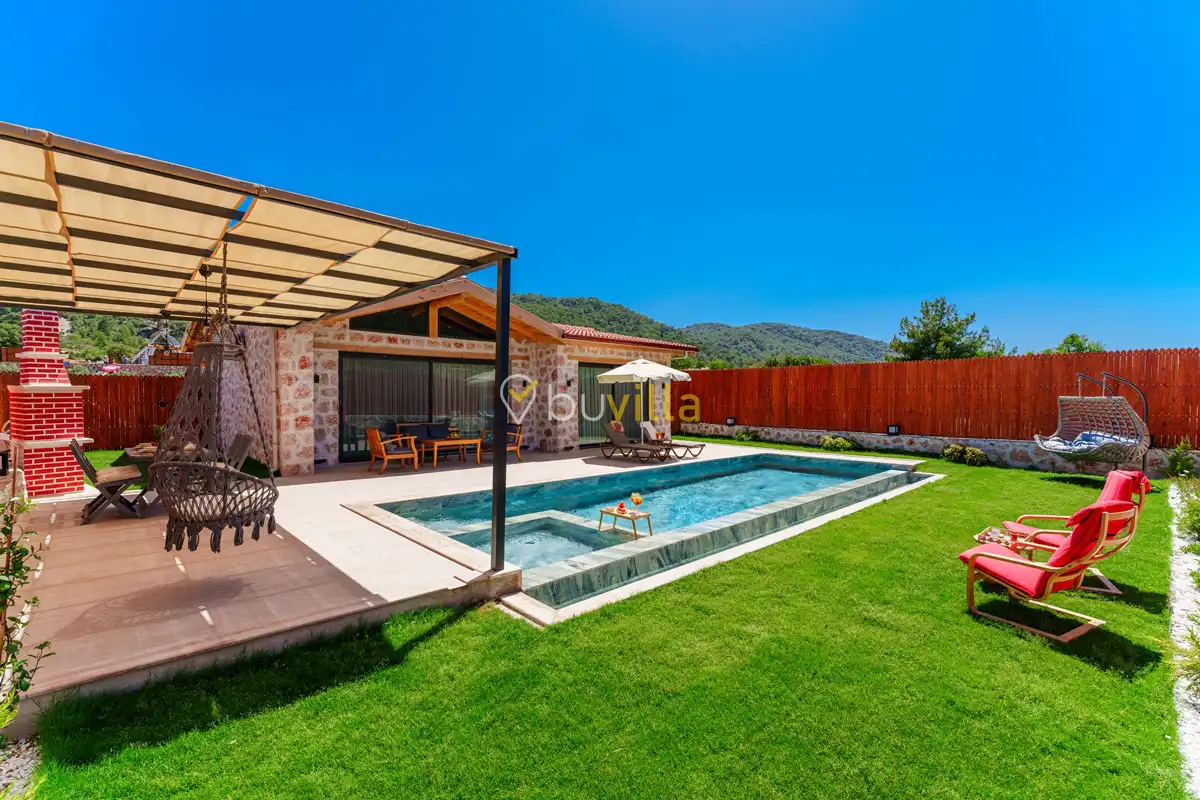 Modern ve gösterişli tasarımıyla dikkat çeken Villa Fidelya, zevkli detaylarla dekore edilmiş olup konforlu bir tatil için ihtiyaç duyabileceğiniz tüm donanımlara sahiptir. Villada bulunan jakuzi, özellikle balayı çiftleri için romantik ve keyifli bir tatil atmosferi oluşturur.