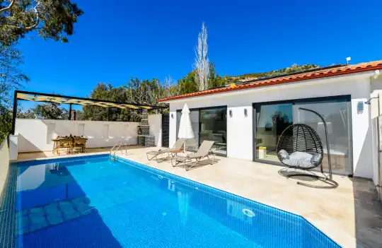 Balayi Villasi Kiralik Villa Gala 2 Kalkan Islamlar mevkiinde konumlanan 2 kisi kapasiteli havuzu korunakli bir balayi villasidir. Tam donanimli Amerikan mutfagi ve konforlu salonu hizmetinizdedir. Havuz bahçe kati korunakli olan villamiz muhafazakar çiftler için iadeal bir seçenektir.